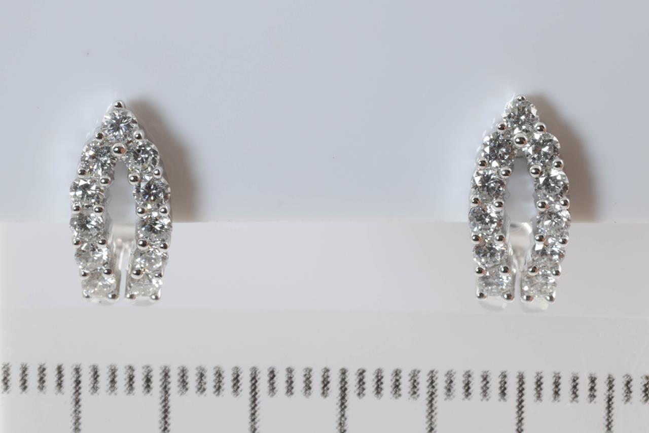 Diamond dress earrings with 22 round Diamonds totalling 0.66cts (Estimated grading: G SI). 18ct white gold. Weight: 3.4g (Pre-owned)