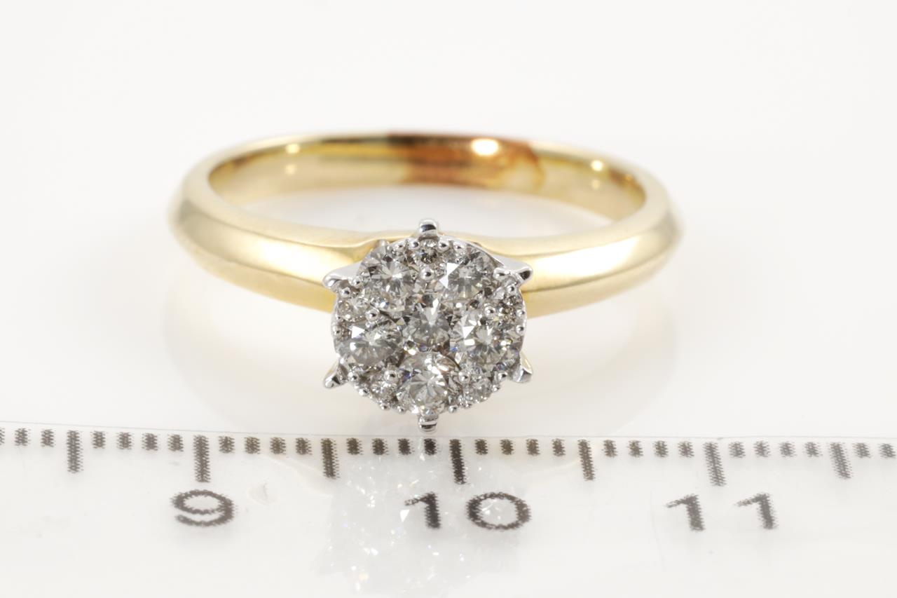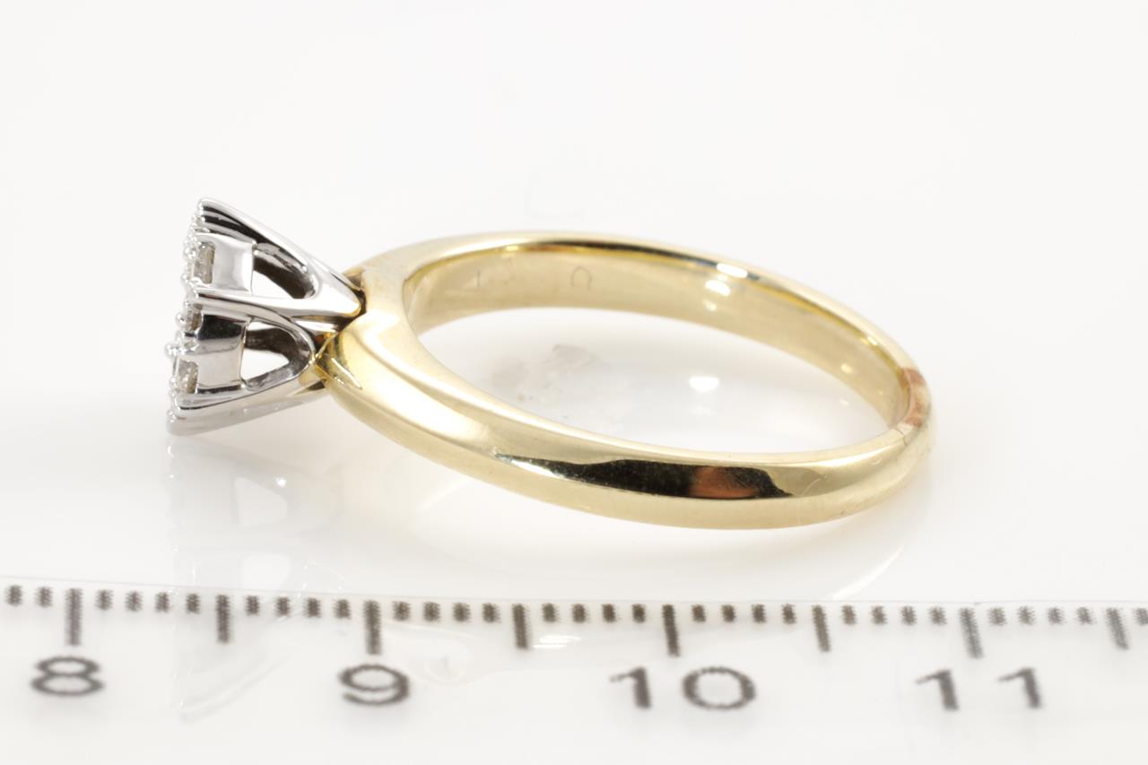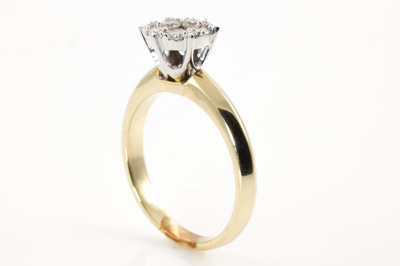 Diamond dress ring with round Diamonds totalling 0.35cts (Estimated grading: H-I SI). 9ct yellow & white gold. Ring size N1/2. Weight: 4g (Pre-owned)