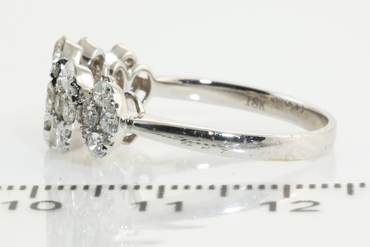 Diamond dress ring with round Diamonds totalling approximately 1.30cts (Estimated grading: G SI). 18ct white gold. Ring size: Q. Weight: 3.8g (Pre-owned)