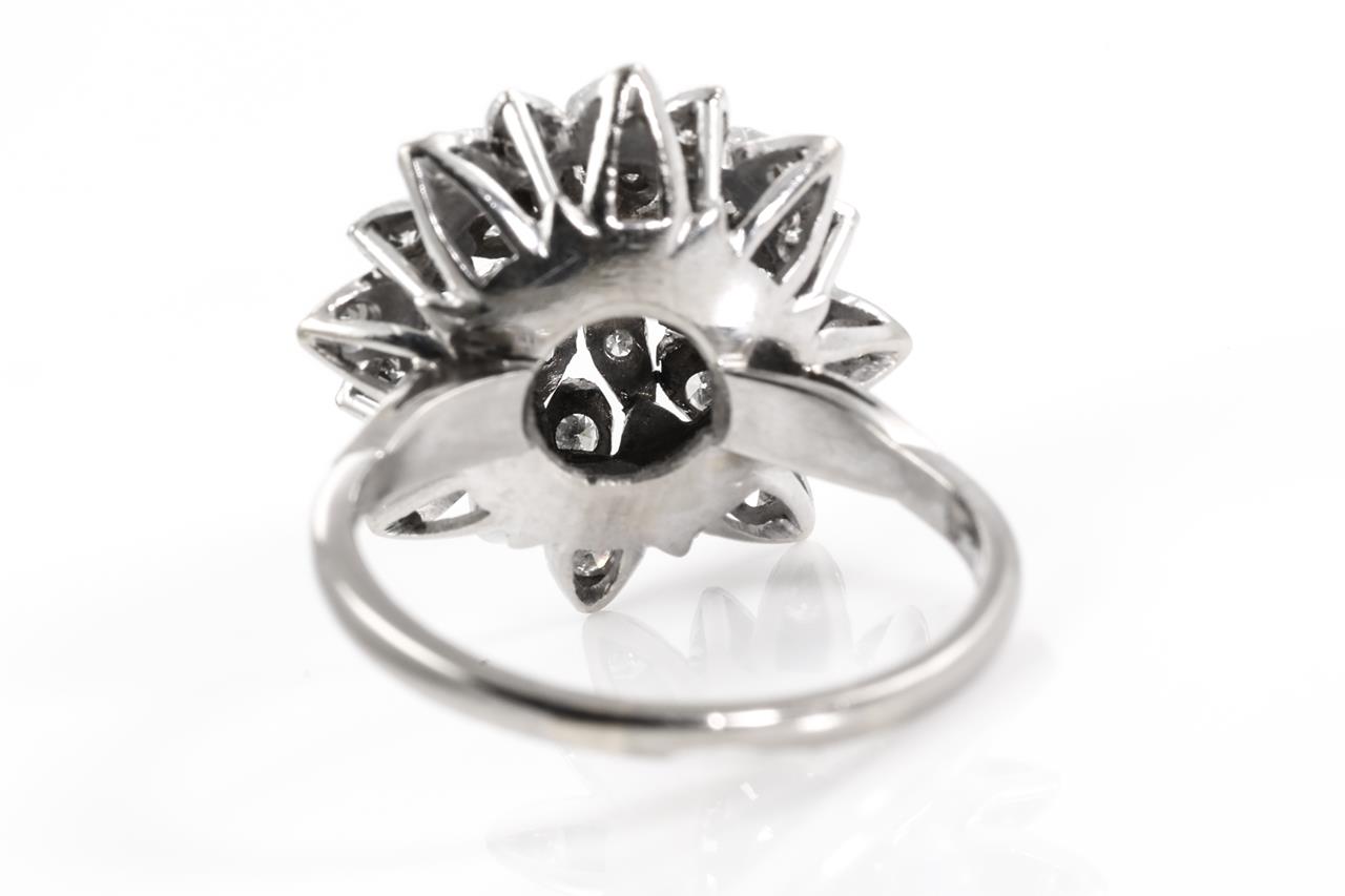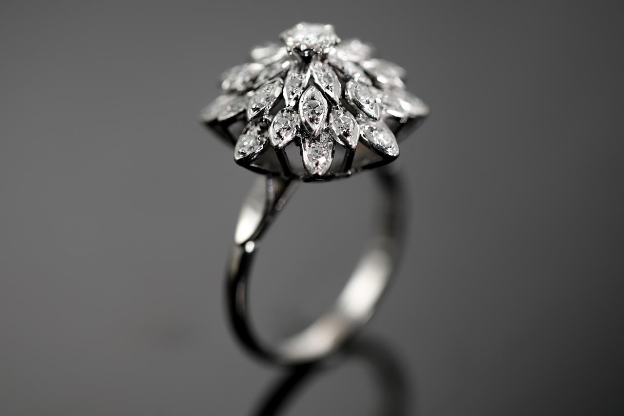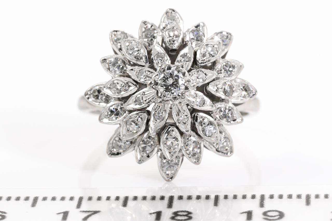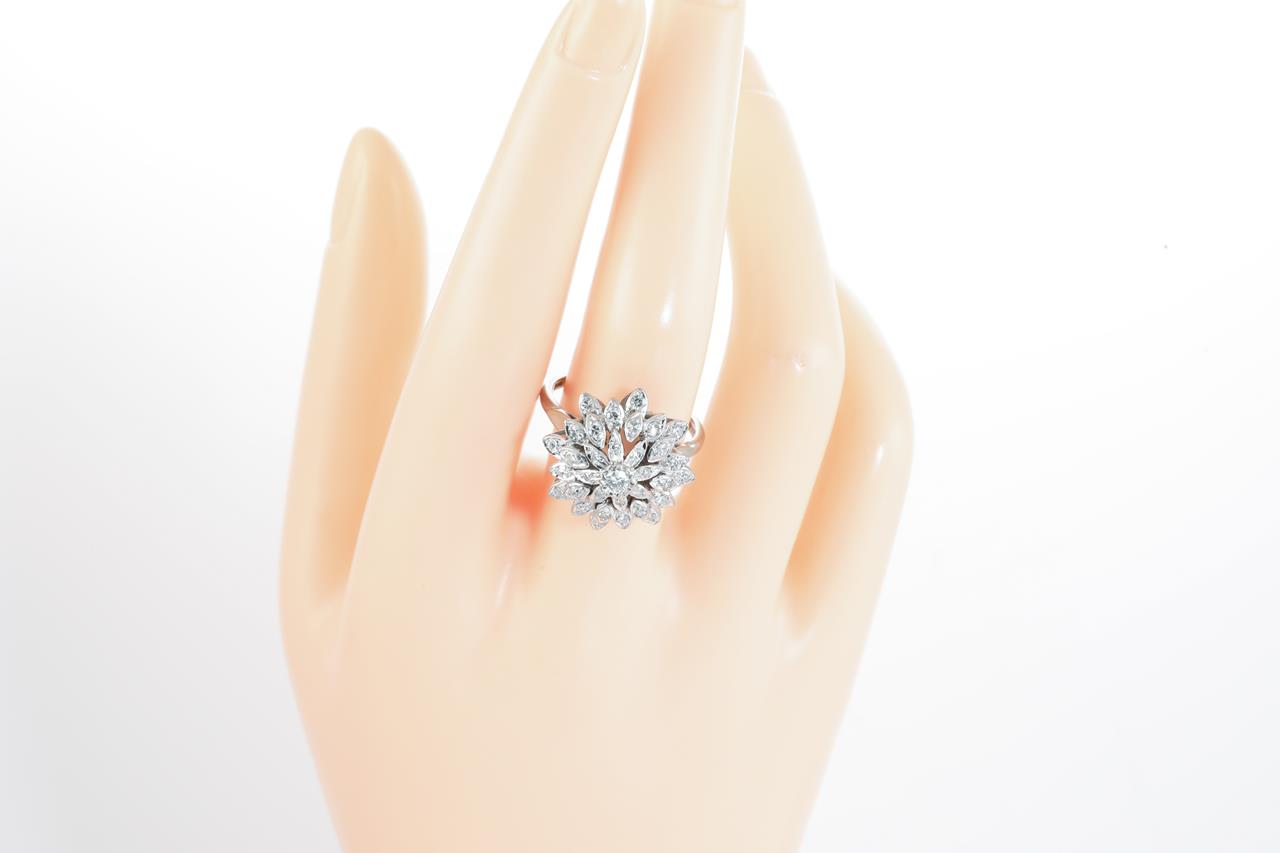 Diamond dress ring with 33 round Diamonds totalling approximately 0.70cts (estimated grading: H SI). 18ct white gold, platinum. Ring size Q1/2. Weight 6.59g. (Pre-owned)