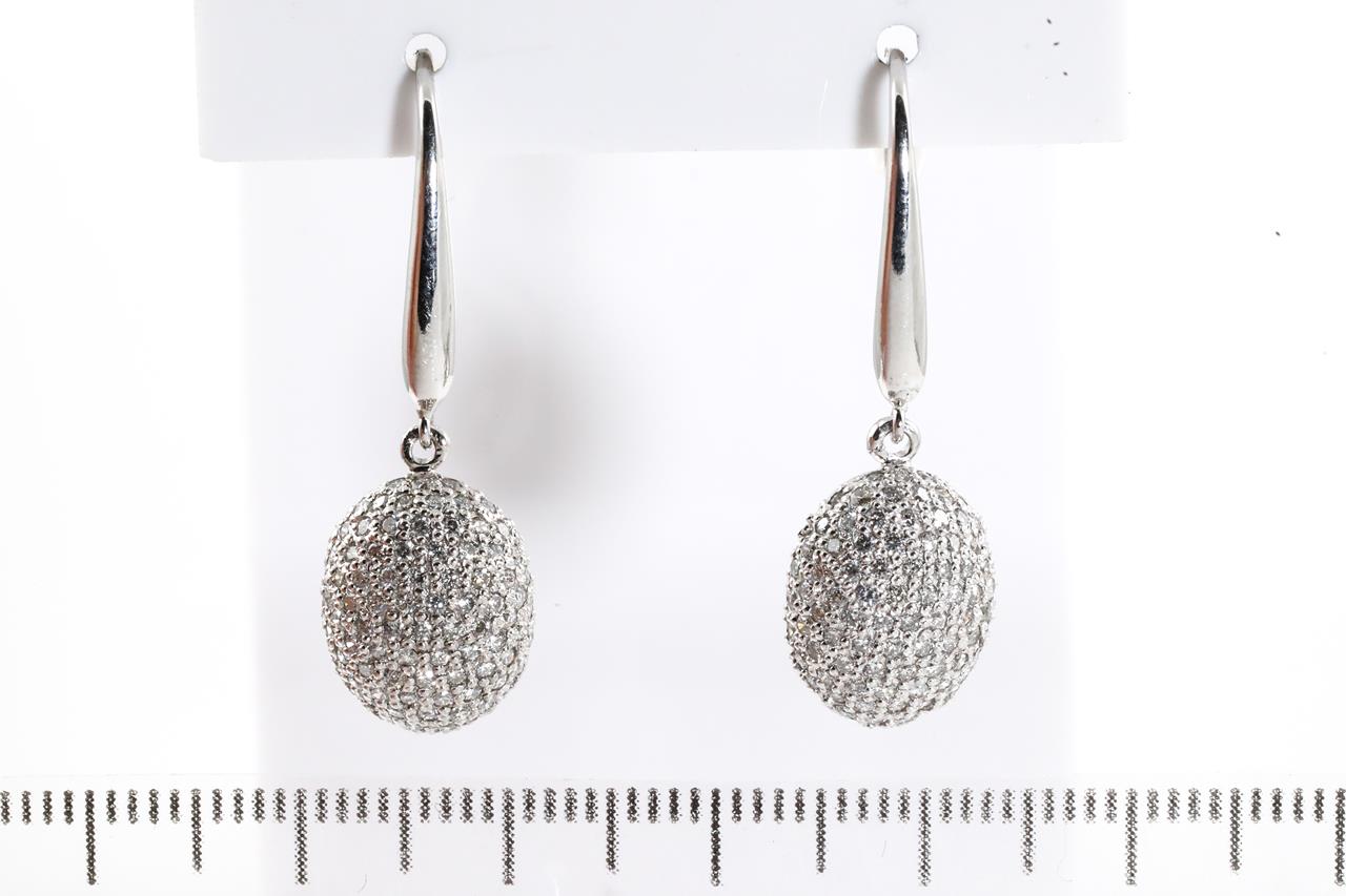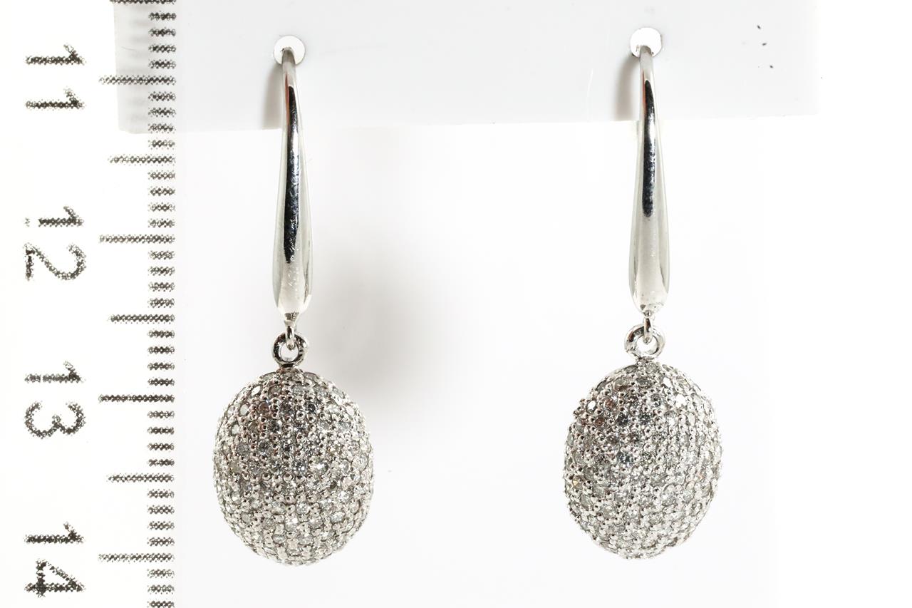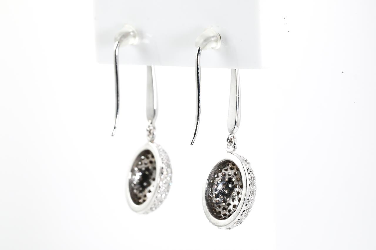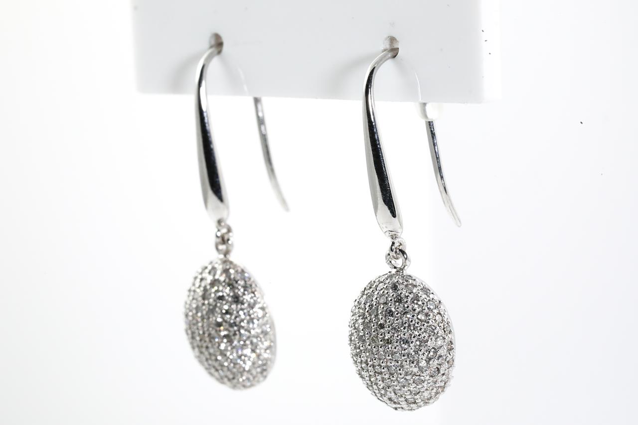 Diamond Sheperd Hook Earrings with round Diamonds totalling approximately 1.10cts (Estimated grading: H-I P1). 18ct white gold. Weight 6.1g. (As new)