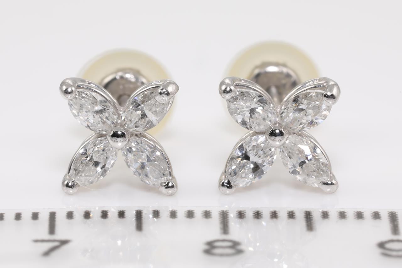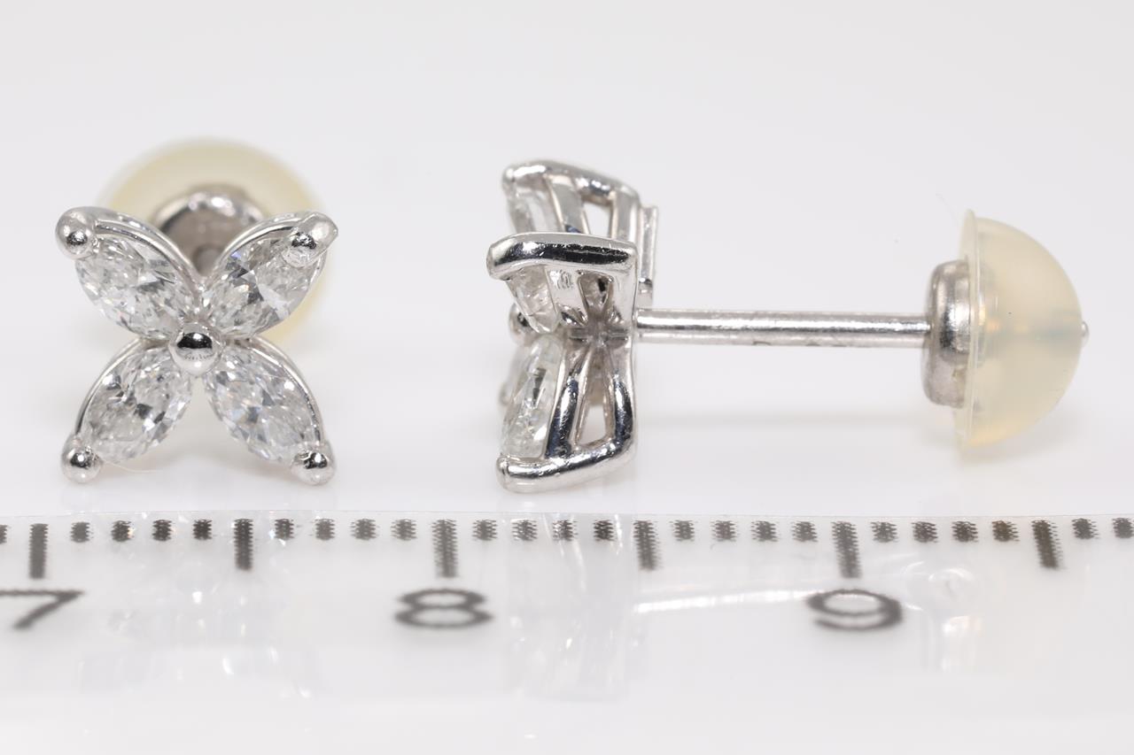 Diamond Earrings with marquise cut Diamonds totallling 0.68cts (Estimated grading: G-H SI). Platinum with platinum and silicon backs. Weight: 2.2g. (Pre-owned)