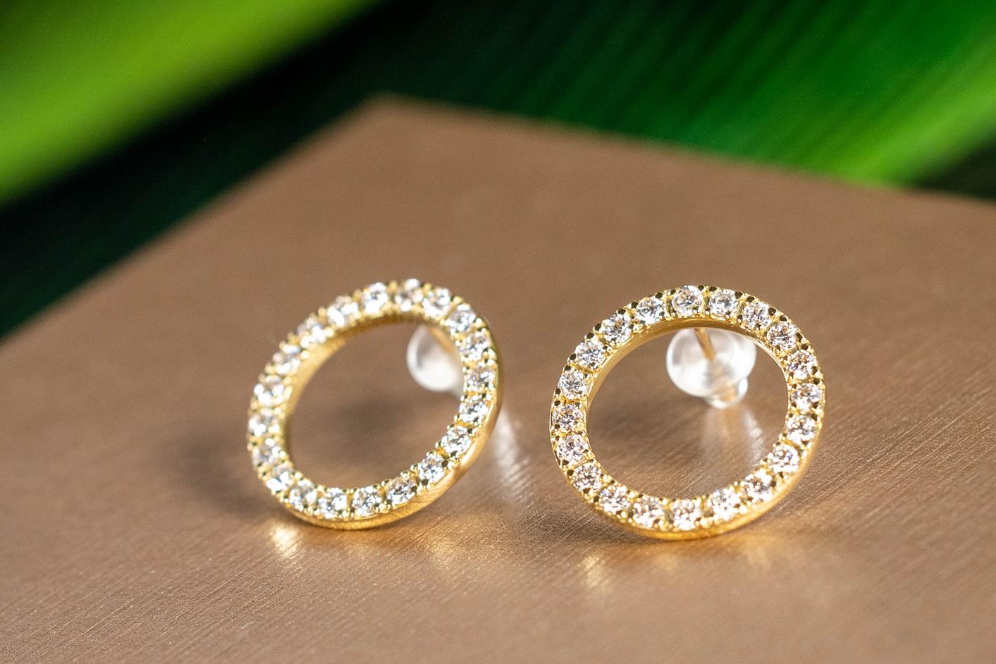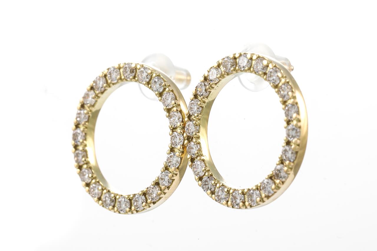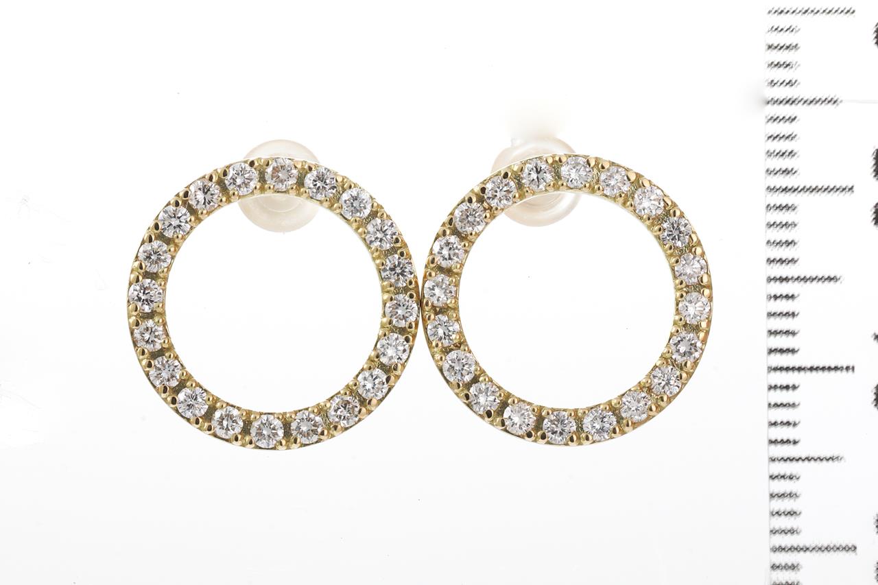 Diamond Earrings with Diamond totalling 1.00cts (Estimated grading: H SI). 18 yellow gold with silicon backs. Weight: 3.8g (Pre-owned)
