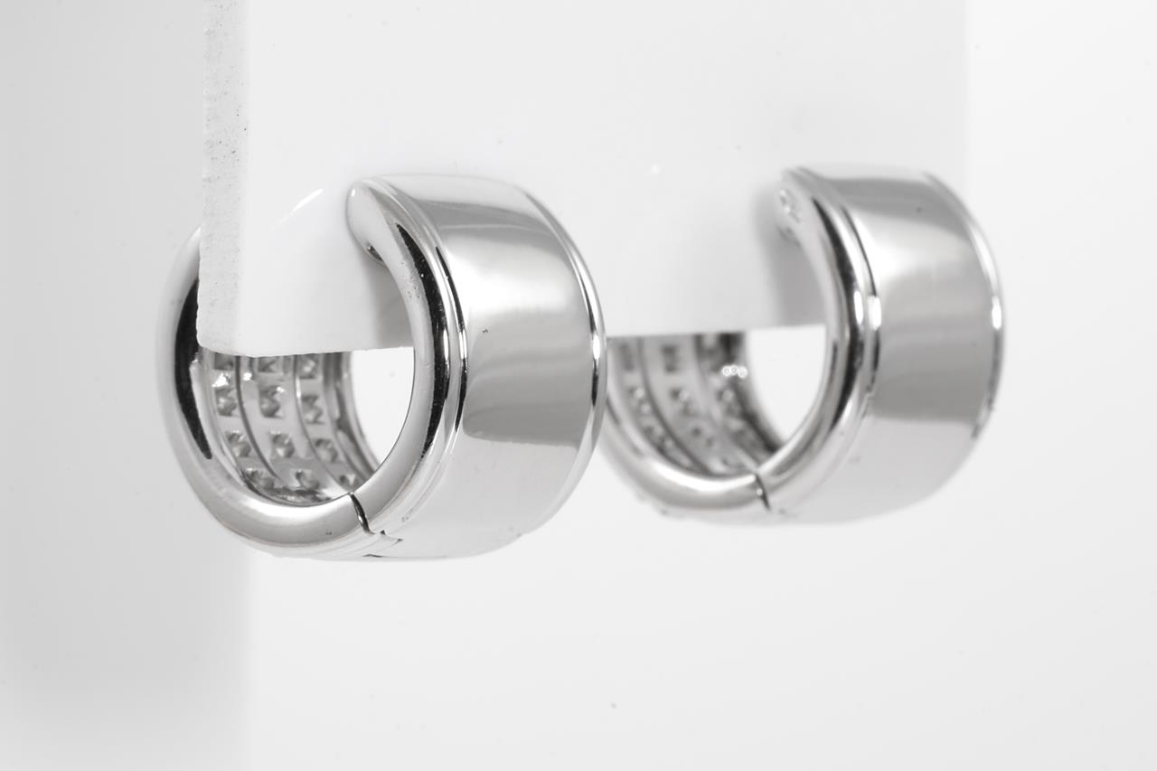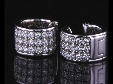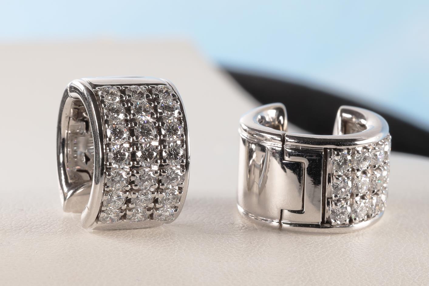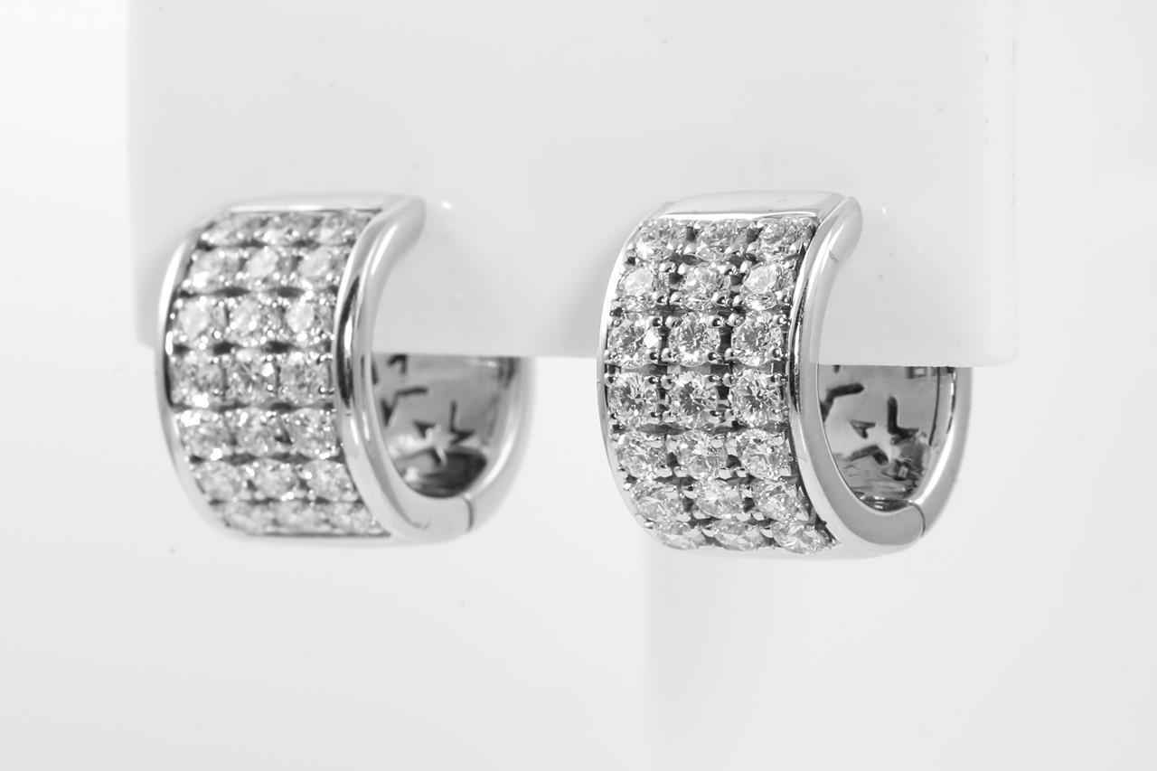 Diamond earrings with round Diamonds totalling approximately 2.05cts (Estimated grading G VS). 18ct white gold. Weight 16.7g. (As New)