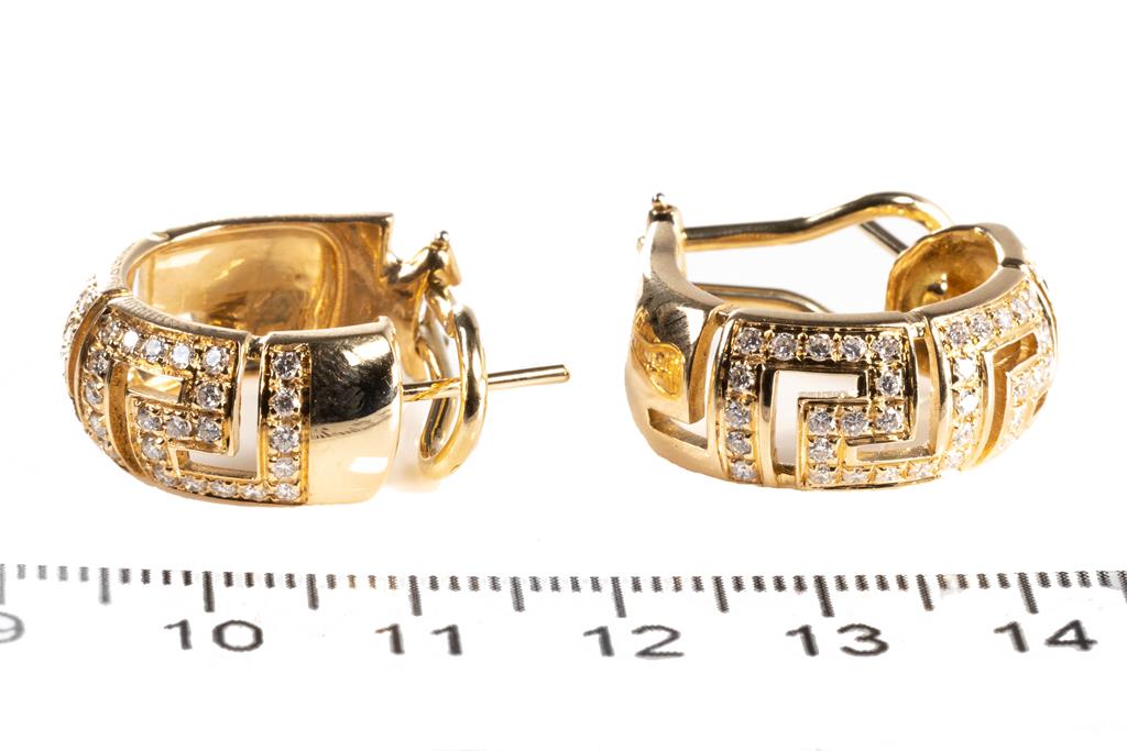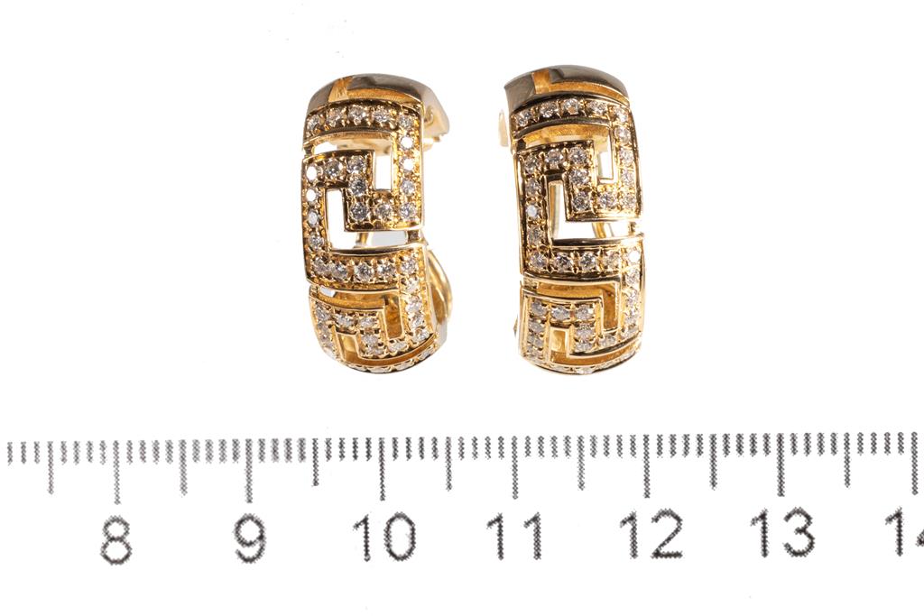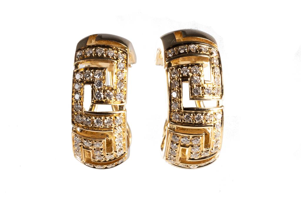 Diamond Earrings with round brilliant cut Diamonds totalling approximately 0.41cts (Estimated grading: G-H SI). 18ct yellow gold. For pierced ears, with safety clip-on. Weight 15.9g. (Pre-owned)
