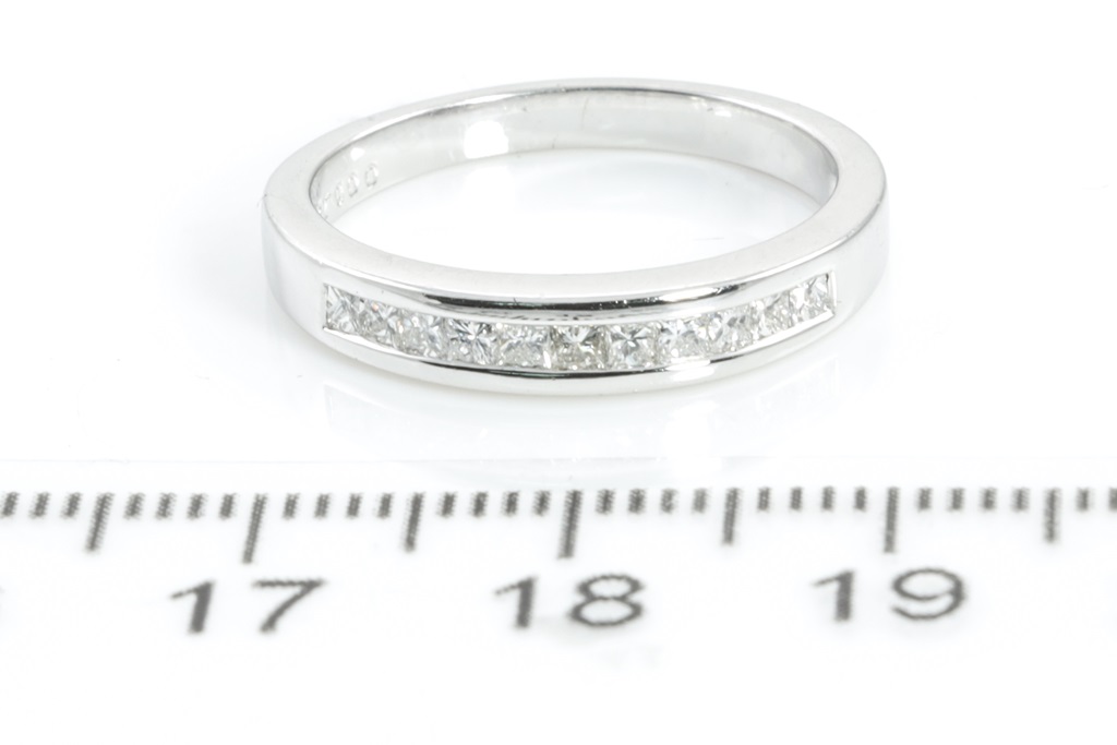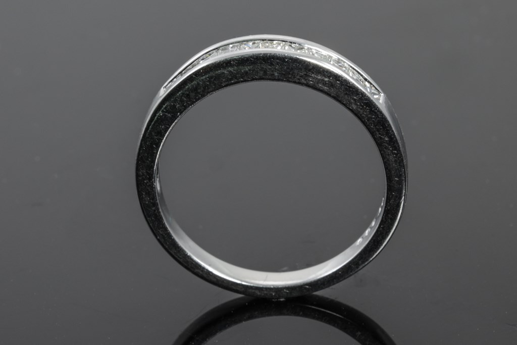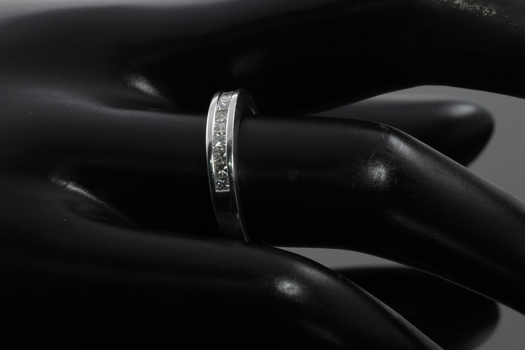 Diamond eternity ring with princess cut Diamonds totalling approximately 0.33cts (Estimated grading H-I SI). Platinum. Ring size N. Weight 4.8g. (Pre-owned)