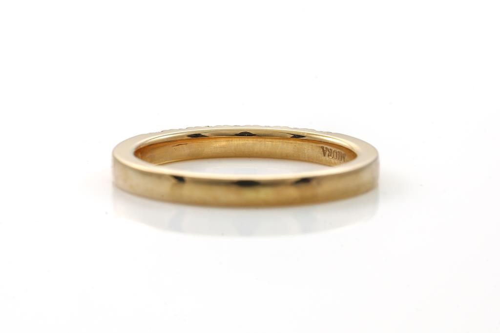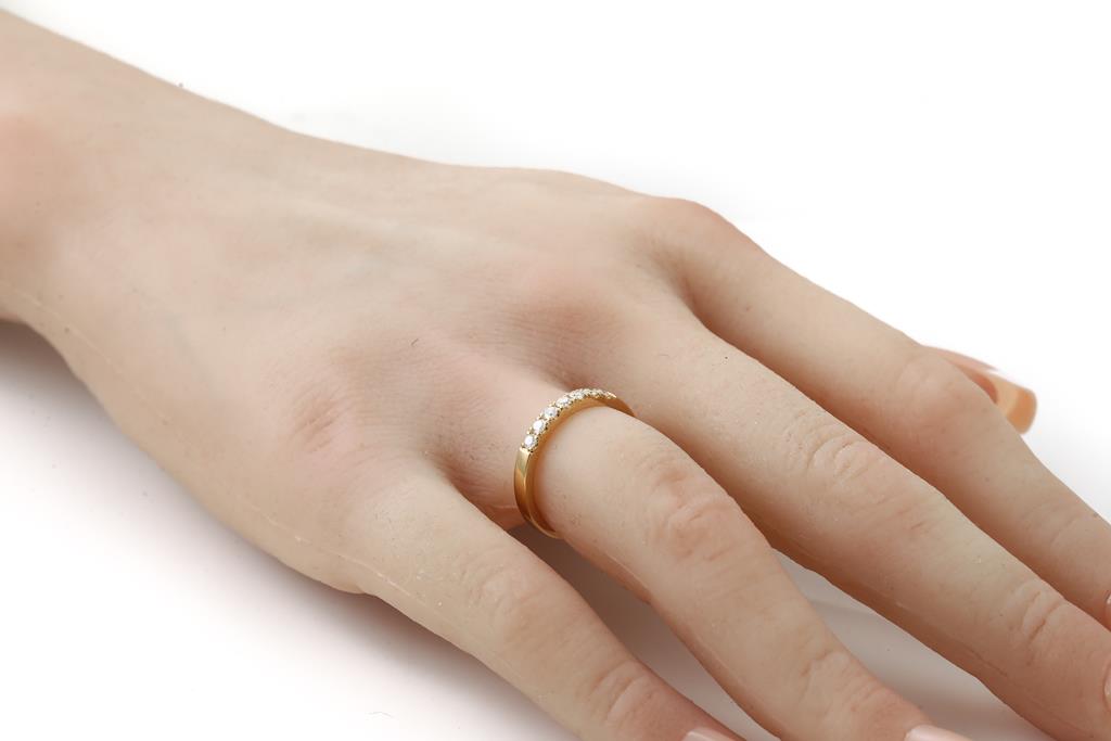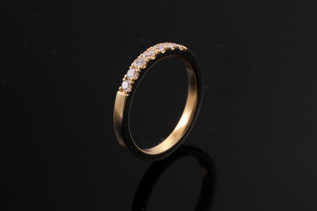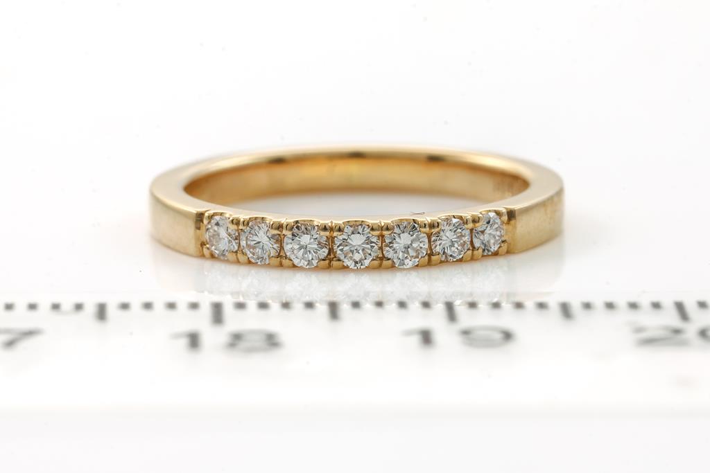 Diamond eternity ring with seven round Diamonds totalling 0.20cts. 18ct yellow gold. Ring size J 1/2. Weight: 2.6g. (Pre-owned)