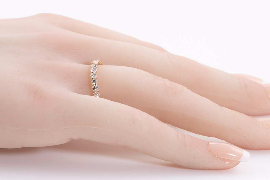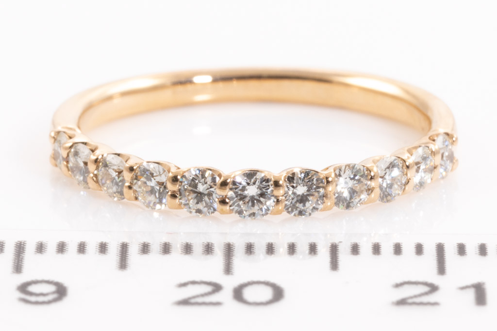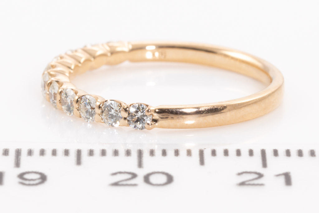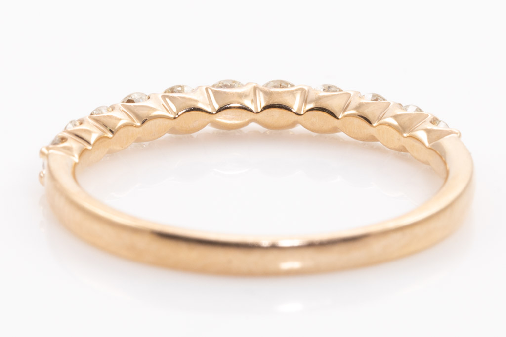 Diamond half loop eternity ring with 11 round Diamonds totalling 0.50cts (Estimated grading: J SI). 18ct rose gold. Ring size M - ring resize is not recommended. Weight: 2.0g. (Pre-owned)