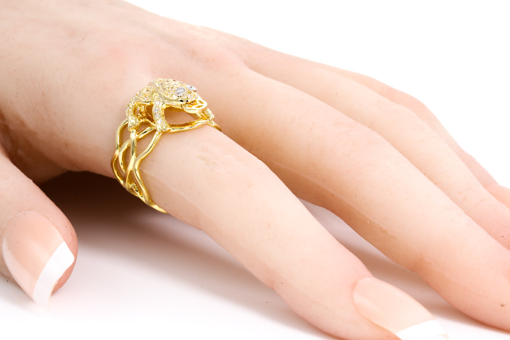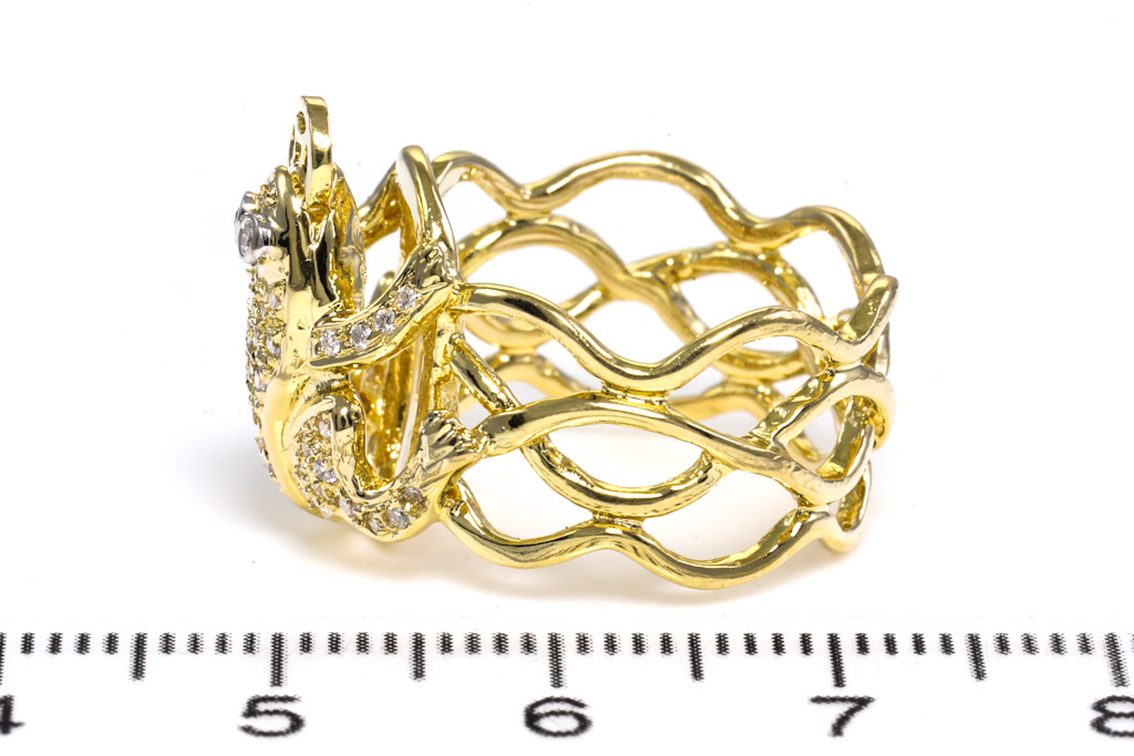 Frog design Diamond ring with round Diamond totalling approximately 0.25cts. 18ct yellow gold. Ring size K - ring resizing id not recommended. Weight: 7.6g (Pre-owned)