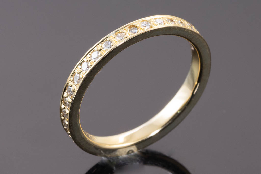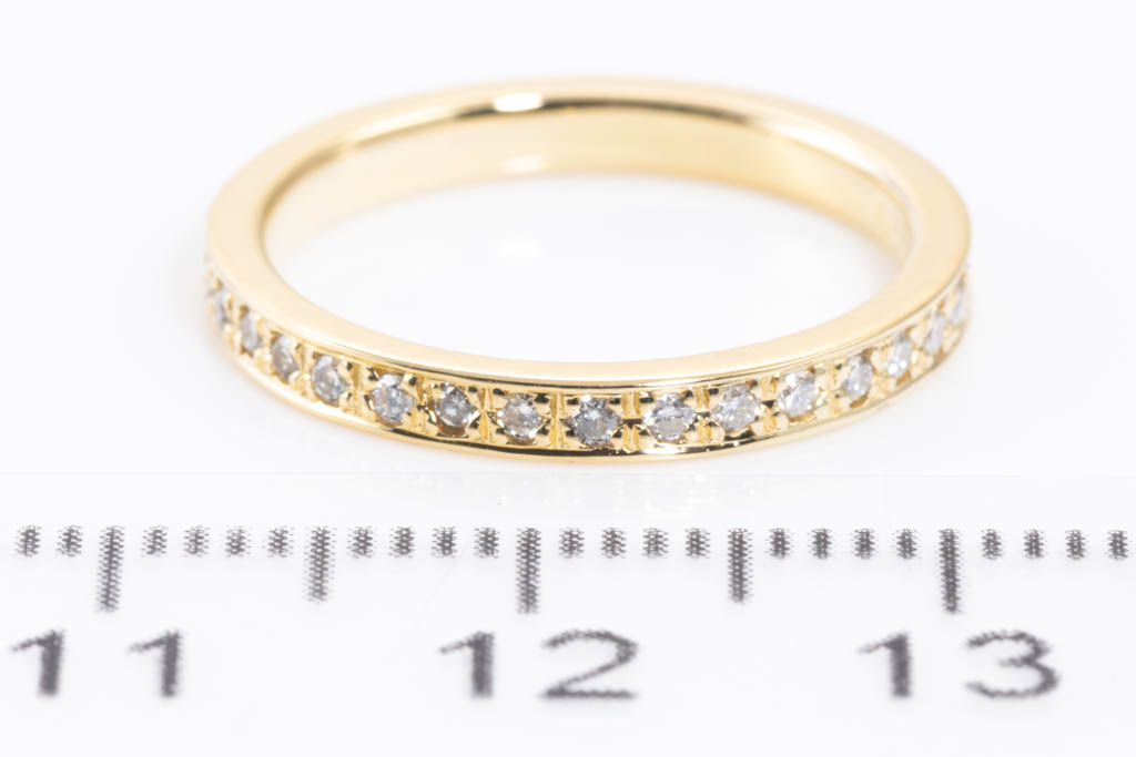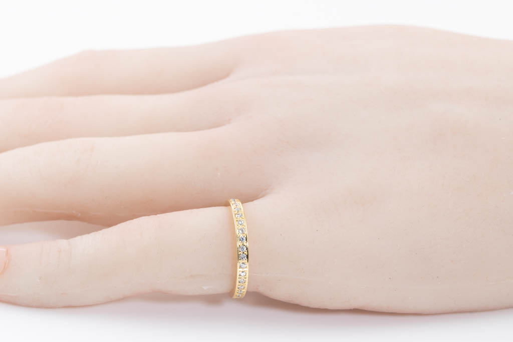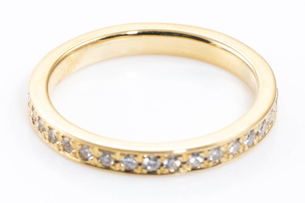 Diamond Full Hoop Eternity ring with round Diamonds totalling 0.29cts. 18ct yellow gold. Ring size I1/2 - ring resizing is not recommended. Weight: 2.4g. (Pre-owned)