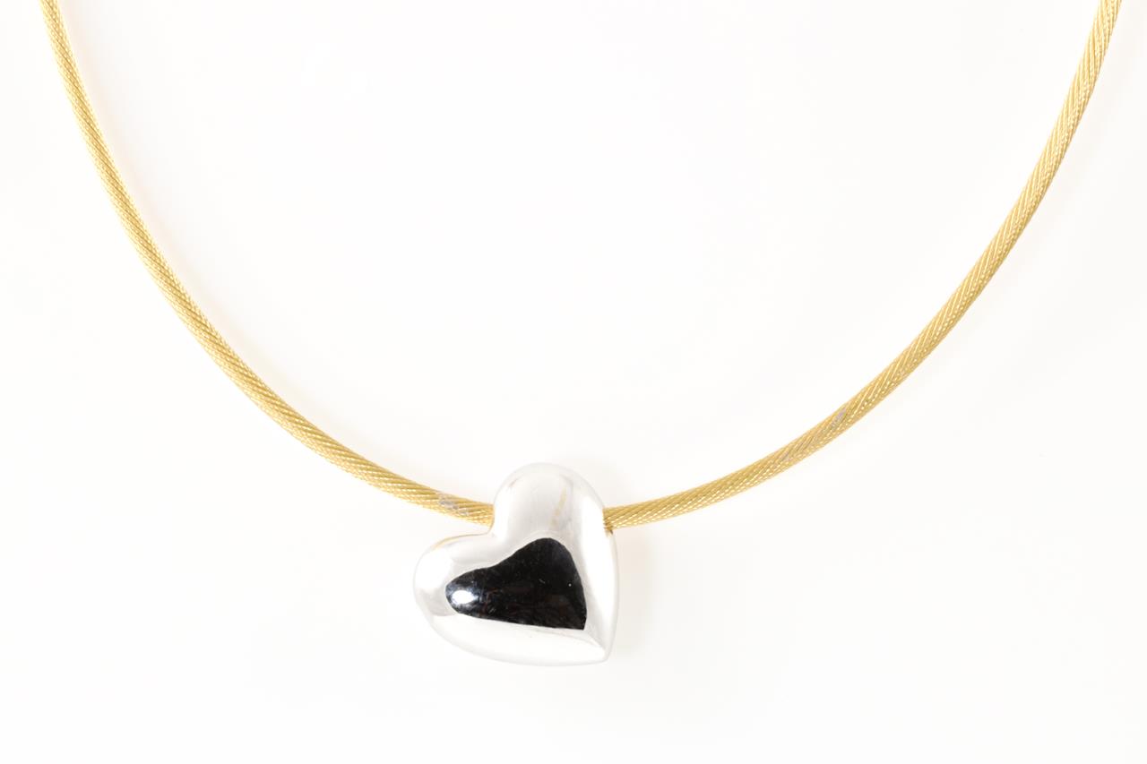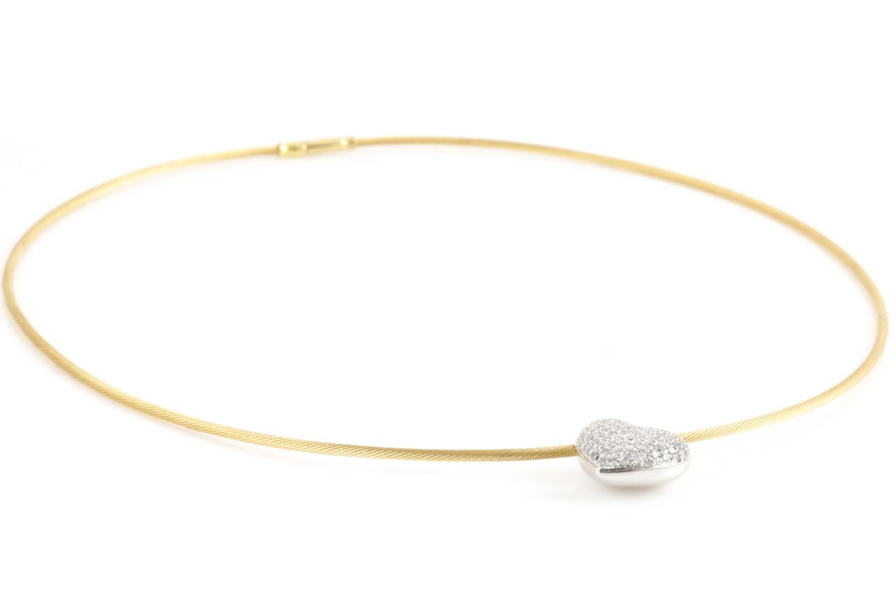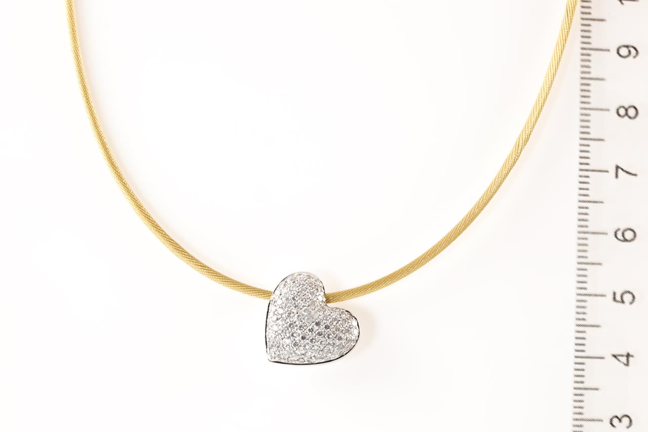 Diamond Heart Necklace with 88 round Diamonds approximately totalling 0.88cts (Estimated grading: G-H VS). 18ct white gold with 18ct yellow gold chain. Length 40.5cm. Weight 13g. (Pre-owned)