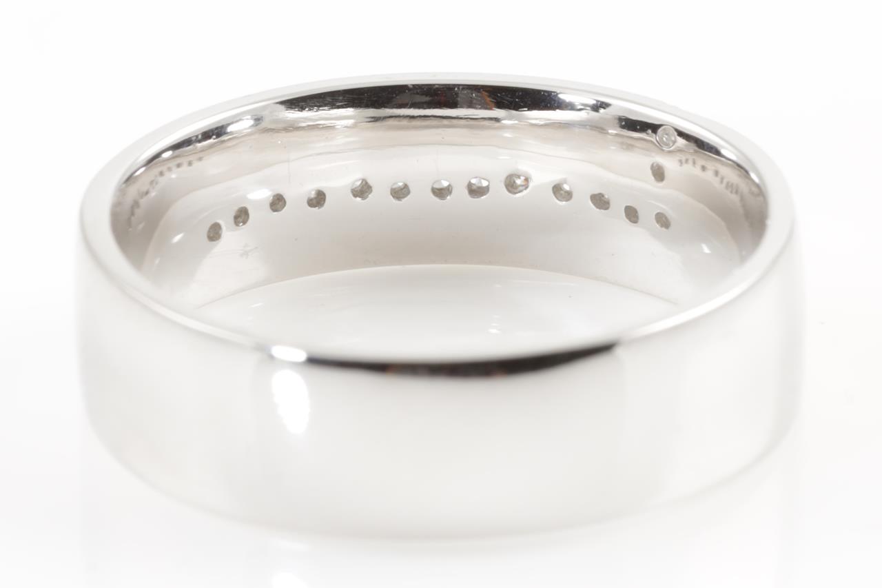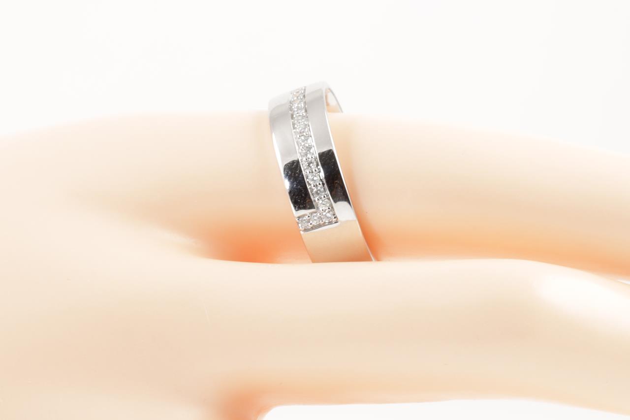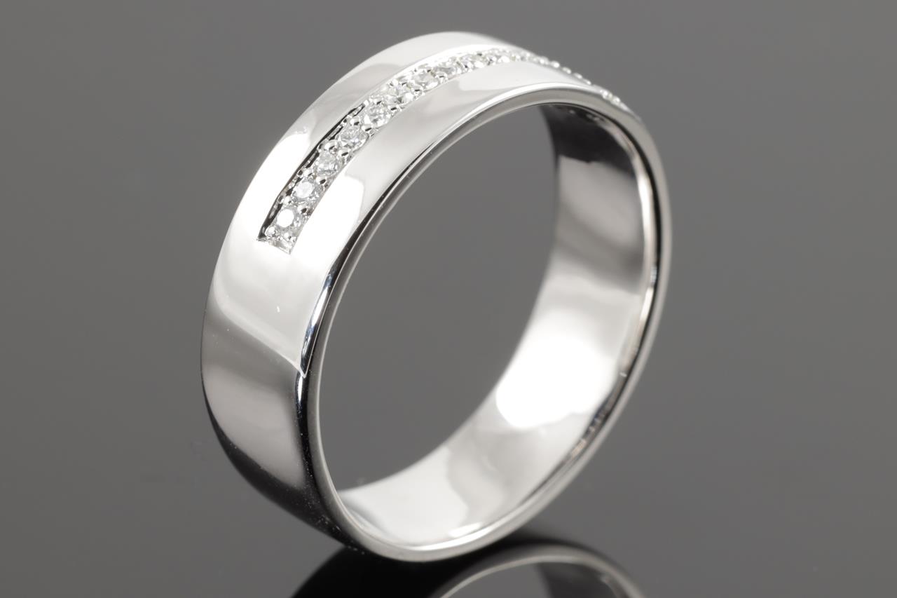 Mens ring with 15 round Diamonds totalling 0.16cts. 14ct white gold. Ring size U - ring resizing is not recommended. Weight: 8.2g. (New)