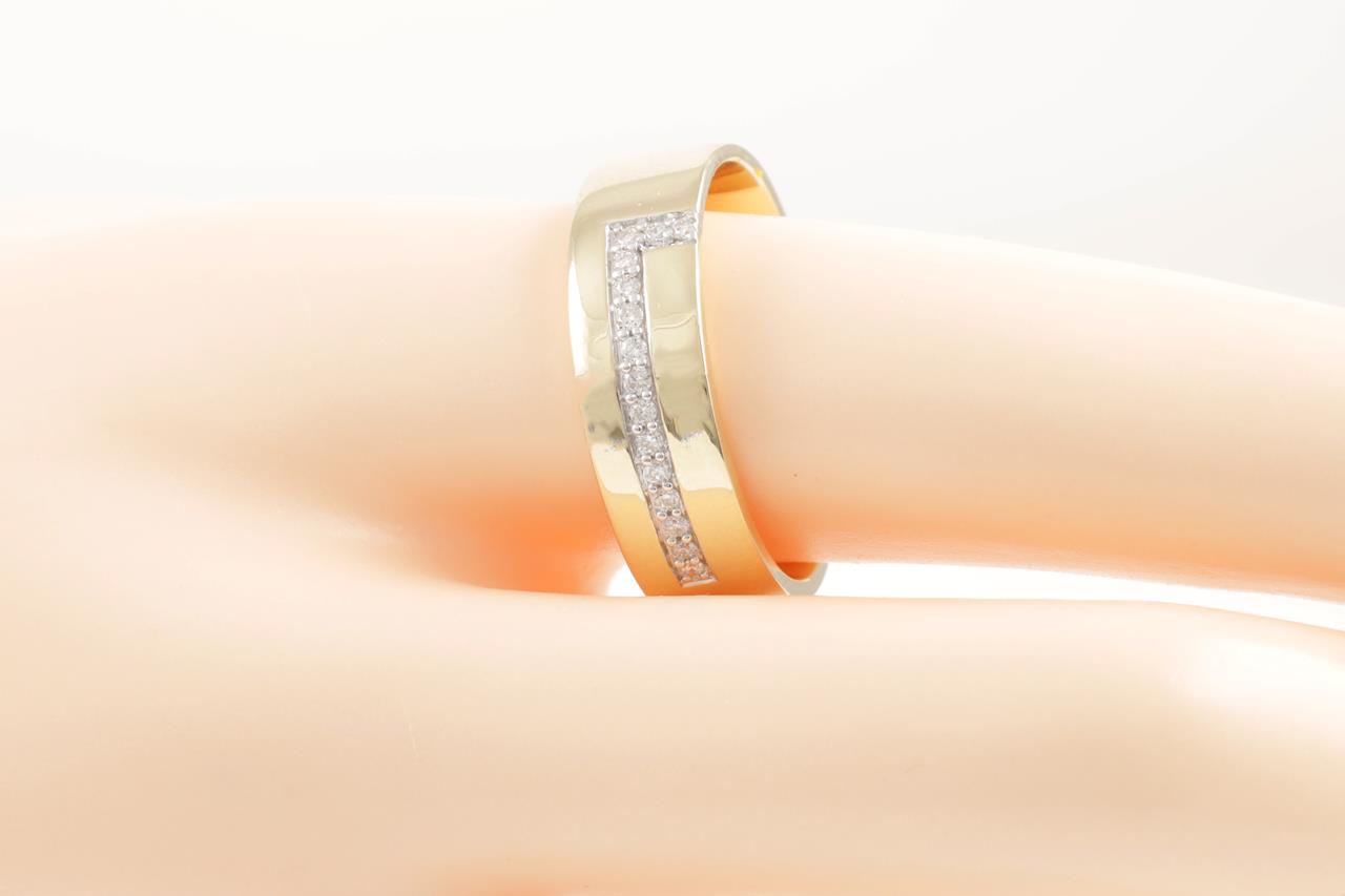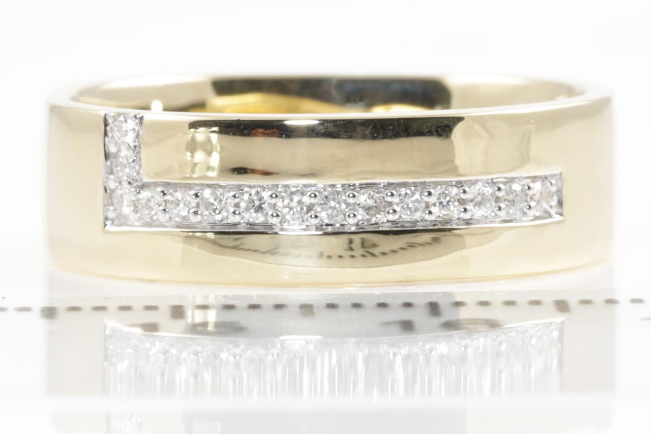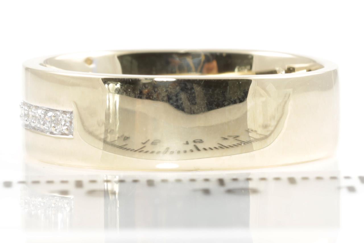 Mens ring with 15 round Diamonds totalling 0.15cts. 14ct yellow gold. Ring size U - ring resizing is not recommended. Weight: 8.1g. (New)
