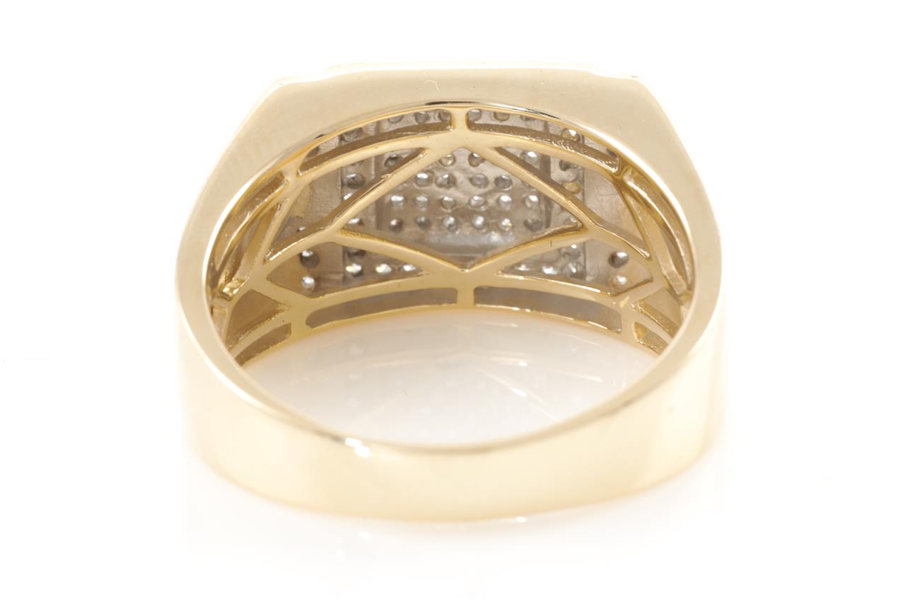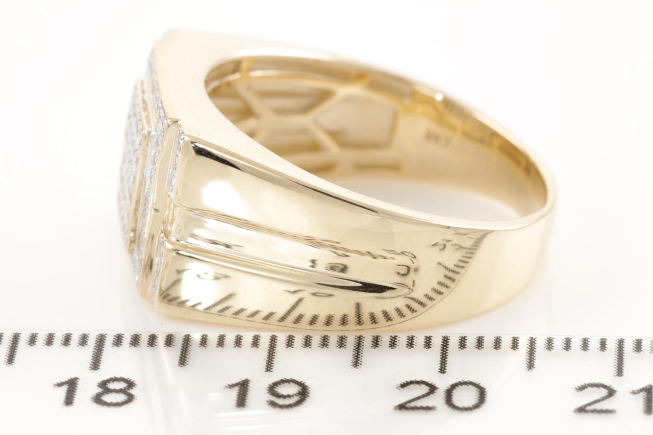 Mens ring with 80 round Diamonds totalling 0.49cts (Estimated grading: H SI-P1). 9ct yellow & white gold. Ring size U1/2. Weight: 8.4g. (New)