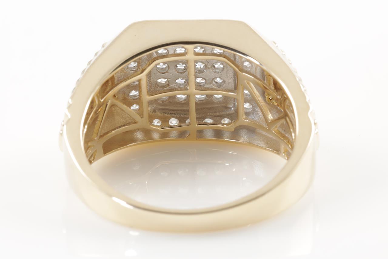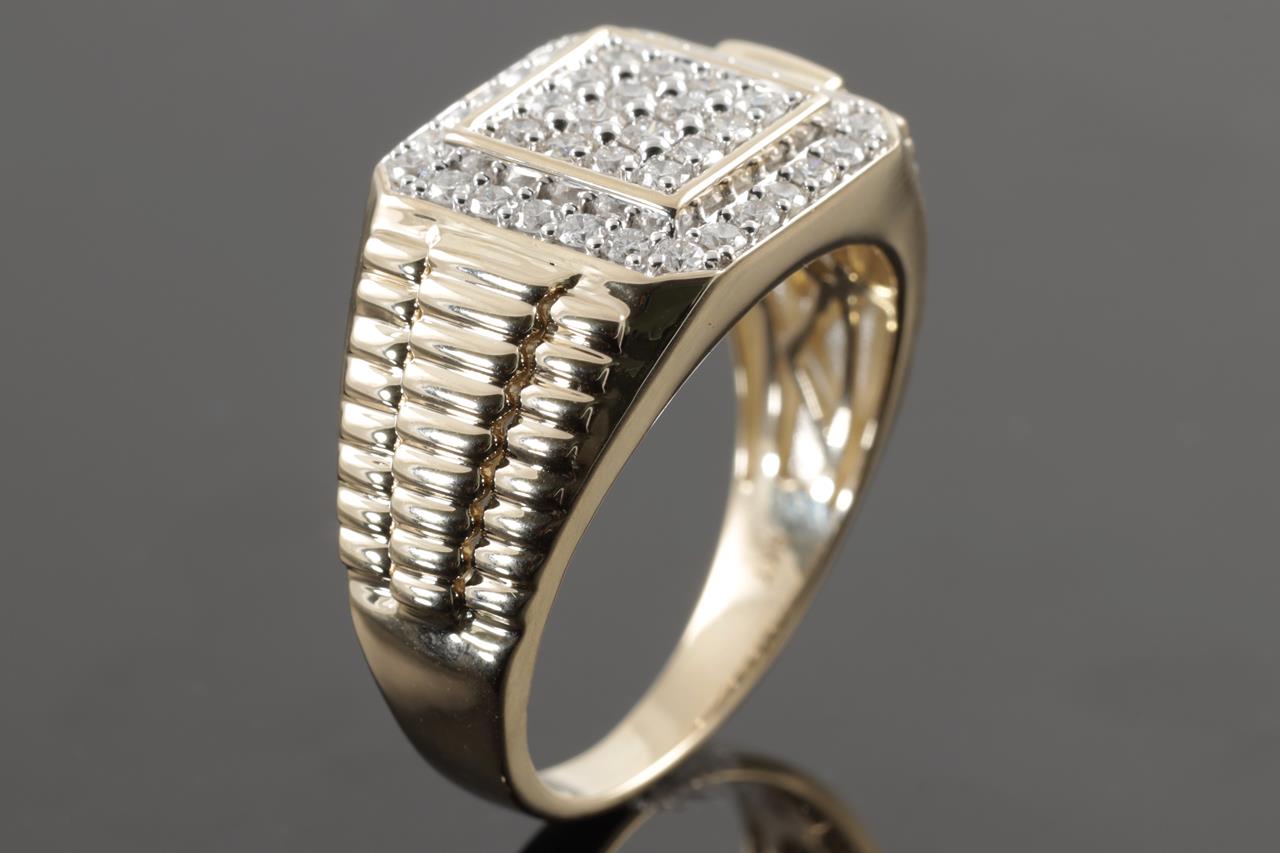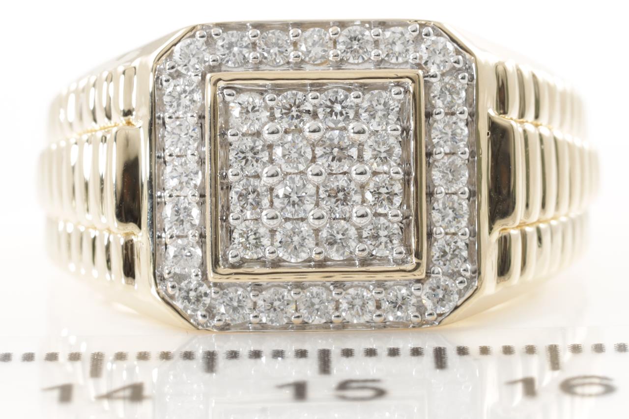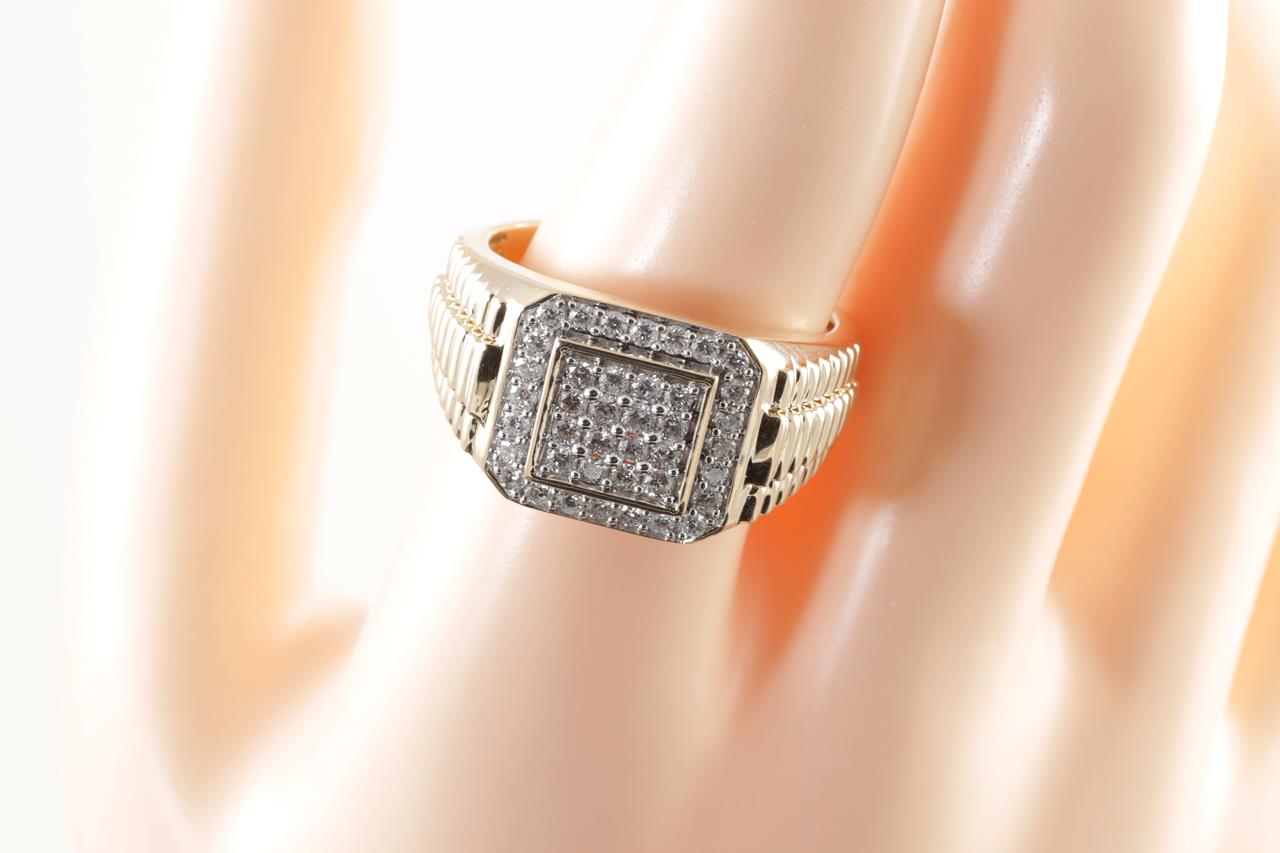 Mens ring with 40 round Diamonds totalling 0.79cts (Estimated grading: H SI). 9ct yellow & white gold. Ring size U1/2. Weight: 7.6g. (New)