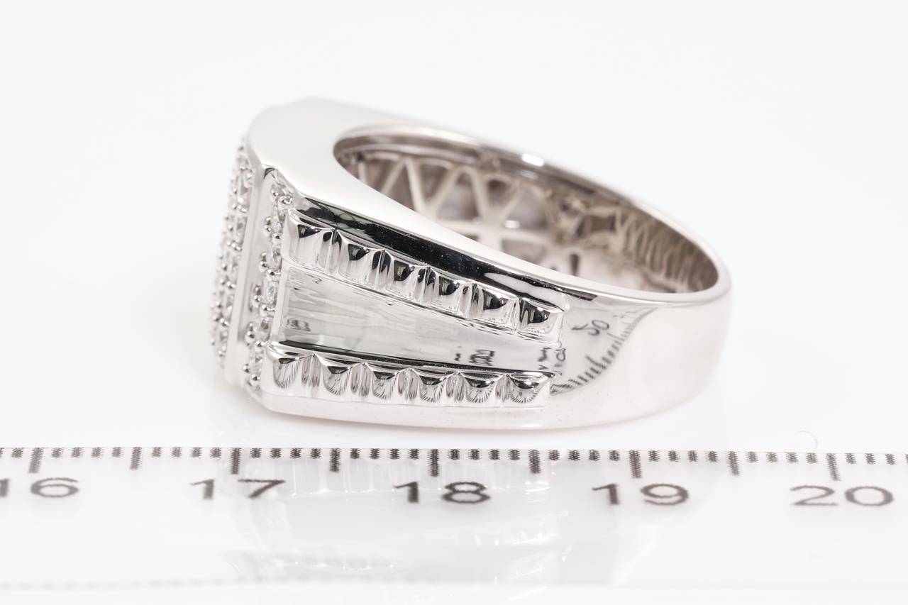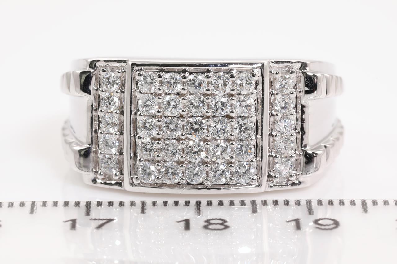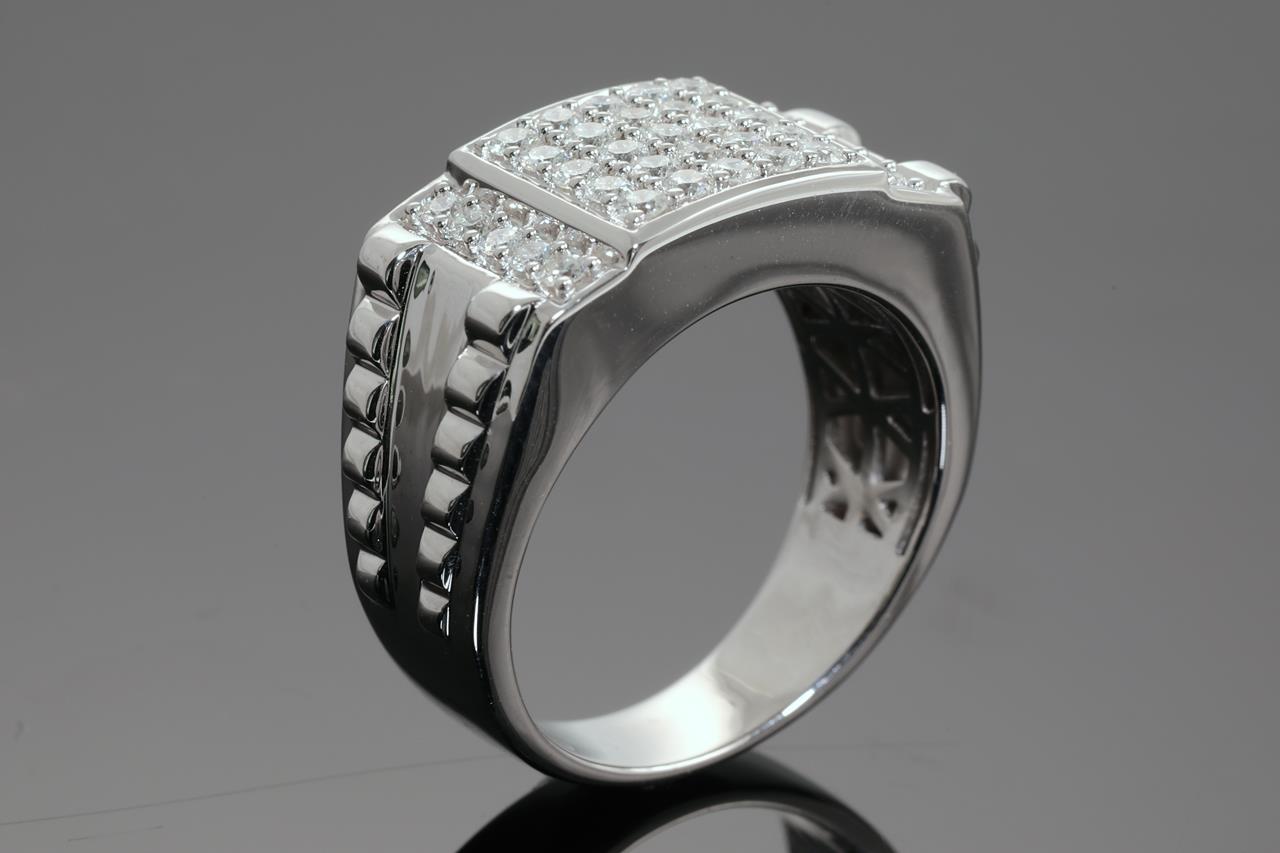 Mens ring with 35 Diamonds totalling 1.04cts (Estimated grading: H SI). 9ct white gold. Ring size U. Weight: 13.3g (New)