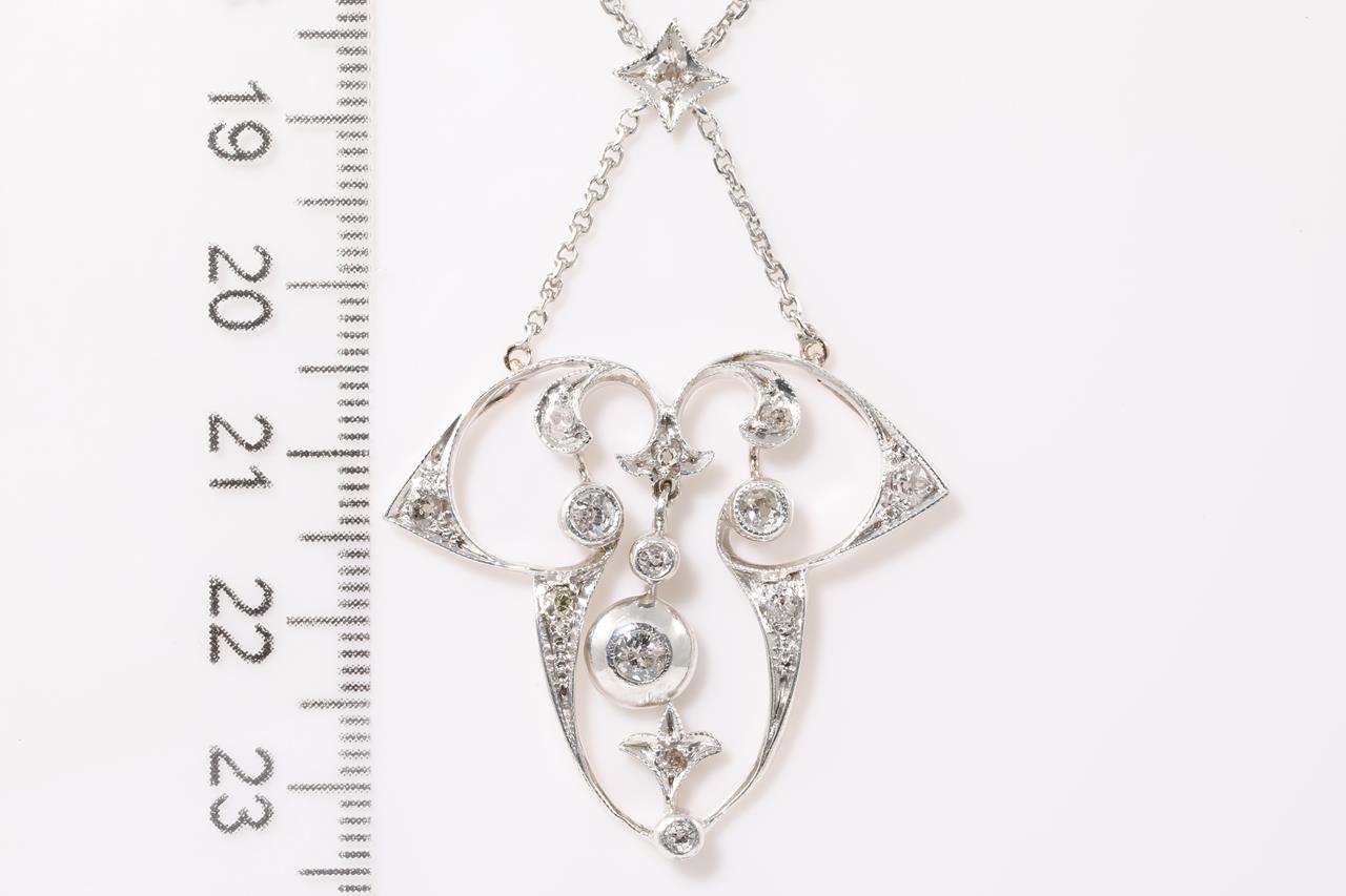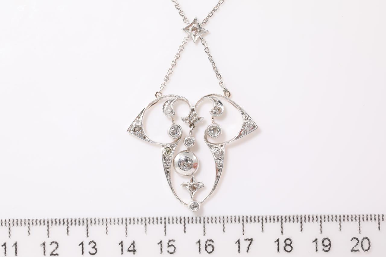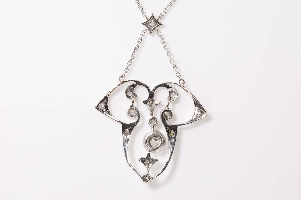Vintage Diamond necklace with old cut Diamonds (2 chipped). Weight: 6.7gm. Silver. Length: 40cm. (Pre-owned)