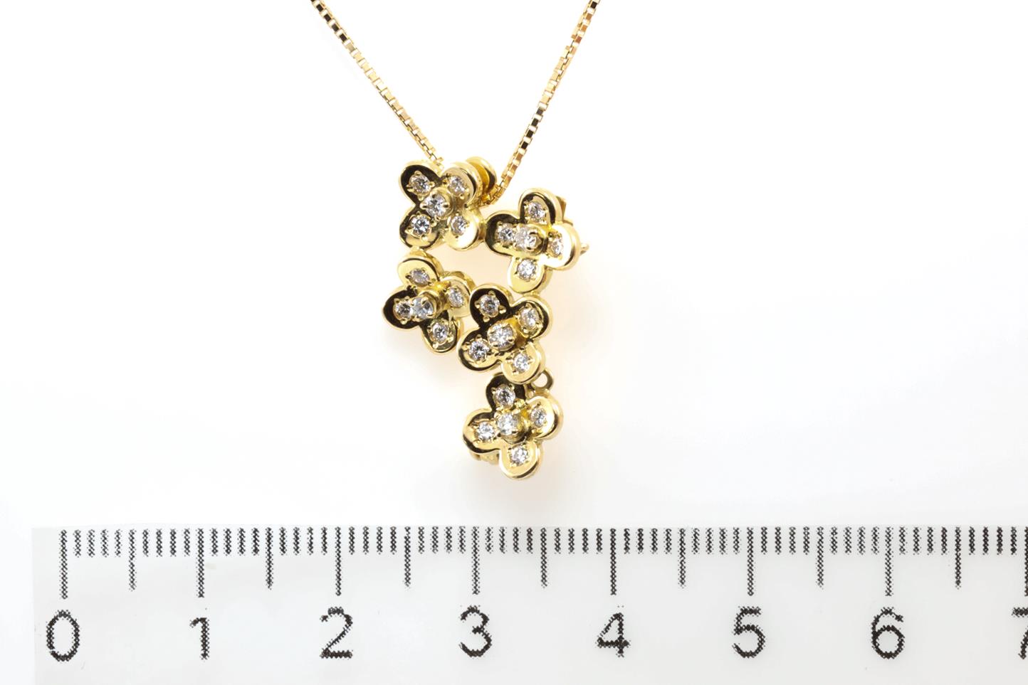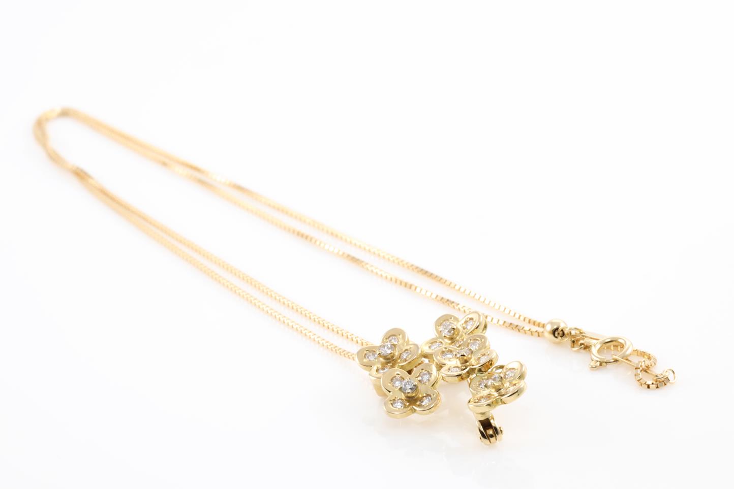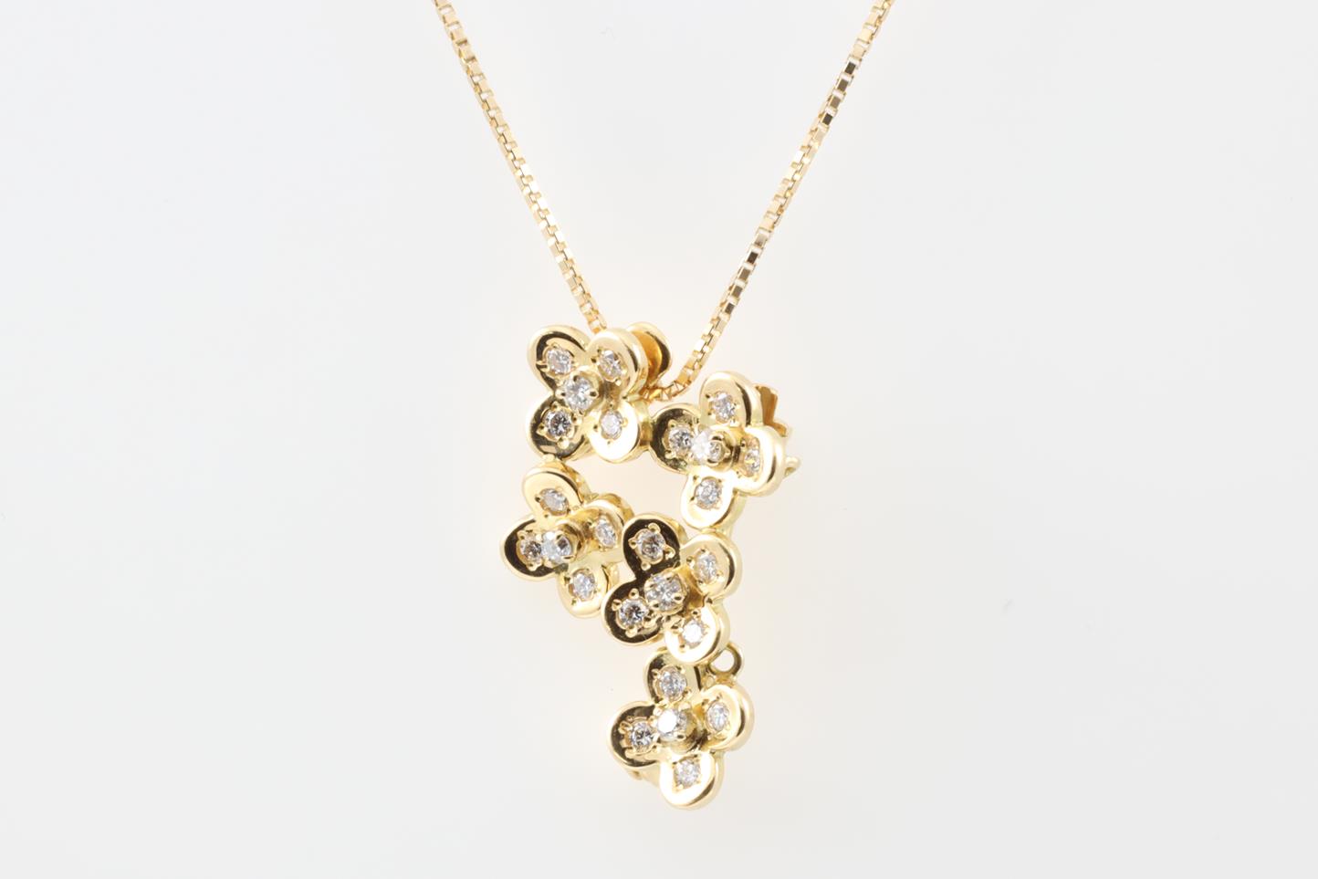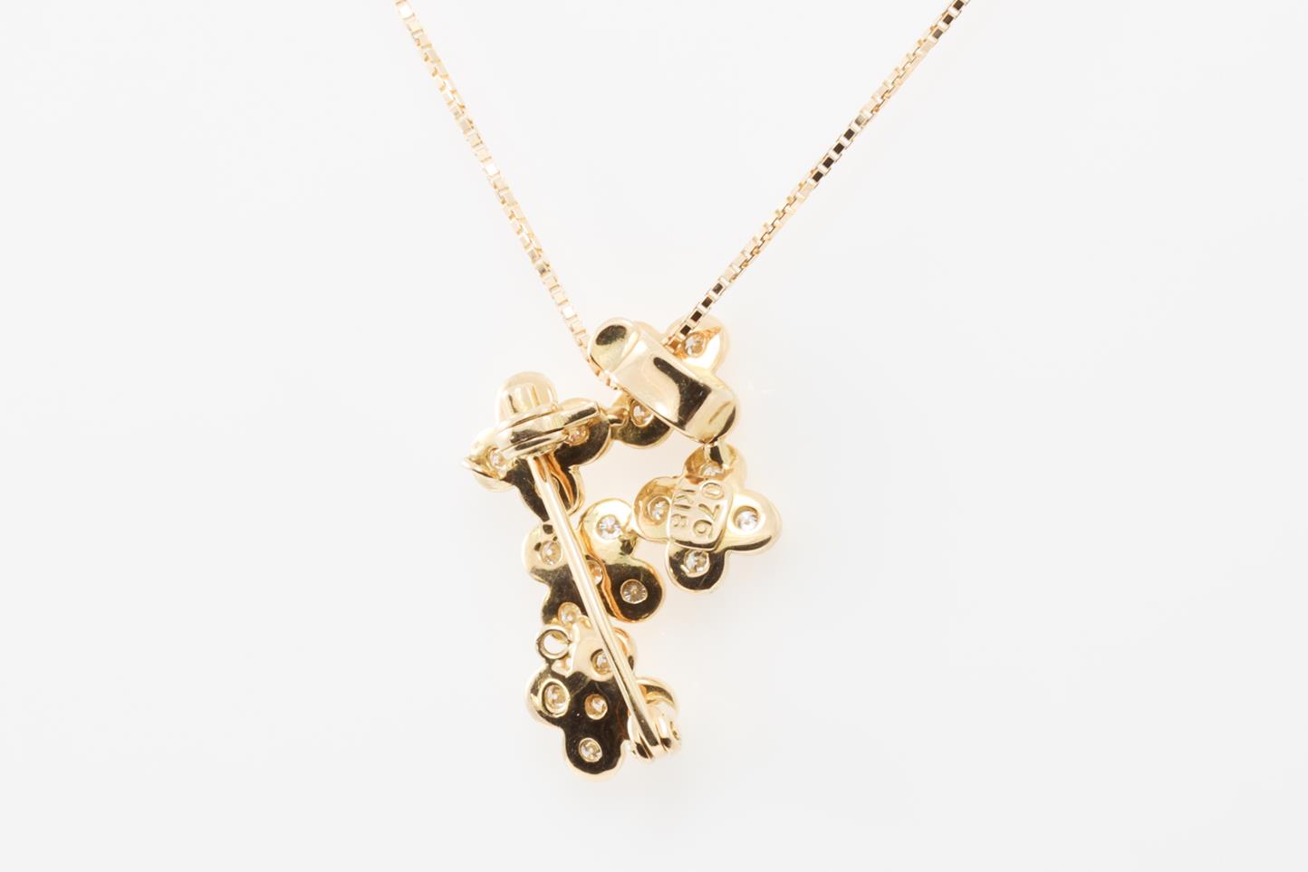 Diamond pendant/brooch with round Diamonds totalling approximately 0.50cts (Estimated grading: H-I SI). 18ct yellow gold with 18ct gold adjustable 45cm chain. Weight: 6g (Pre-owned)