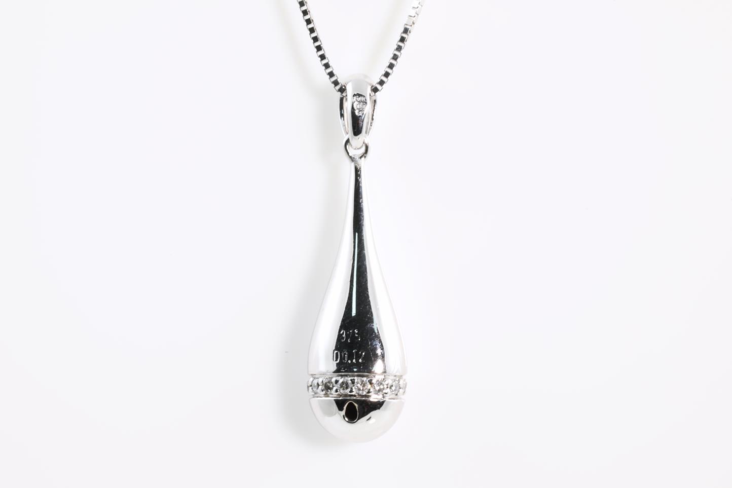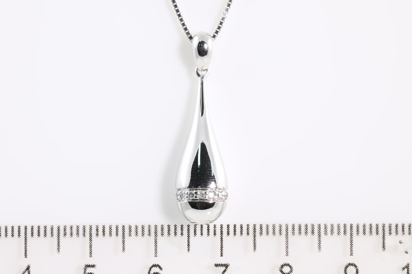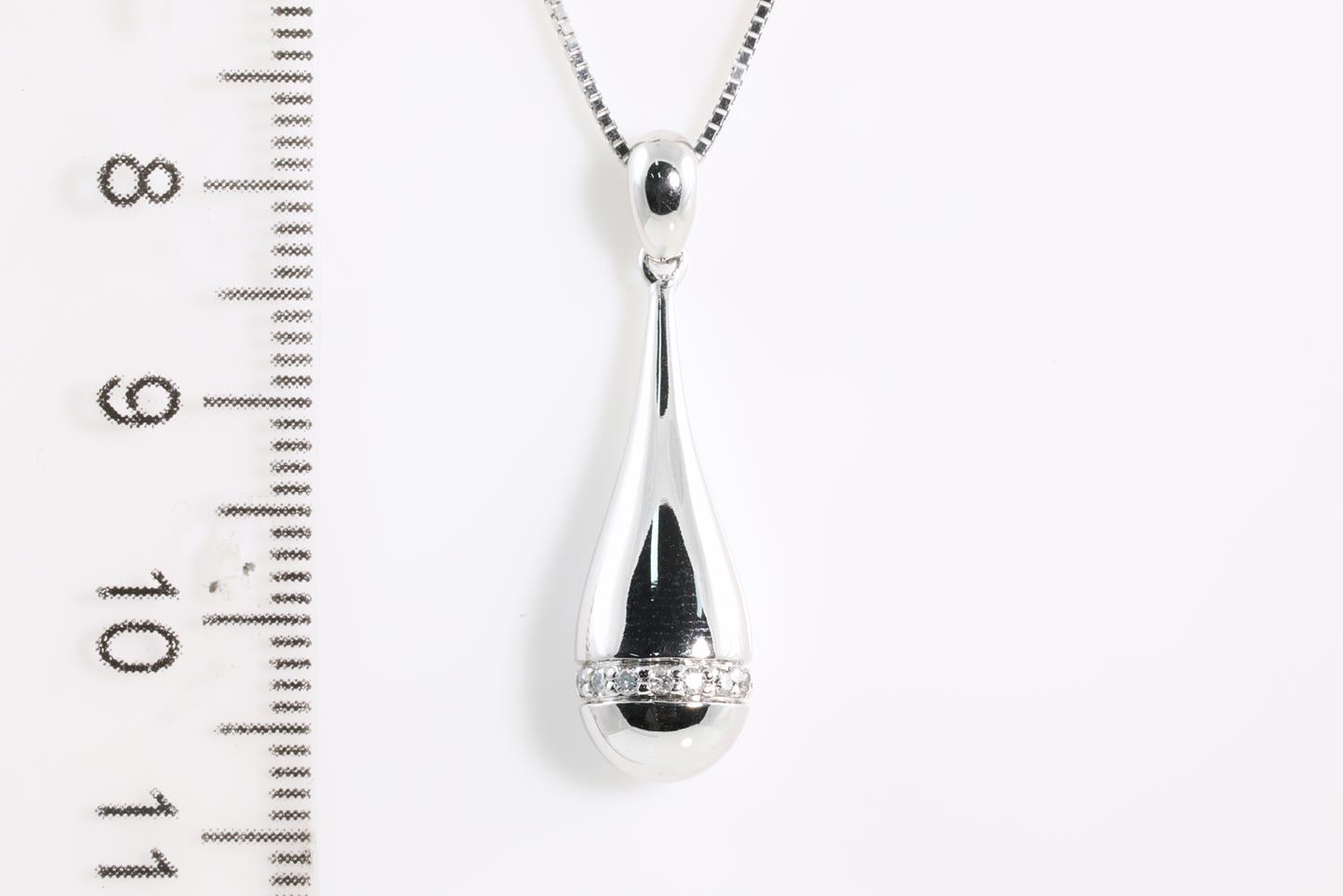 Diamond drop pendant with round Diamonds totalling 0.12cts. 9ct white gold with 45cm 9ct white gold chain. Weight: 4.1g. (Pre-owned)