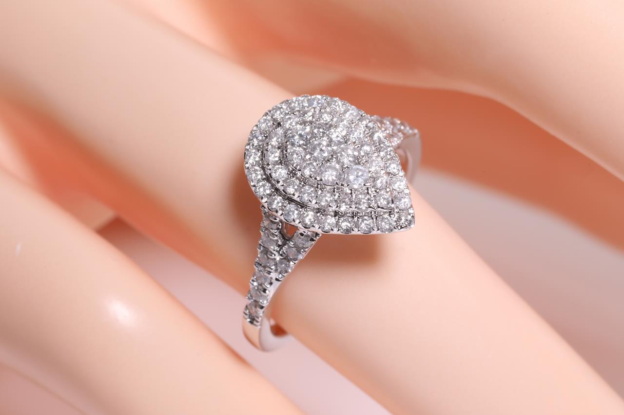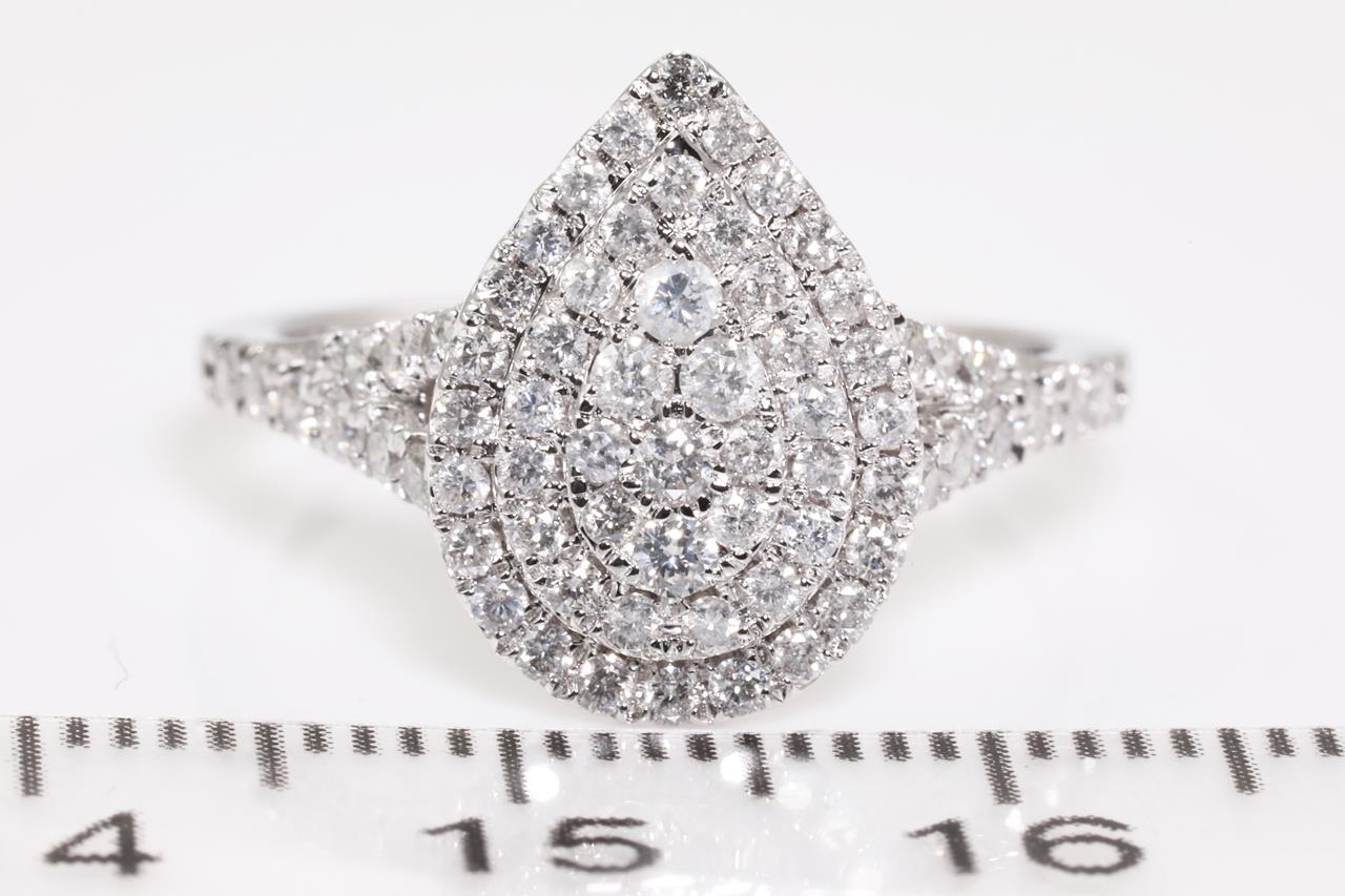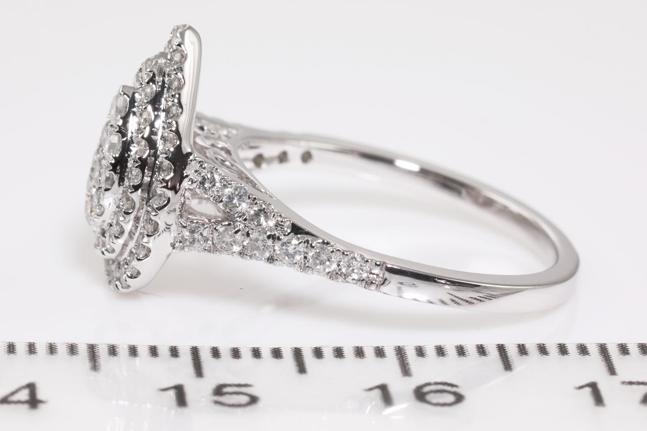 Diamond ring with round brilliant cut Diamonds totalling approximately 1.00ct (Estimated grading: G-H P1-2). 14ct white gold. Ring size M. Weight 3.3g. (Pre-owned)