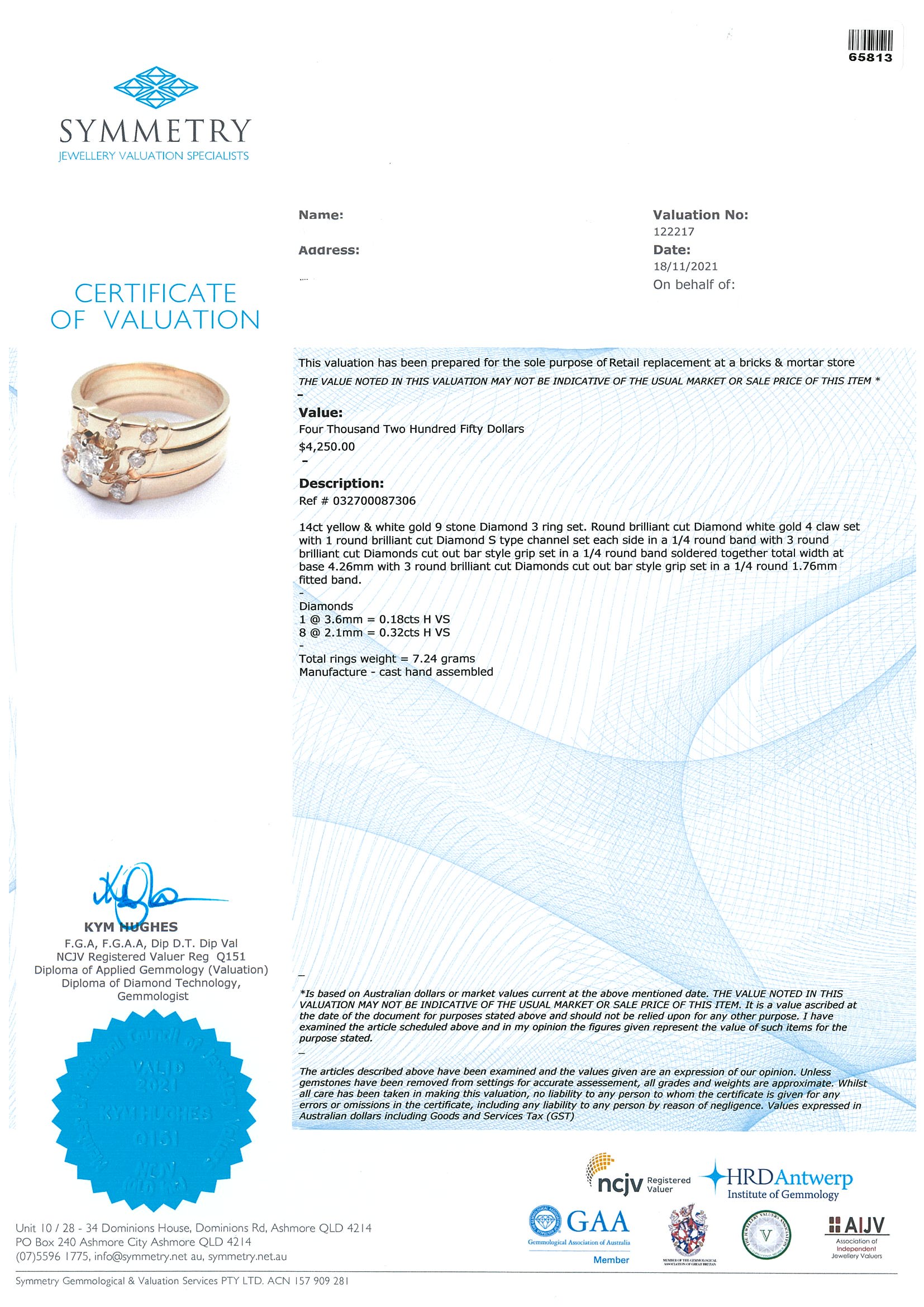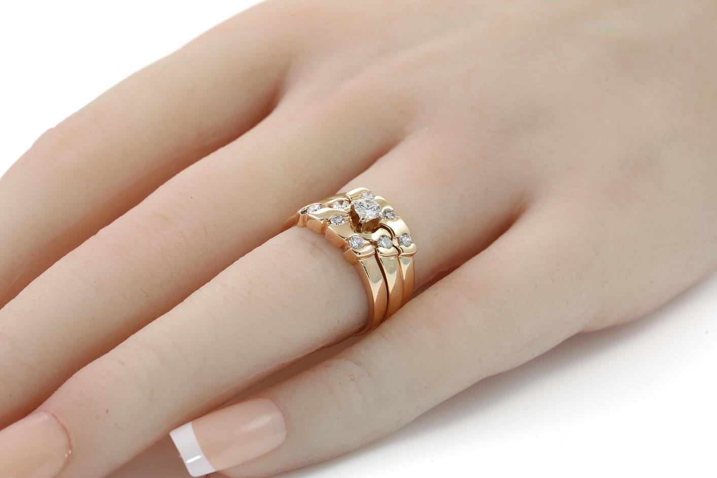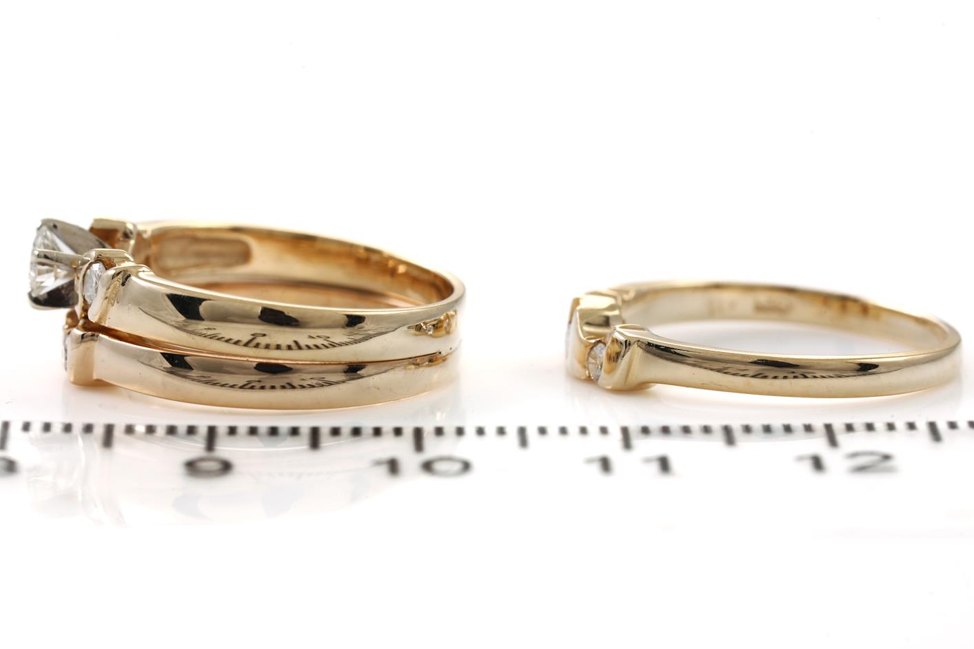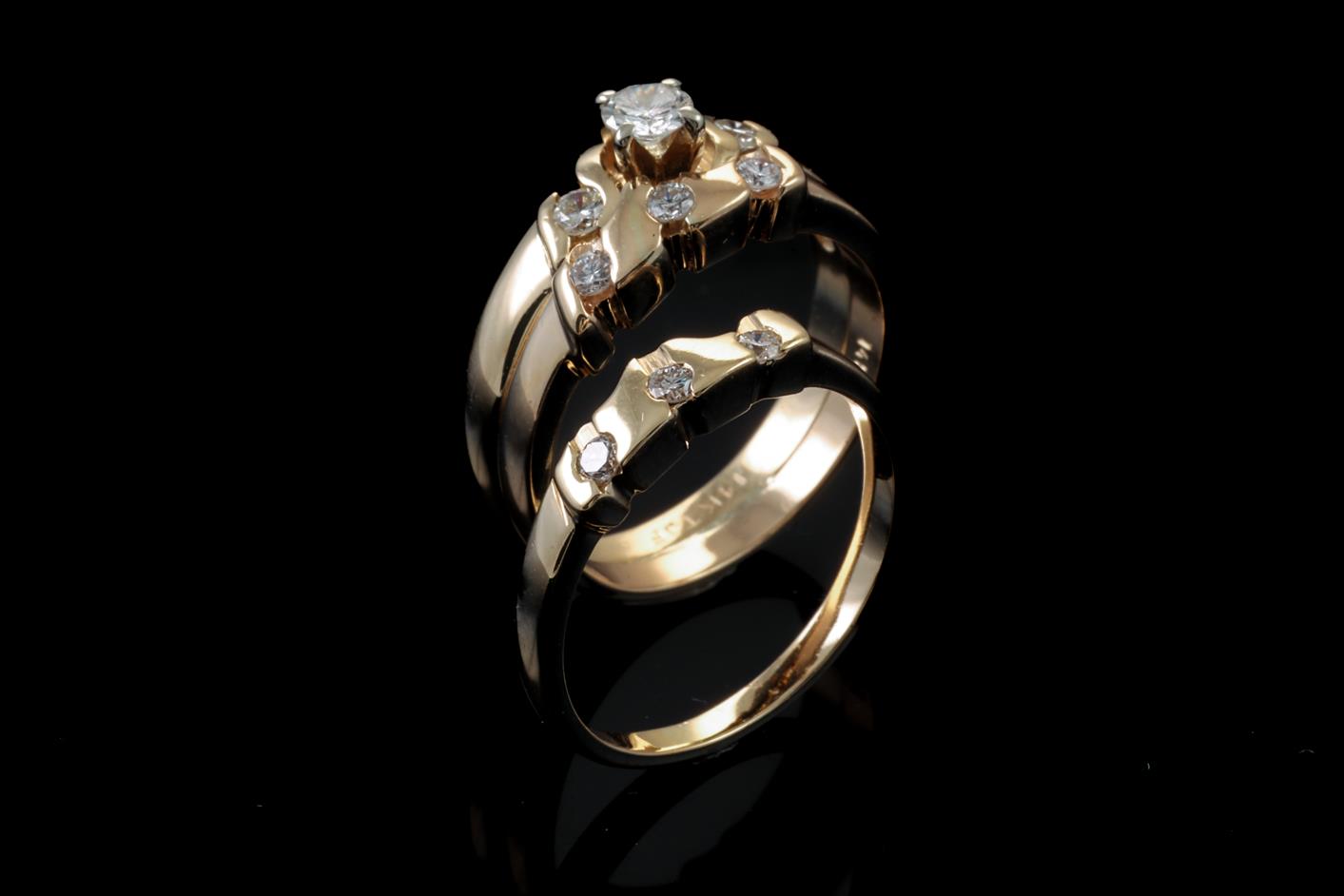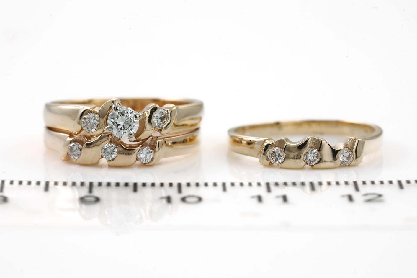 Diamond Ring set with centre round cut Diamond of 0.18ct and round cut Diamonds totalling approximately 0.32cts (Estimated grading H VS). 18ct yellow gold. Ring size K. Weight 7.2g. (Pre-owned)