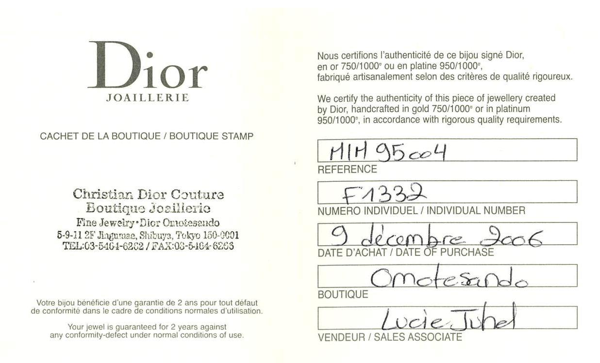 Dior Mimioui bracelet with a round Diamond of 0.05ct. 18ct white gold. Adjustable max length: 16.5cm Weight: 1.4g. With Dior authenticity dated 09/12/2006 and worn Dior box. (Pre-owned)