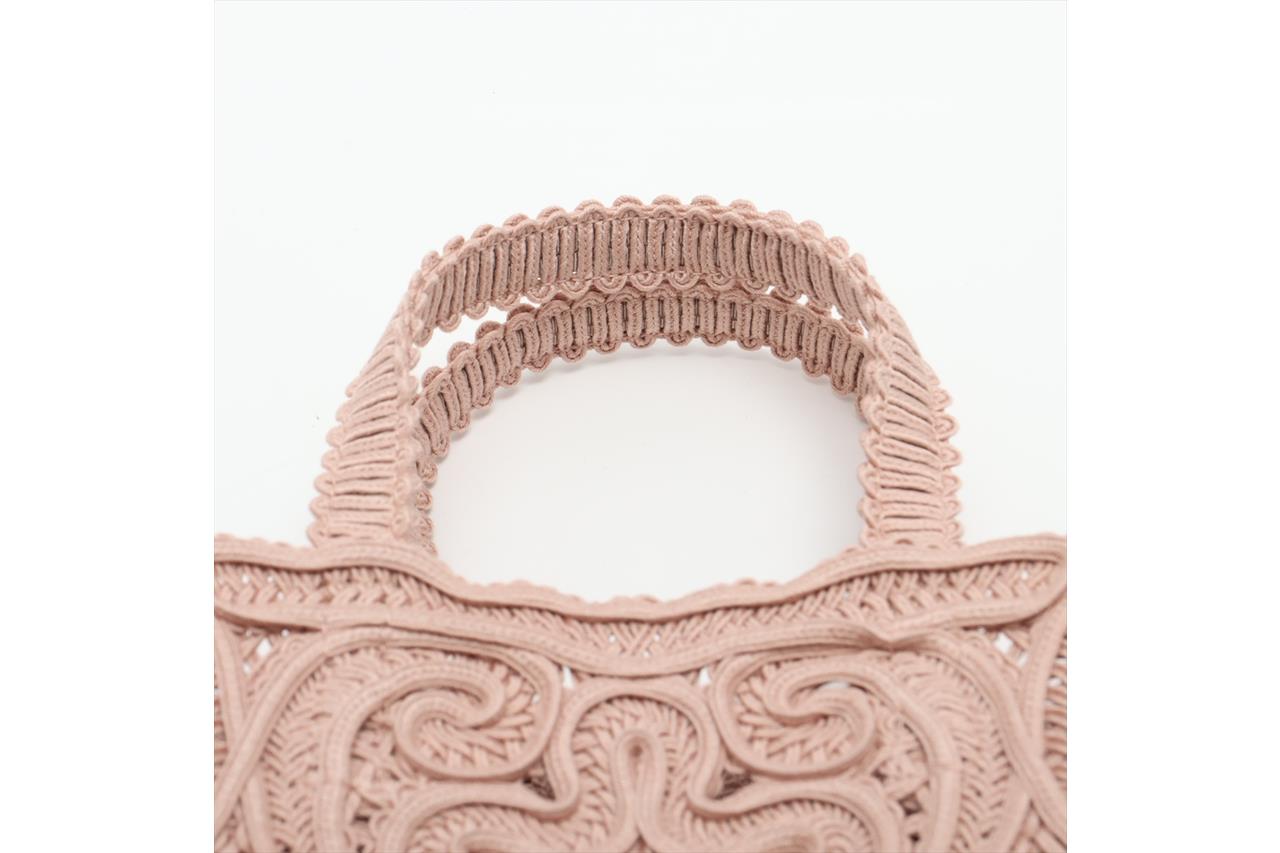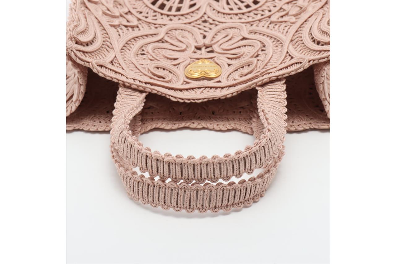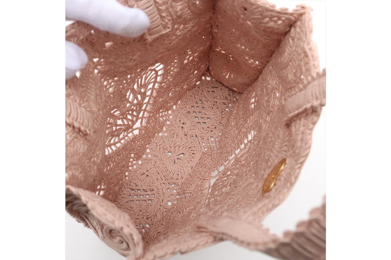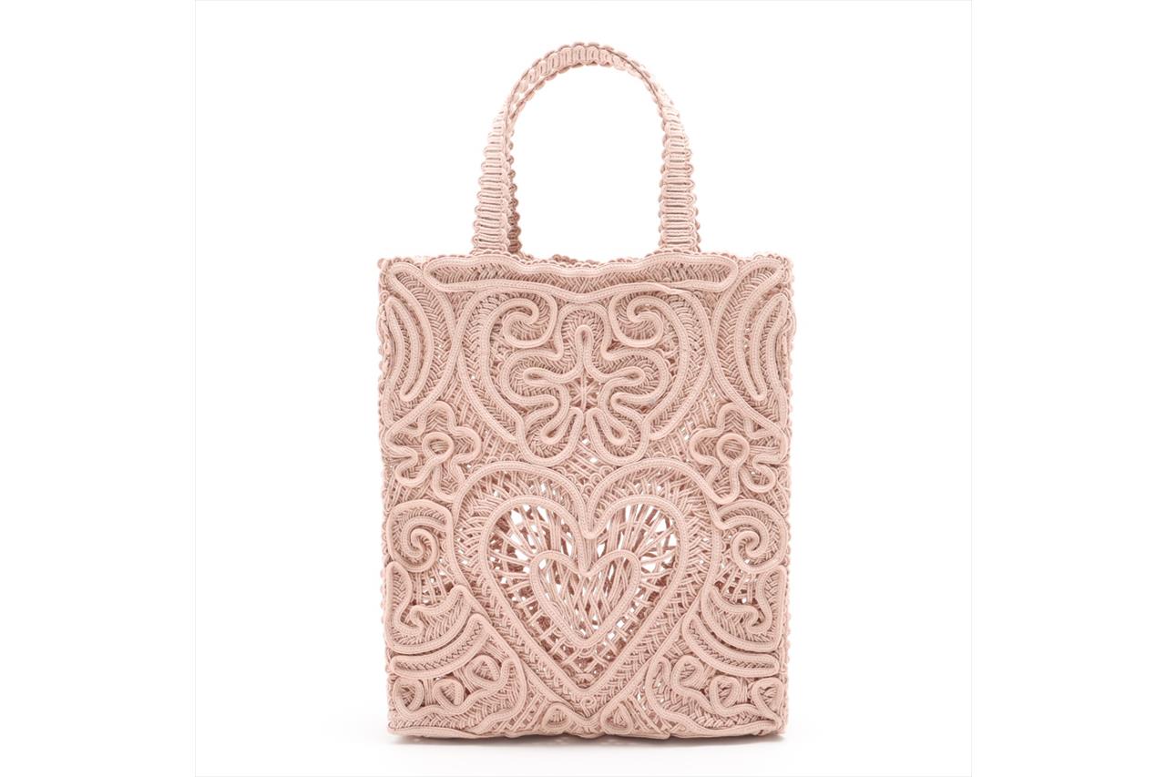 Dolce & Gabbana Beatrice Crocheted Tote Bag. Featuring pink cotton-blended, crochet design exterior, gold-tone logo plate, and open top. Approximate dimensions: 21.5cm (L) x 26cm (H) x 6cm (D), and 11.5cm handle height. Accompanied by Dolce & Gabbana certificate card, booklet, dust bag and box. (Pre-owned)
