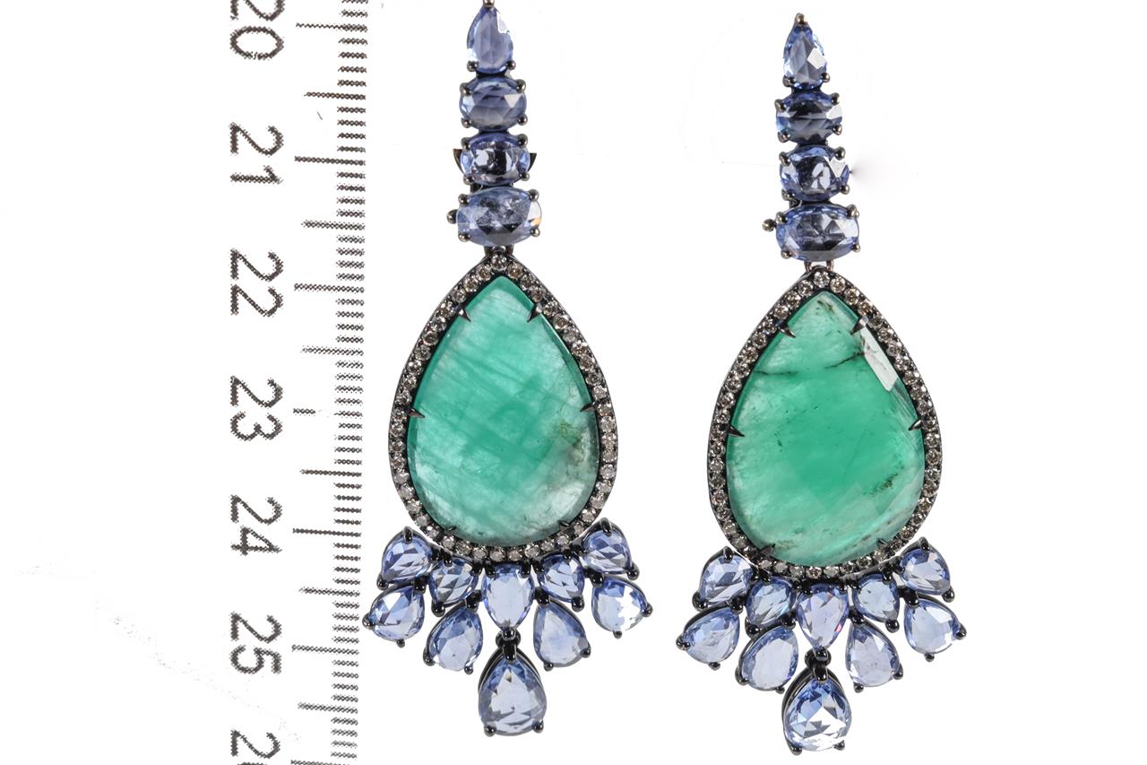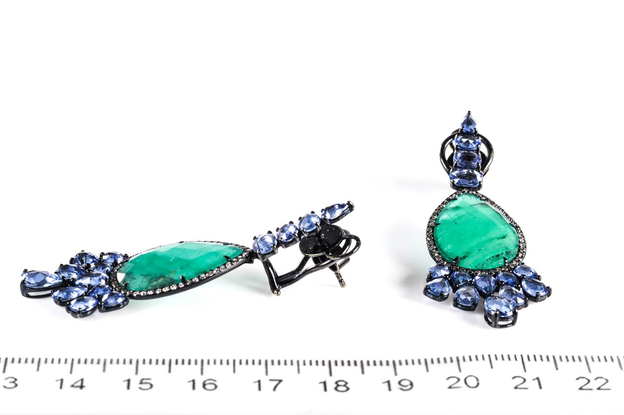 Emerald, Sapphire and Diamond Drop Earrings | First State Auctions