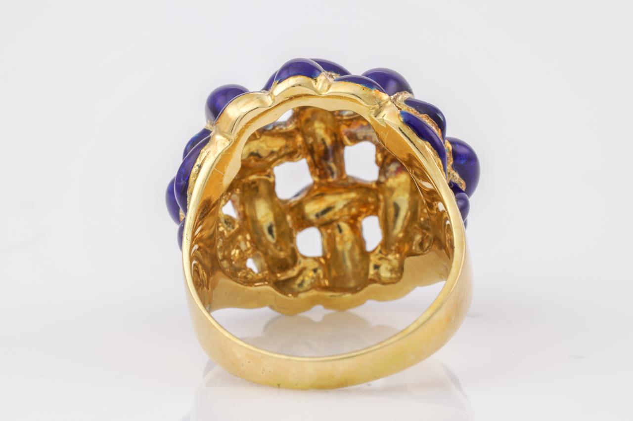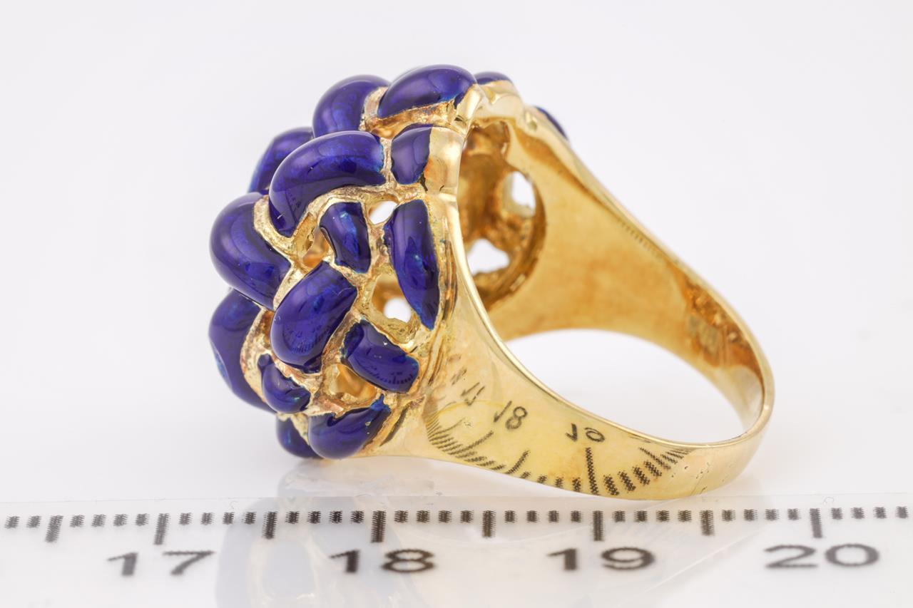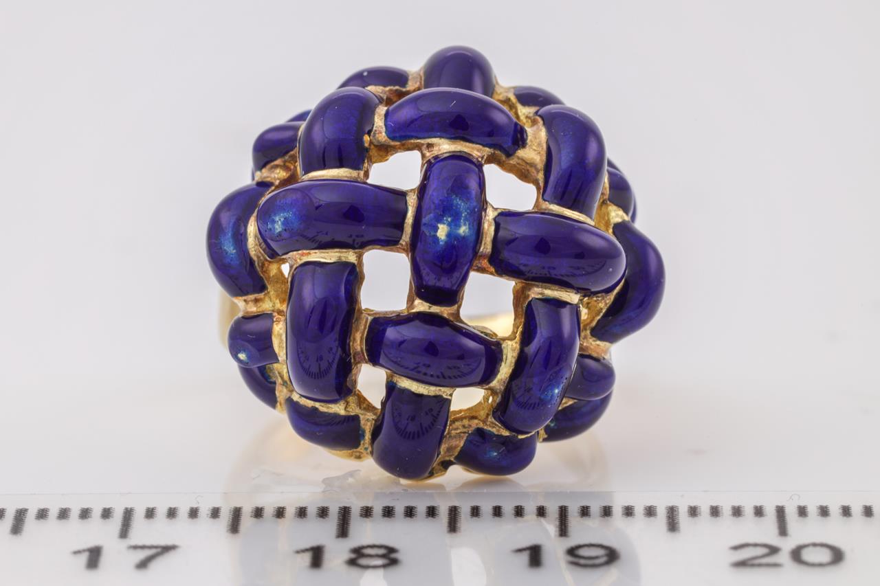 Enamel braided ring with blue Enamel. 18ct yellow gold. (some damage to the enamel). Ring Size M 1/2. Weight 12.5g. (Pre-owned)