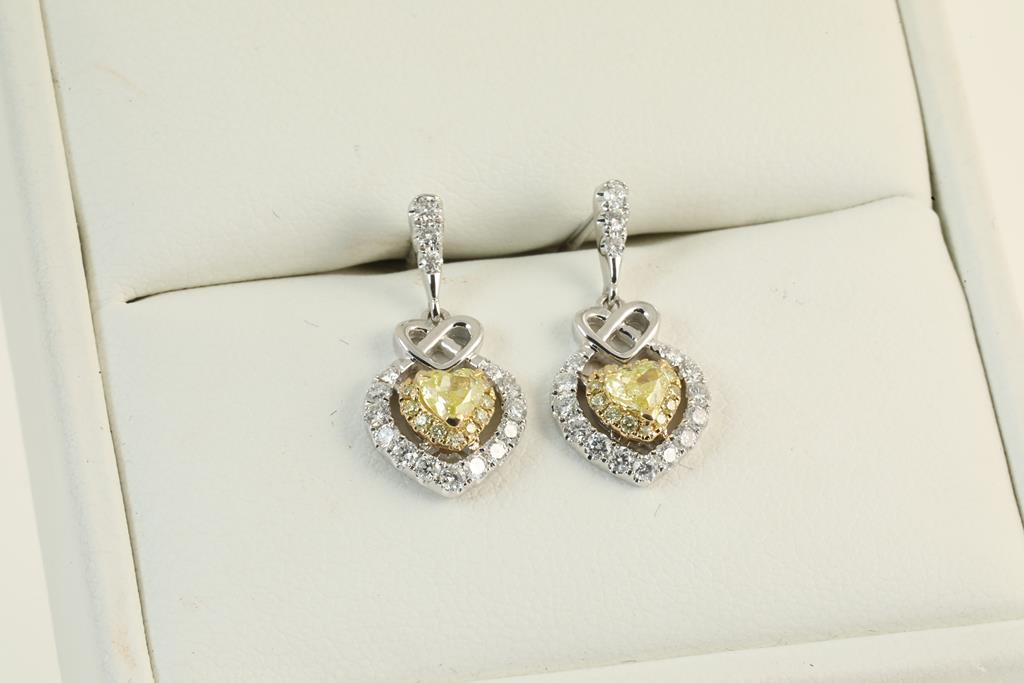 Fancy Yellow and White Diamond Heart Earrings | First State Auctions