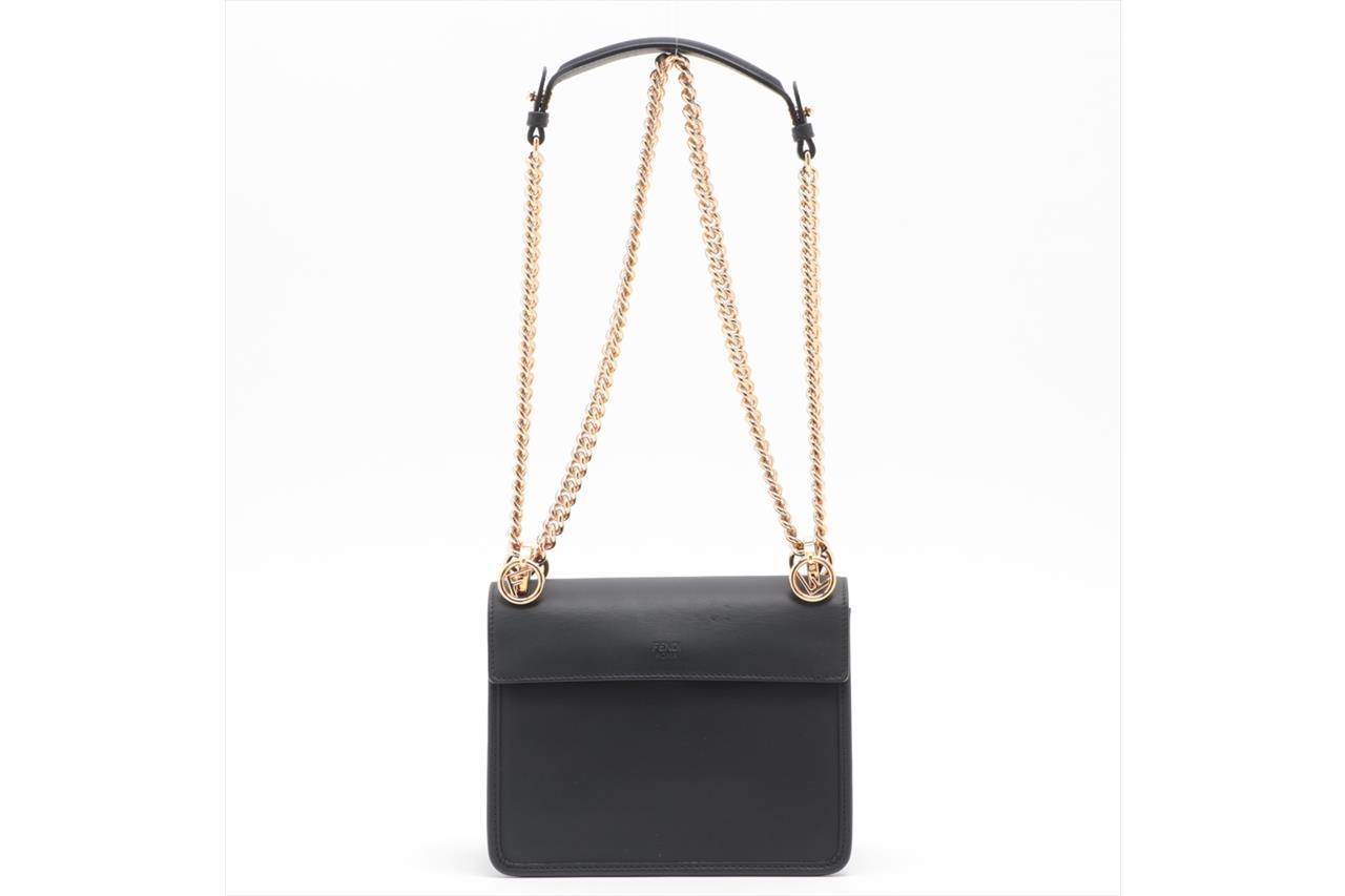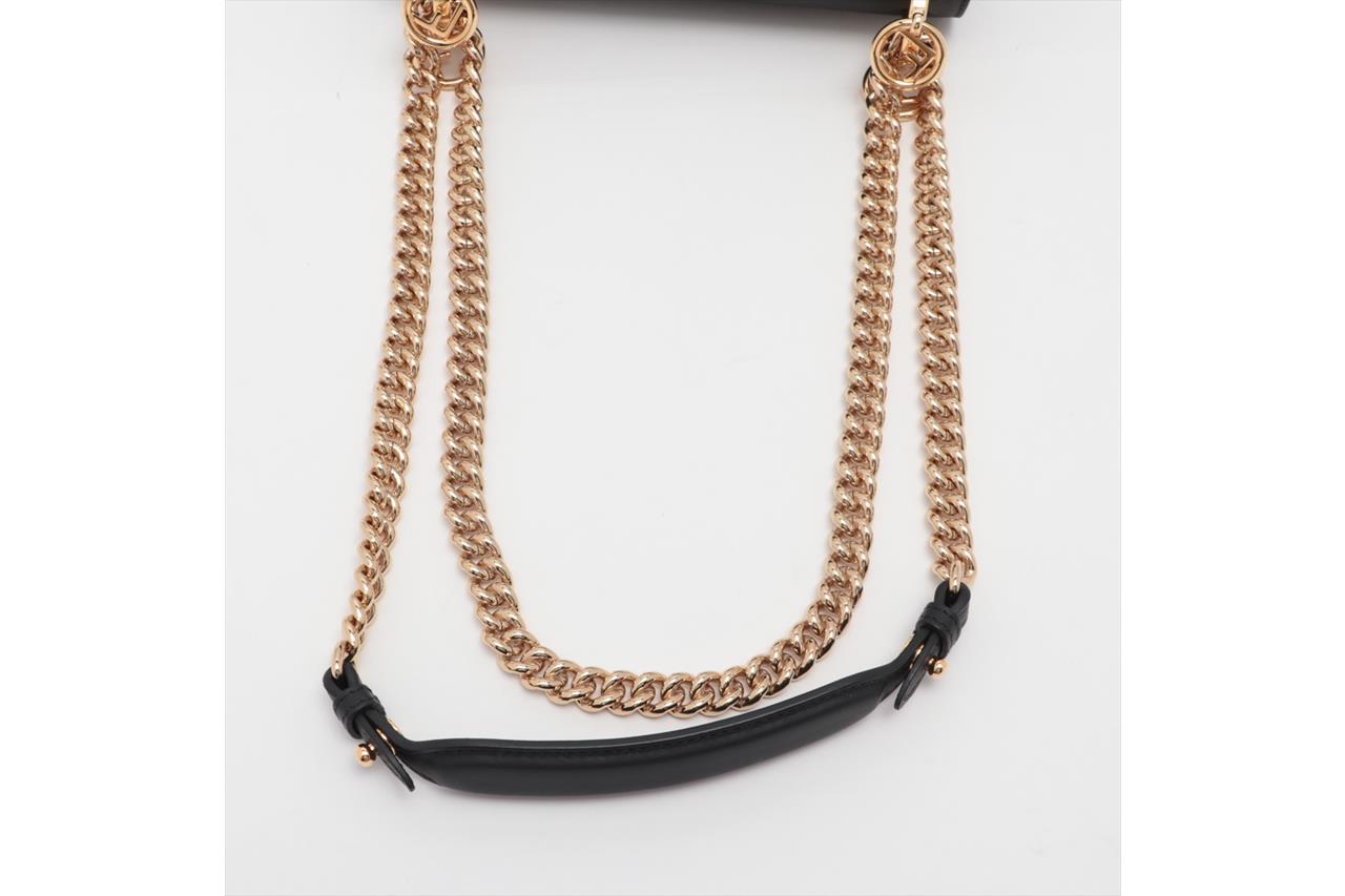 Fendi Kan I F Small Bag in Black Leather. Featuring gold-tone hardware, an internal pocket, magnetic clasp and slide-chain shoulder strap. Approximate dimensions: 19cm (L) x 15.5cm (H) x 8.5cm (D), 52cm shoulder strap. With Entrupy Certificate of Authenticity. Accompanied by Fendi dust bag. (Pre-owned)