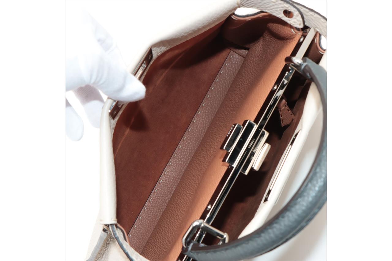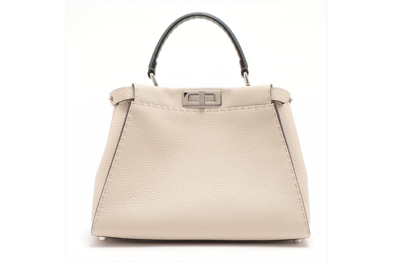 Fendi Peekaboo Medium Selleria 2way Bag. With the classic twist lock on both sides. Featuring beige & black leather and silver-tone hardware. Approximate dimensions: 34cm (L) x 25cm (H) x 13cm (D), and 55cm ajustable and detachable shoulder strap. With Entrupy Certificate of Authenticity. Accompanied by a Fendi dust bag. (Pre-owned)