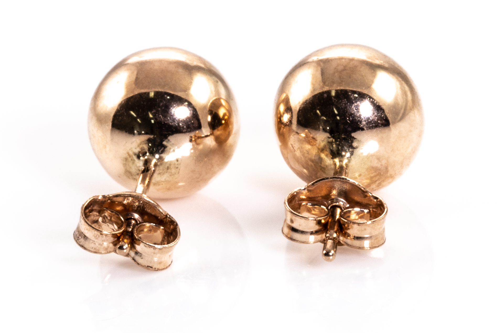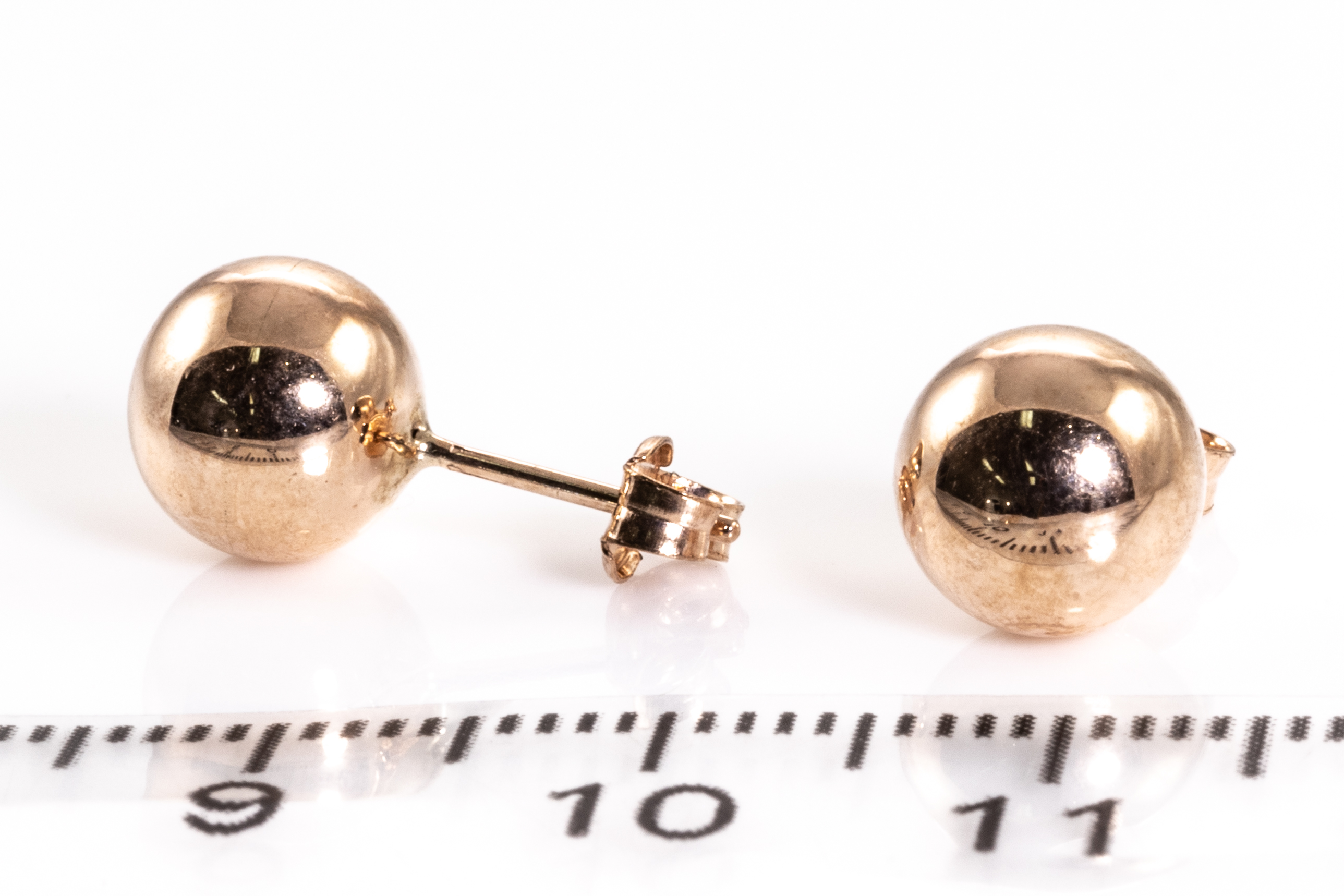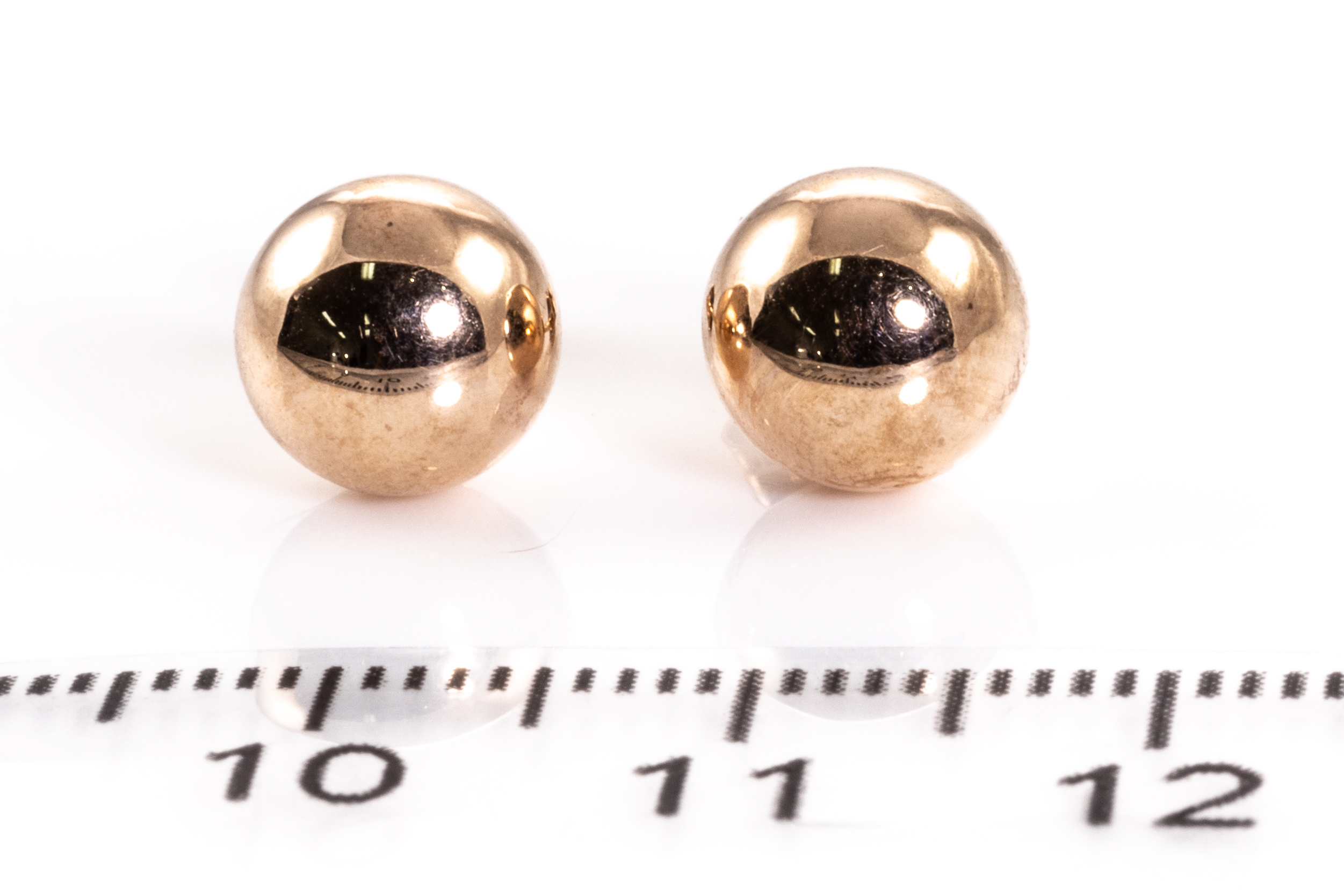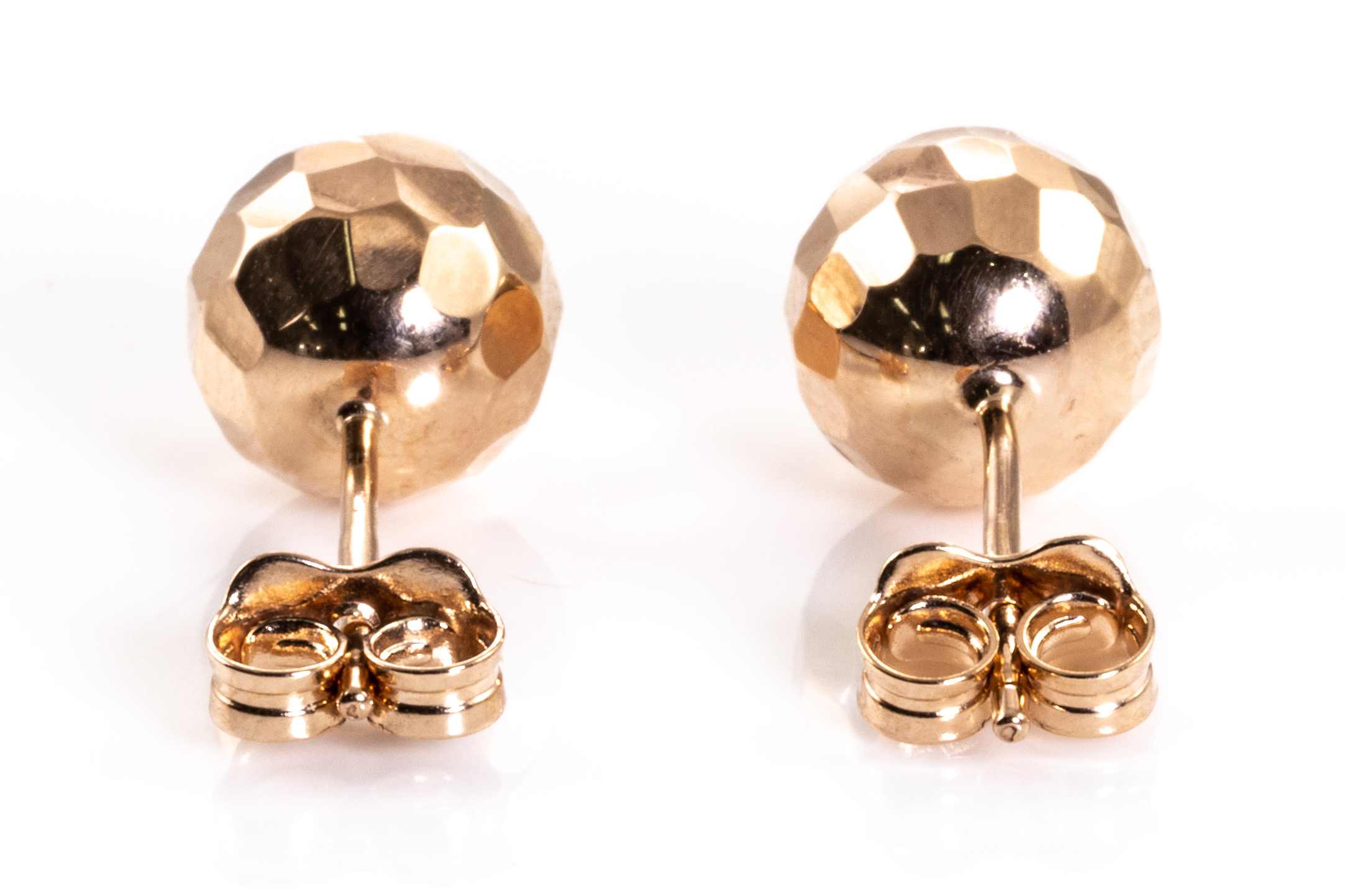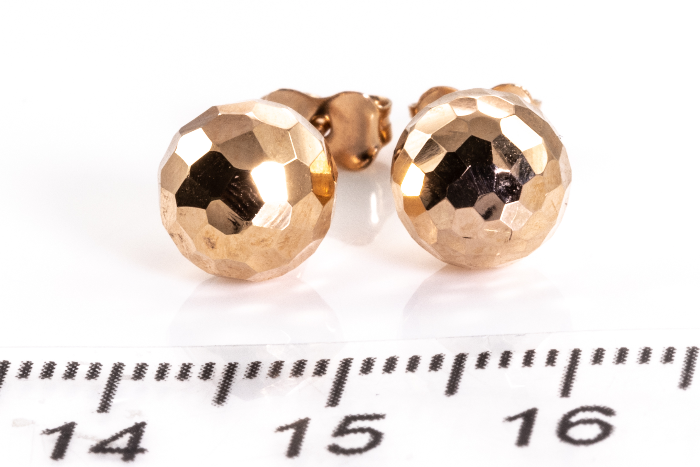 1843 Five pairs of gold studs, four facetted balls and 1 plain ball, 9ct rose gold. Weight 5.2g. (Pre-owned)