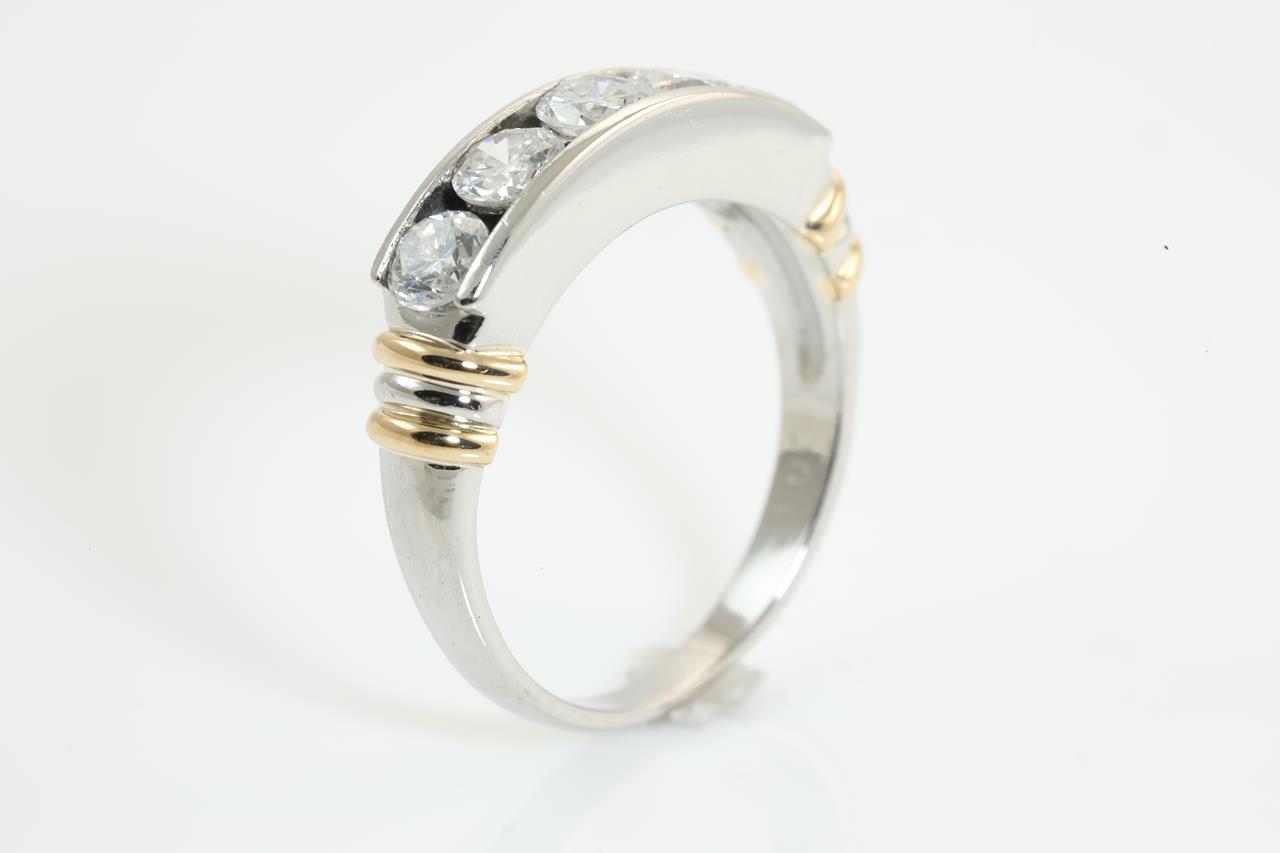 Diamond ring with 5 round Diamonds totalling 1.00cts (Estimated grading: G SI-P1). 18ct yellow gold and platinum. Ring size K. Weight: 5.7g (Pre-owned)