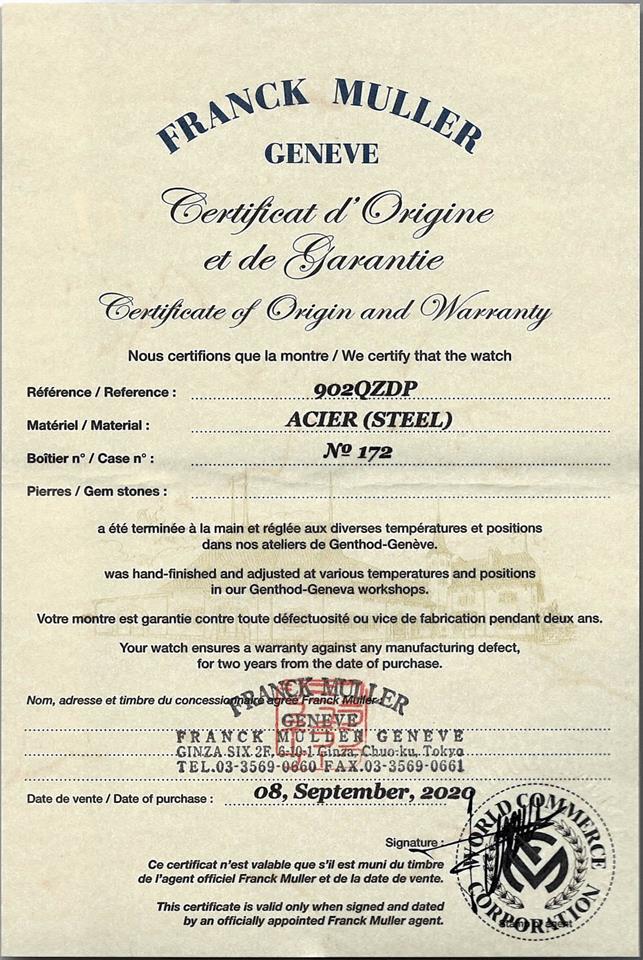 Franck Muller Long Island stainless steel quartz ladies watch. Silver dial, Diamond set bezel and lugs, approximately case diameter: 32mm x 23mm, wrist size: 18.5cm, Swiss made. Ref# 902QZDP. With Franck Muller stainless steel bracelet and clasp. With Certificate of Authenticity, Franck Muller Certificate of Origin and warranty dated 08/09/2020 and Franck Muller box. 3 month FSA warranty. (Pre-owned)