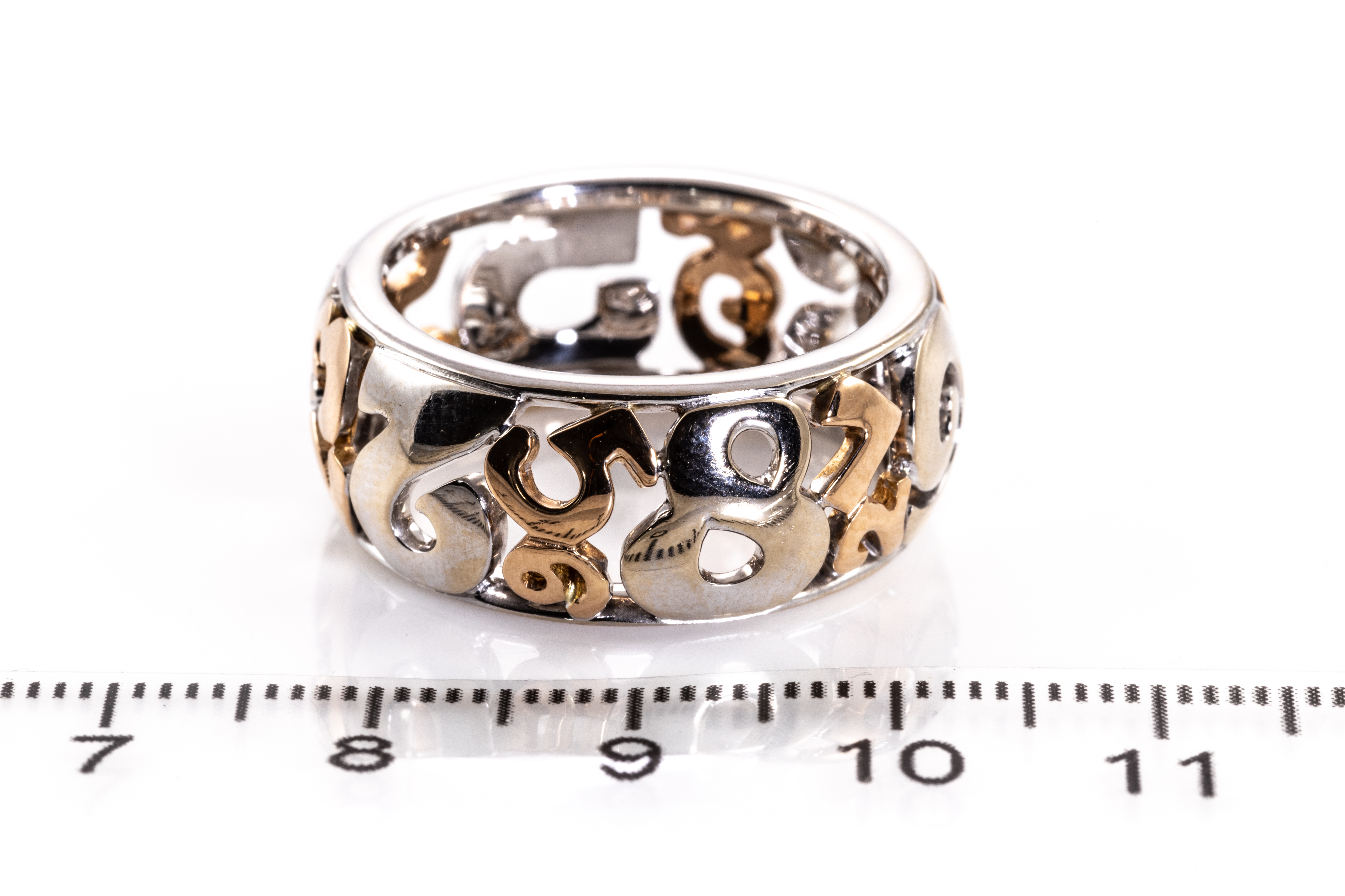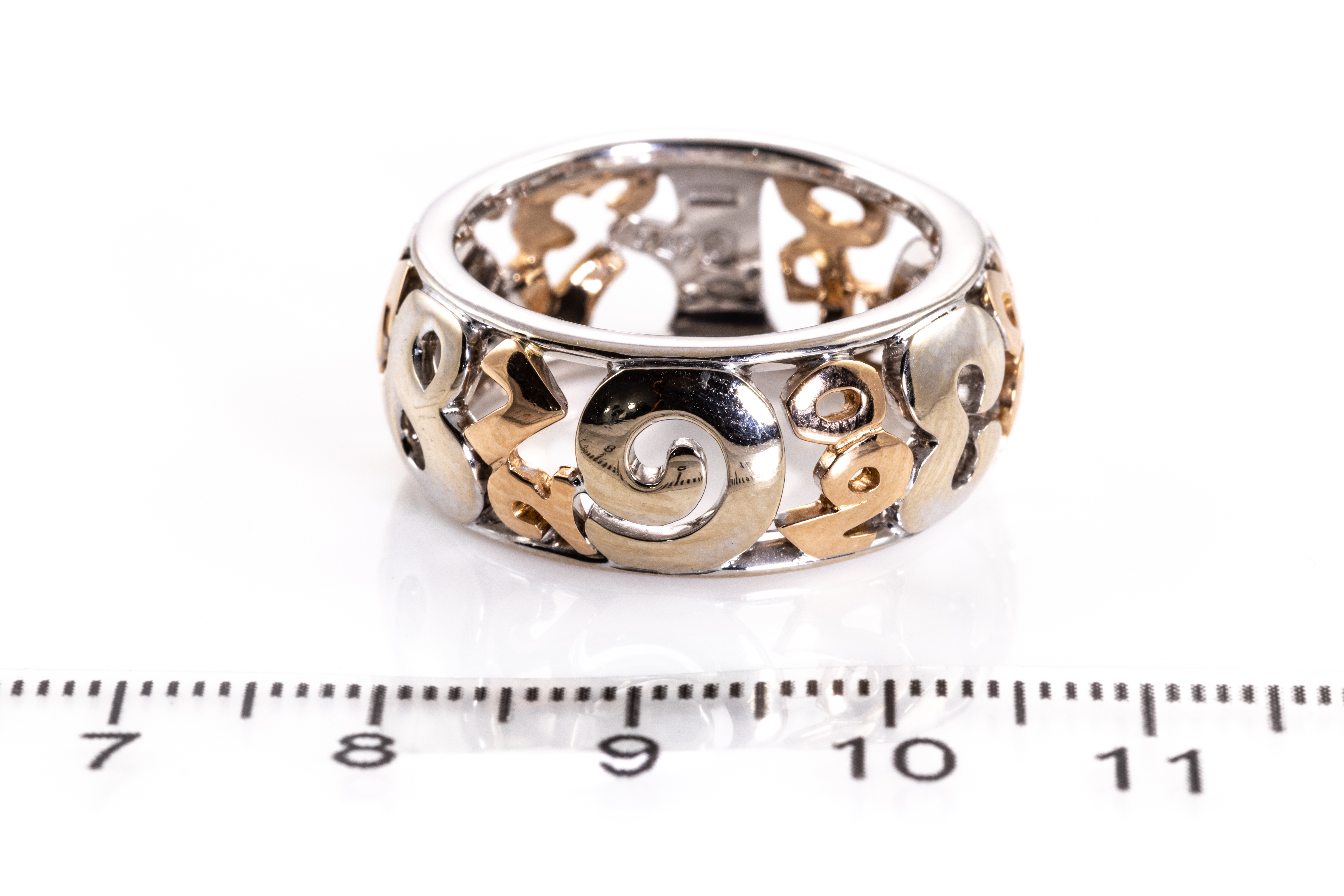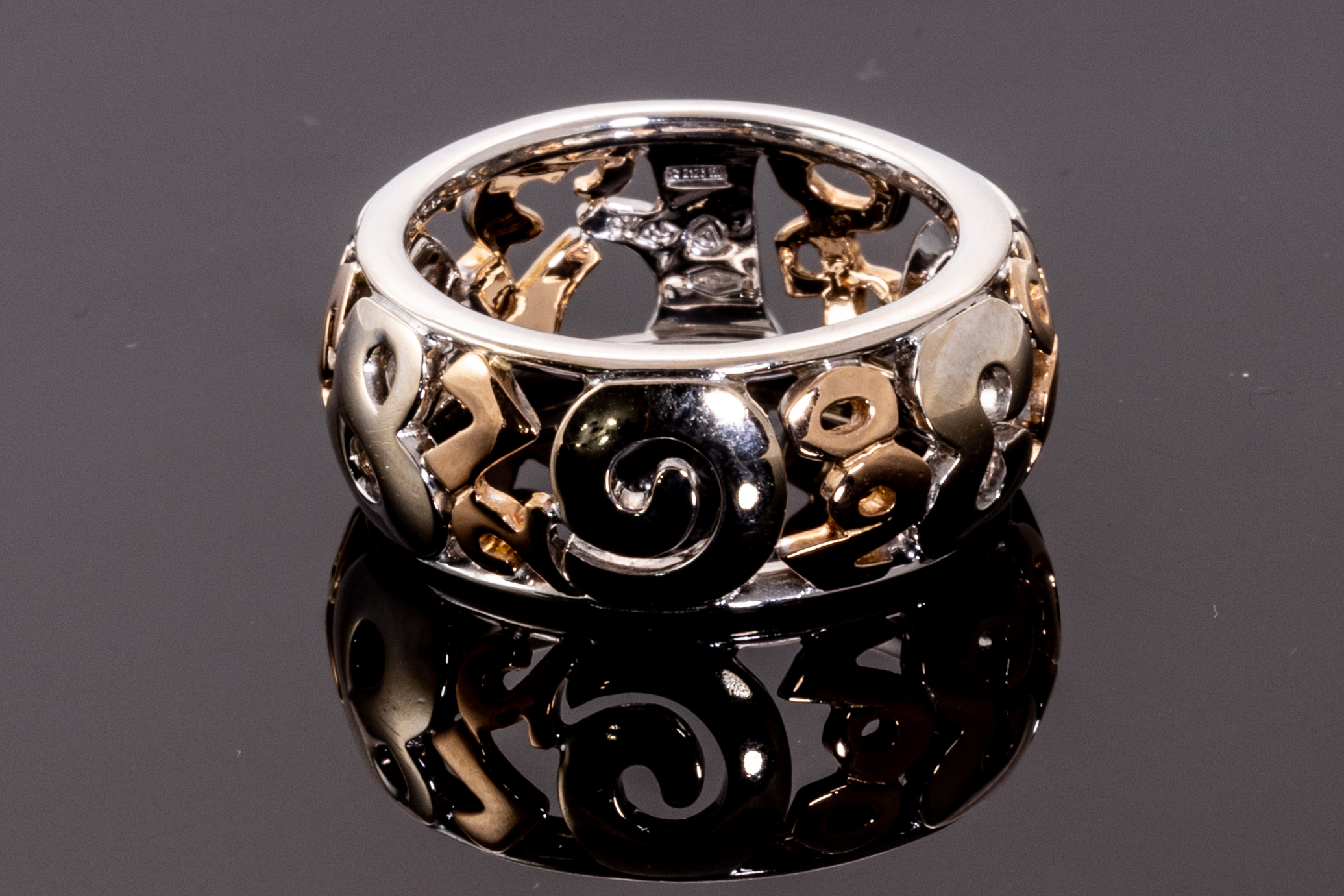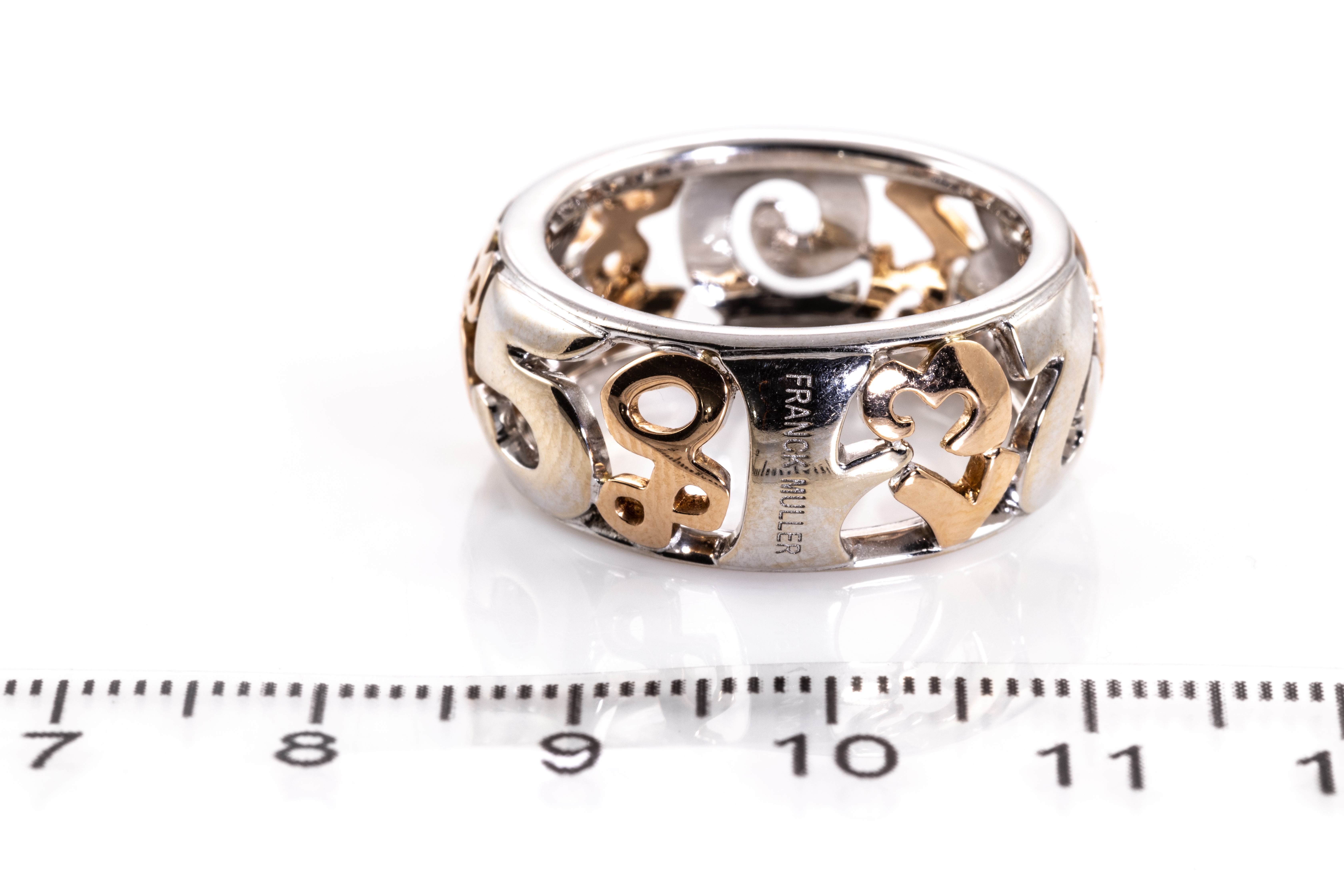 Franck Muller Talisman ring. 18ct white and rose gold. Ring size S1/2. Width: 10mm. Weight: 12.7g. With Franck Muller Certificate card dated 11/05/2016, Franck Muller International Warranty card dated 11/05/2016 and Franck Muller box. (Pre-owned)