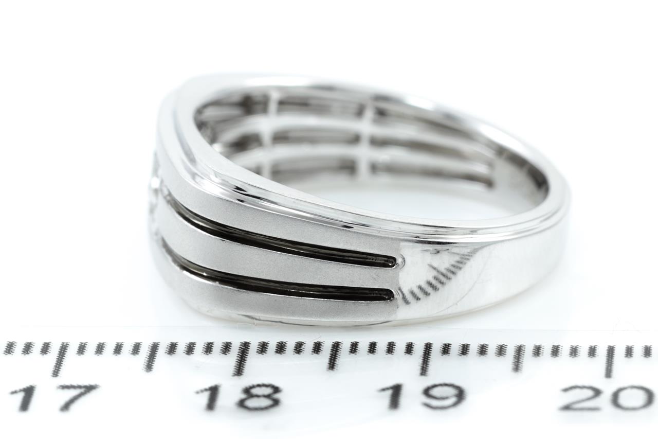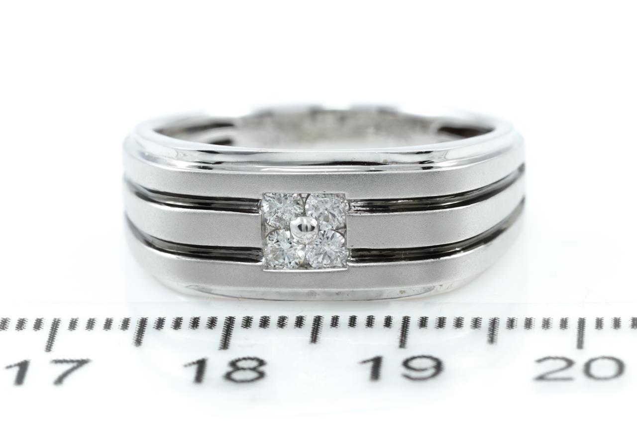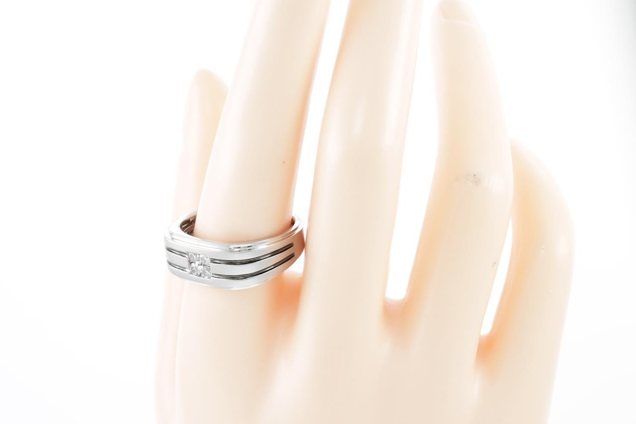 Gent Diamond Ring with four round cut Diamonds totalling approximately 0.25cts (Estimated grading H SI-P1). 14ct white gold. Ring size T1/2. Weight 5.8g. (As New)
