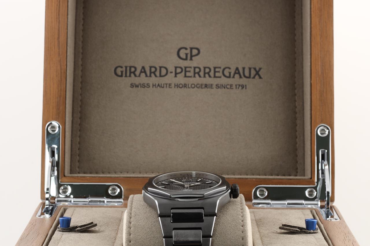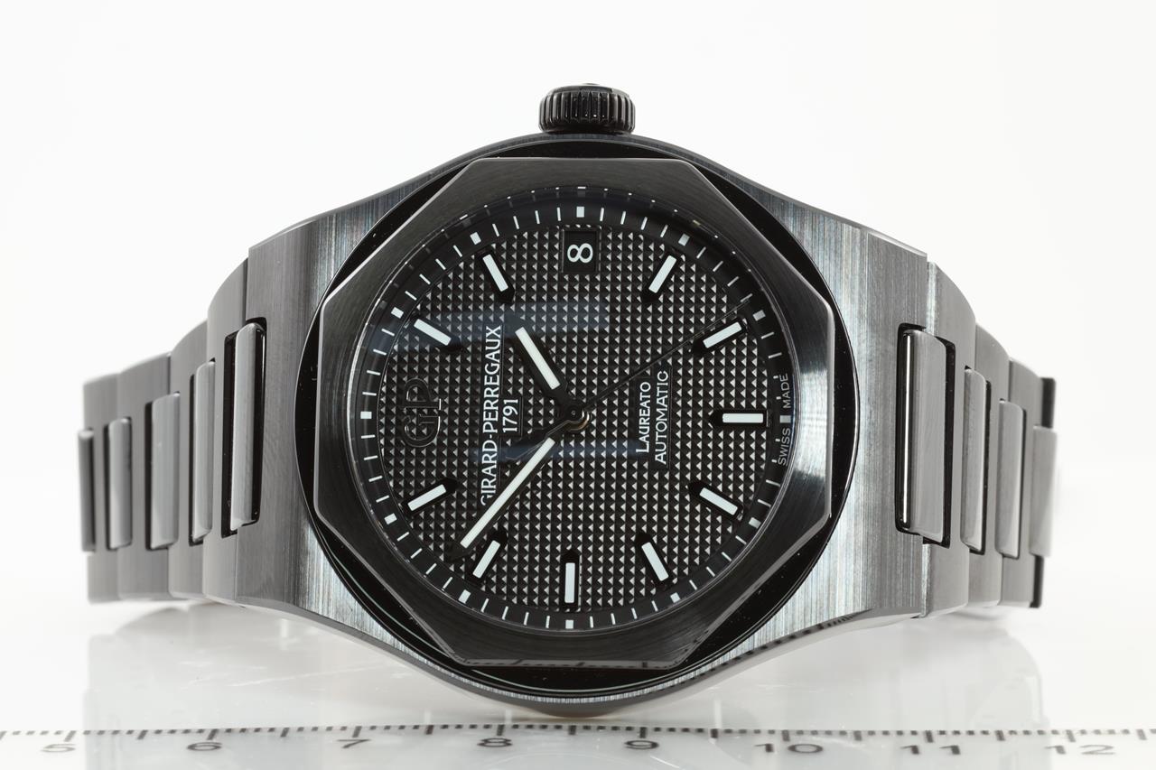 Girard Perregaux Laureato ceramic automatic mens watch. Black dial, date, case diameter: 42mm, Swiss made. Ref# 81010-32-631-32A. With Girard Perregaux bracelet and clasp. With Girard Perregaux international warranty card and instruction manual inside box. 2 year manufacturer warranty from 24/11/20. (New)