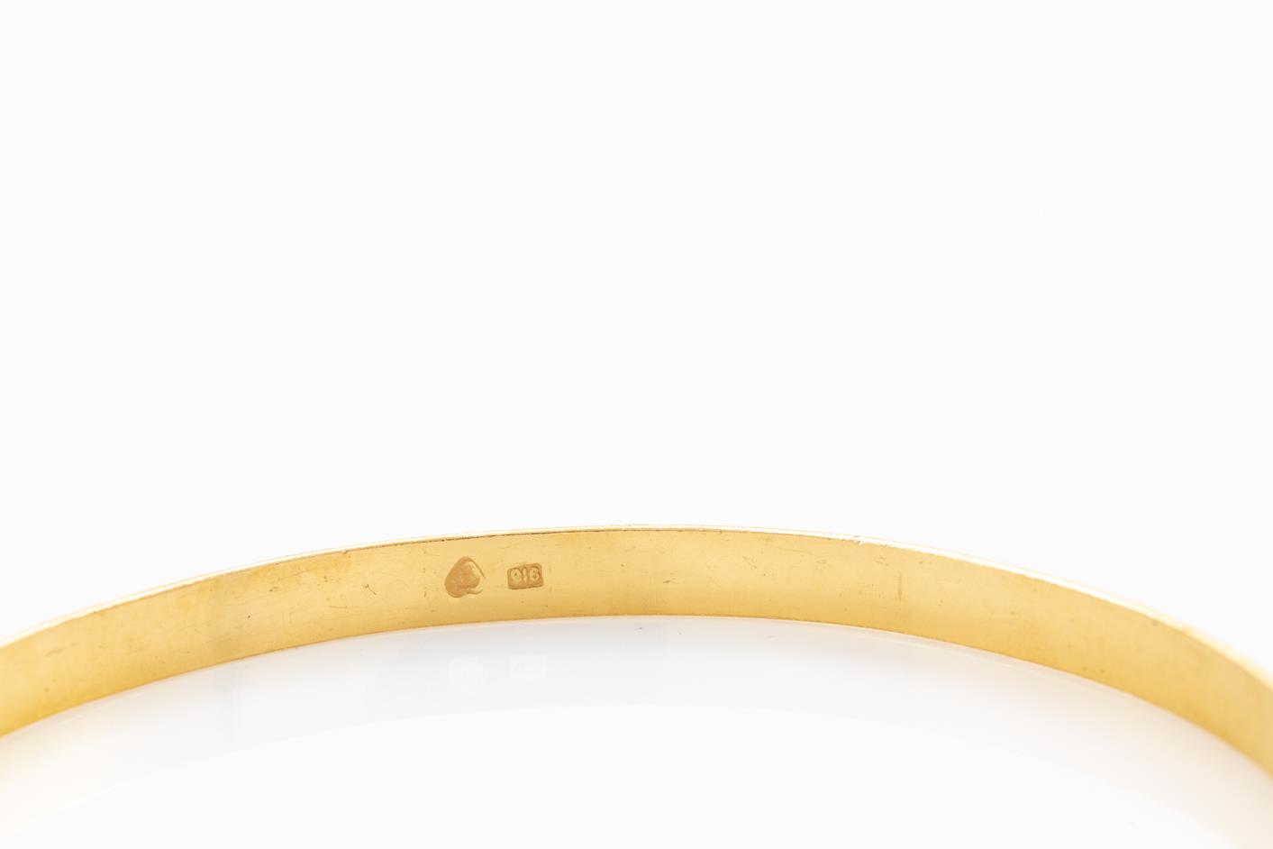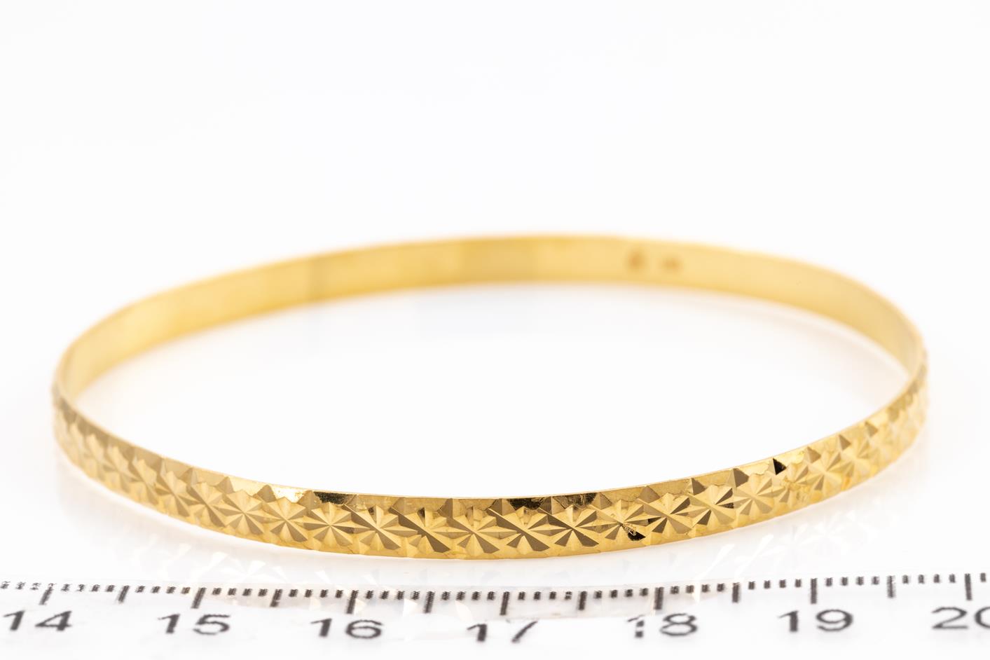 22ct gold bangle. Diameter 6.2cm. Circumference 18cm. Weight 11.4g. (Pre-owned)