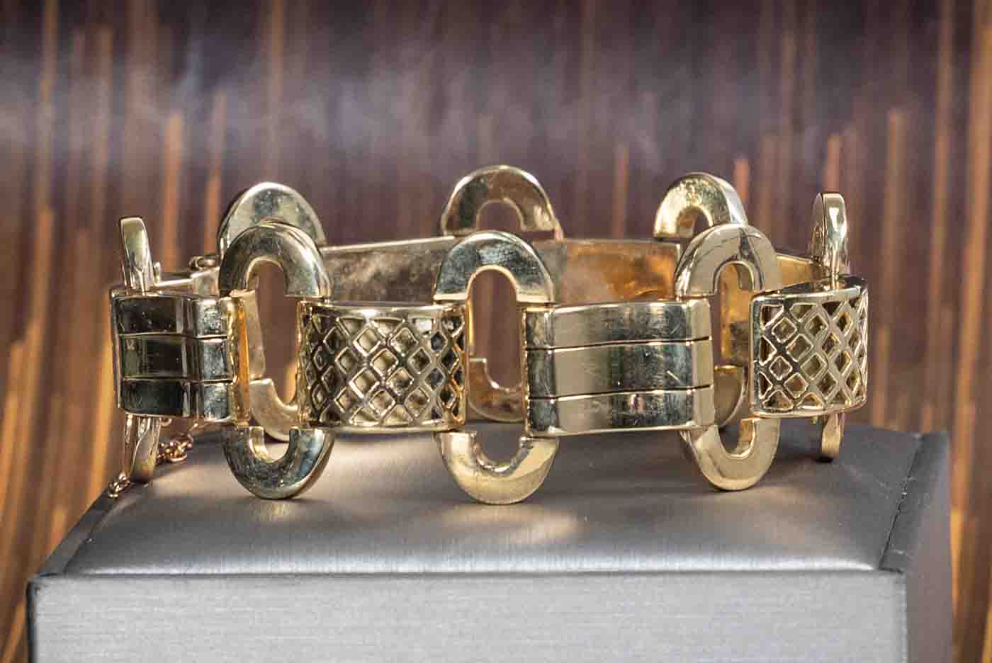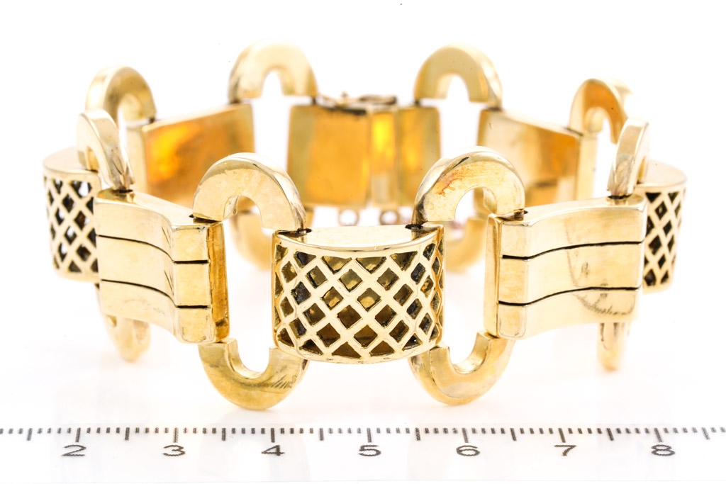 Gold Bracelet. 18ct yellow gold with safety chain. Length: 20cm. Weight 58.8g. (Pre-owned)