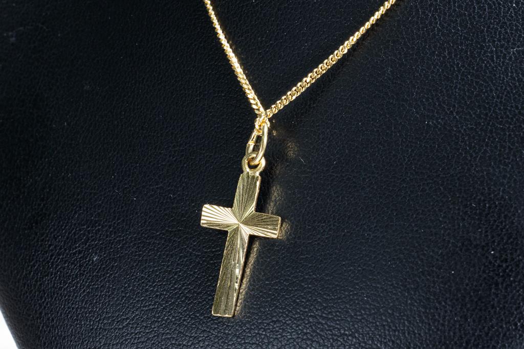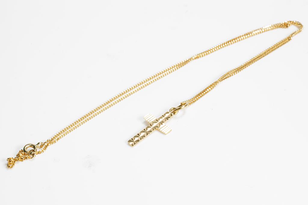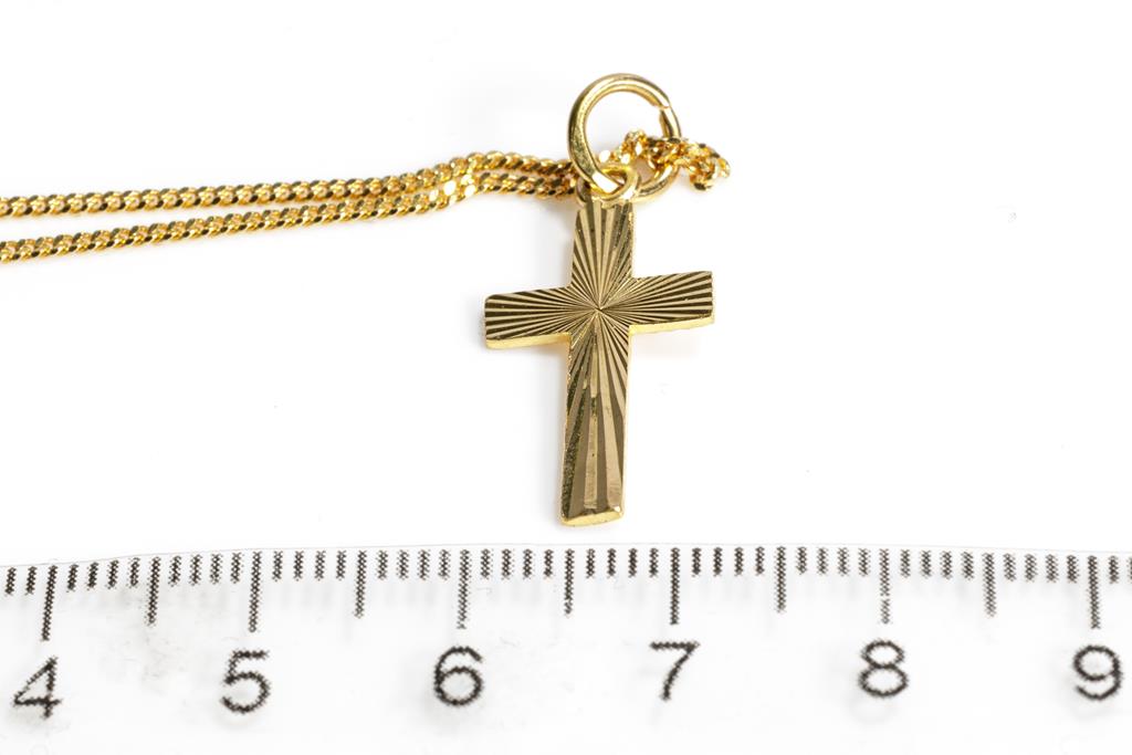 Gold Cross Pendant on Chain, 22ct yellow gold Cross on 18ct yellow gold chain. Length 44cm. Combined weight 5.3g. (Pre-owned)