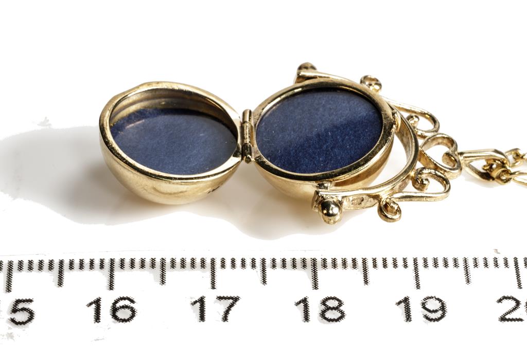 Gold Locket Pendant on Chain, swivel ball locket pendant, 9ct yellow gold with 9ct yellow gold 59cm chain. Combined weight 10.6g. (Pre-owned)