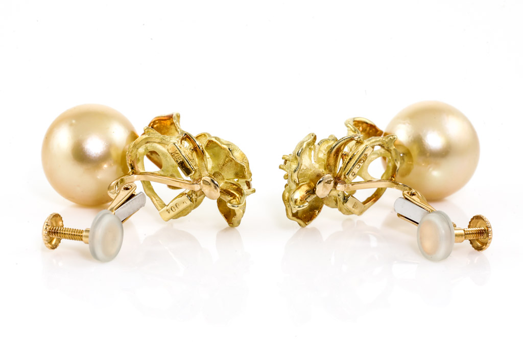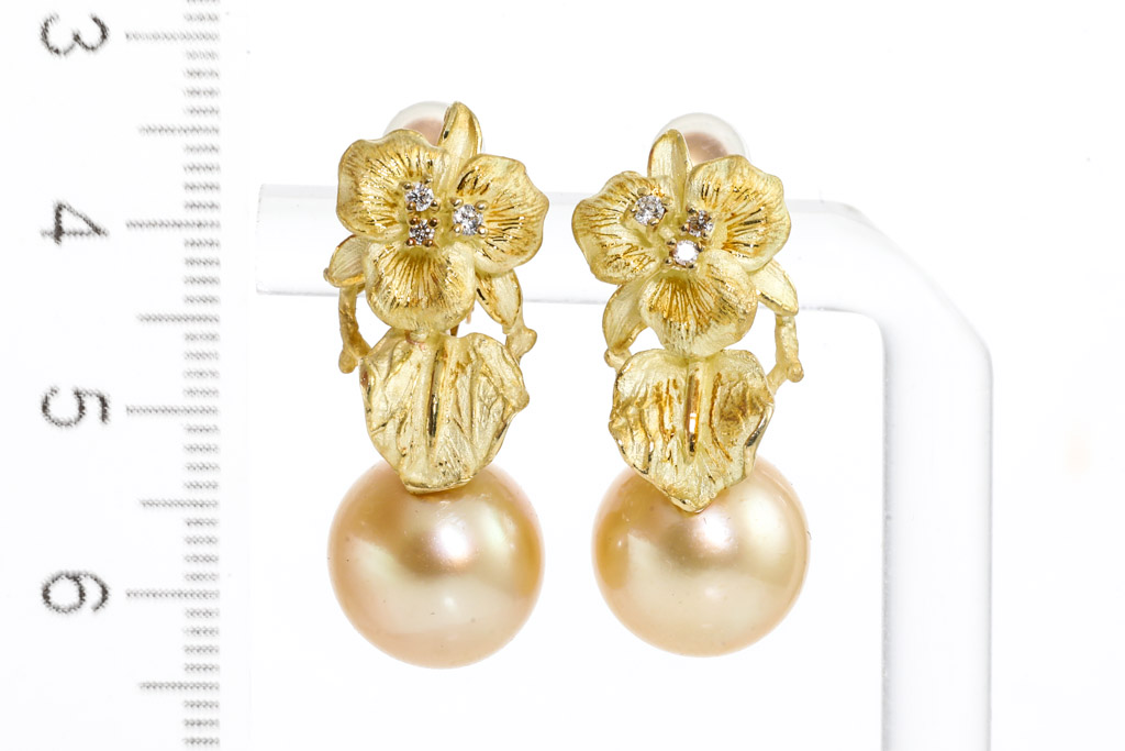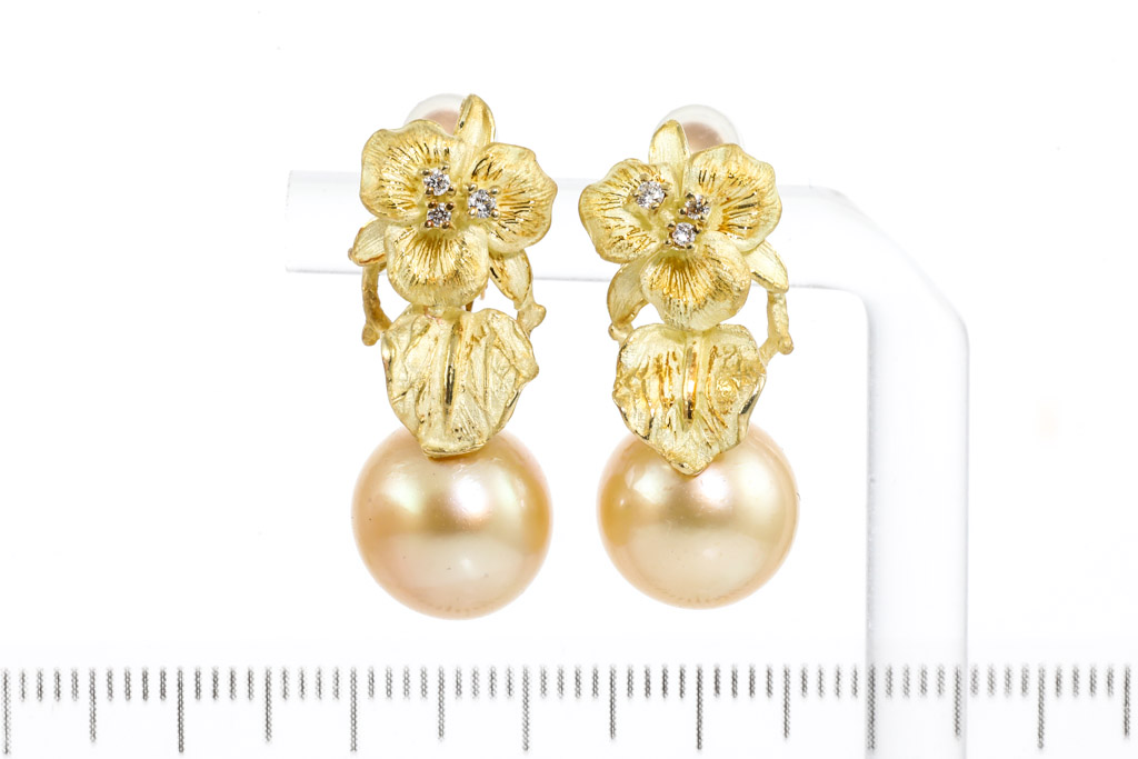 Golden South Sea Pearl and Diamond Earrings