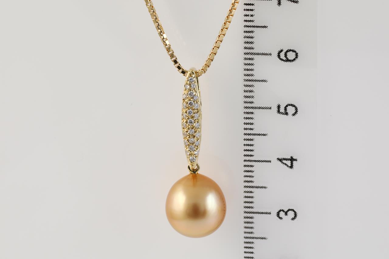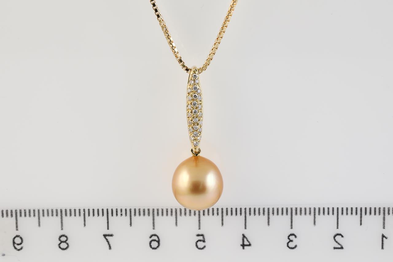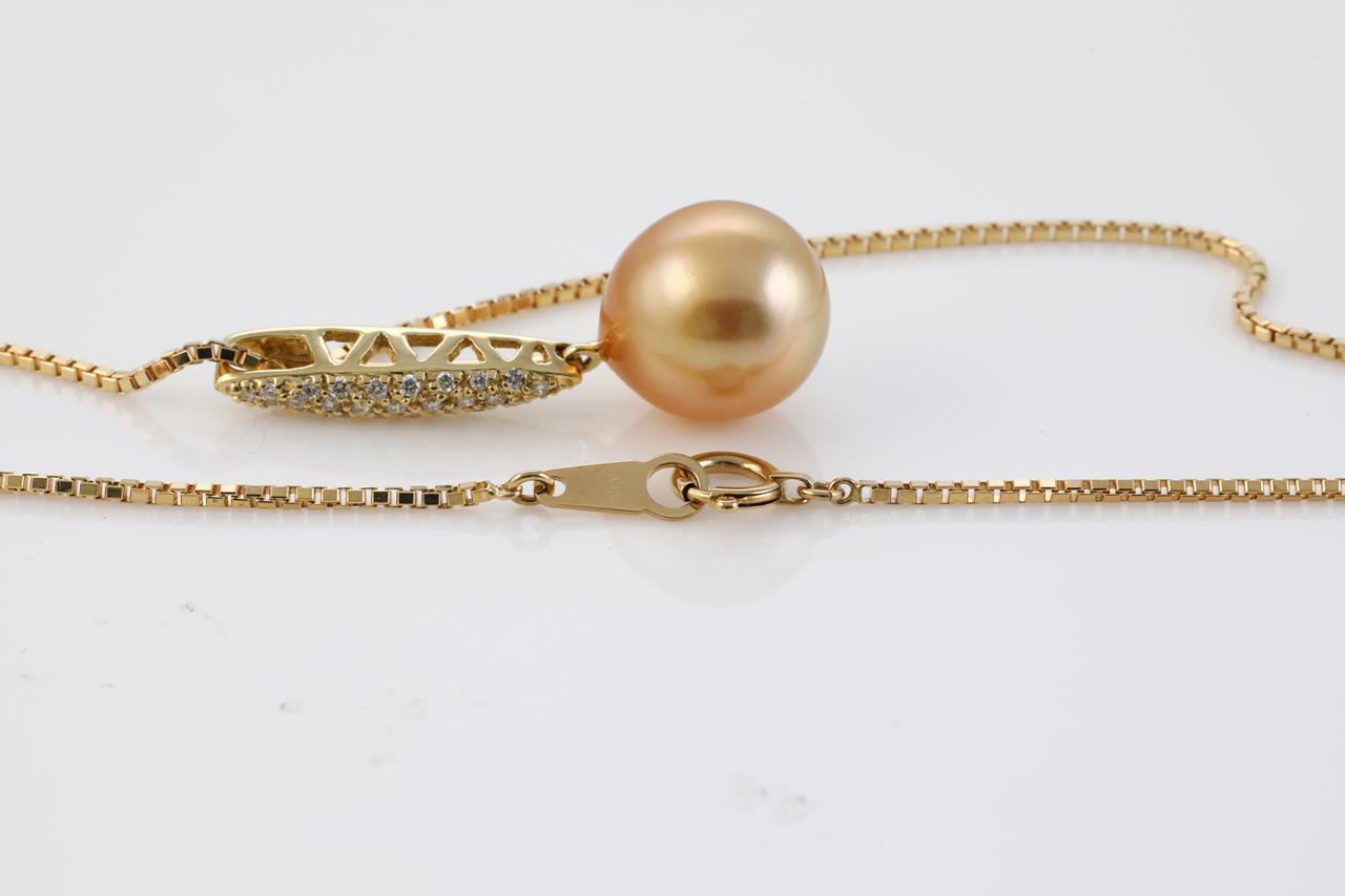 Pearl and Diamond pendant with Golden South Sea Pearl of 11.0mm and Diamonds totalling 0.15cts. 18ct yellow gold with 18ct yelow gold 44cm chain. Weight: 7.7g (Pre-owned)