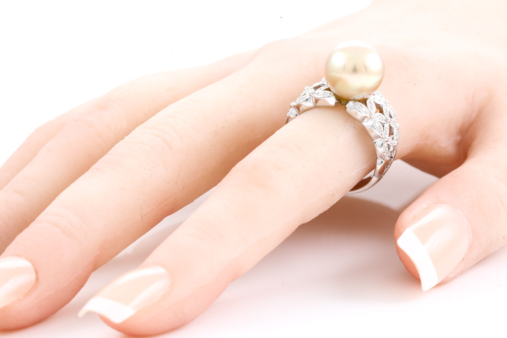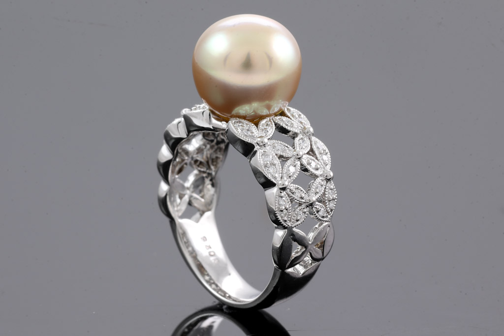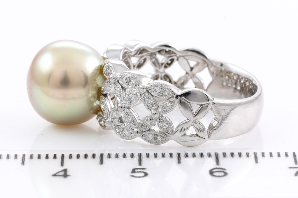 Golden South Sea Pearl and Diamond Ring