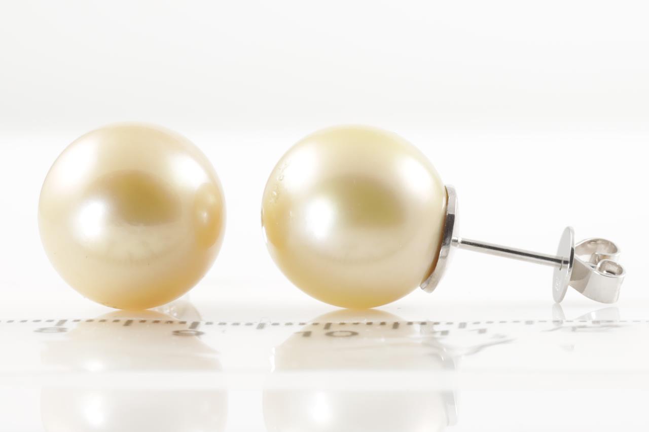 Pearl stud earrings with Golden South Sea Pearls of 14.2mm. 18ct white gold. Weight: 10.9g (Pre-owned)