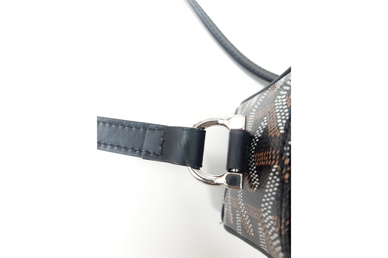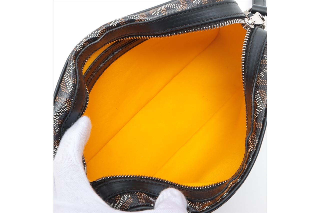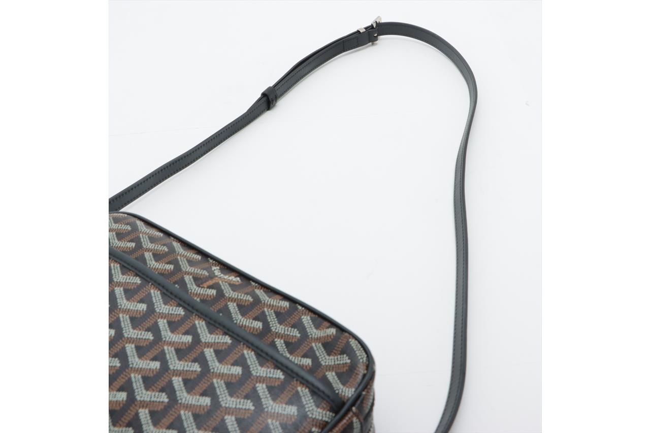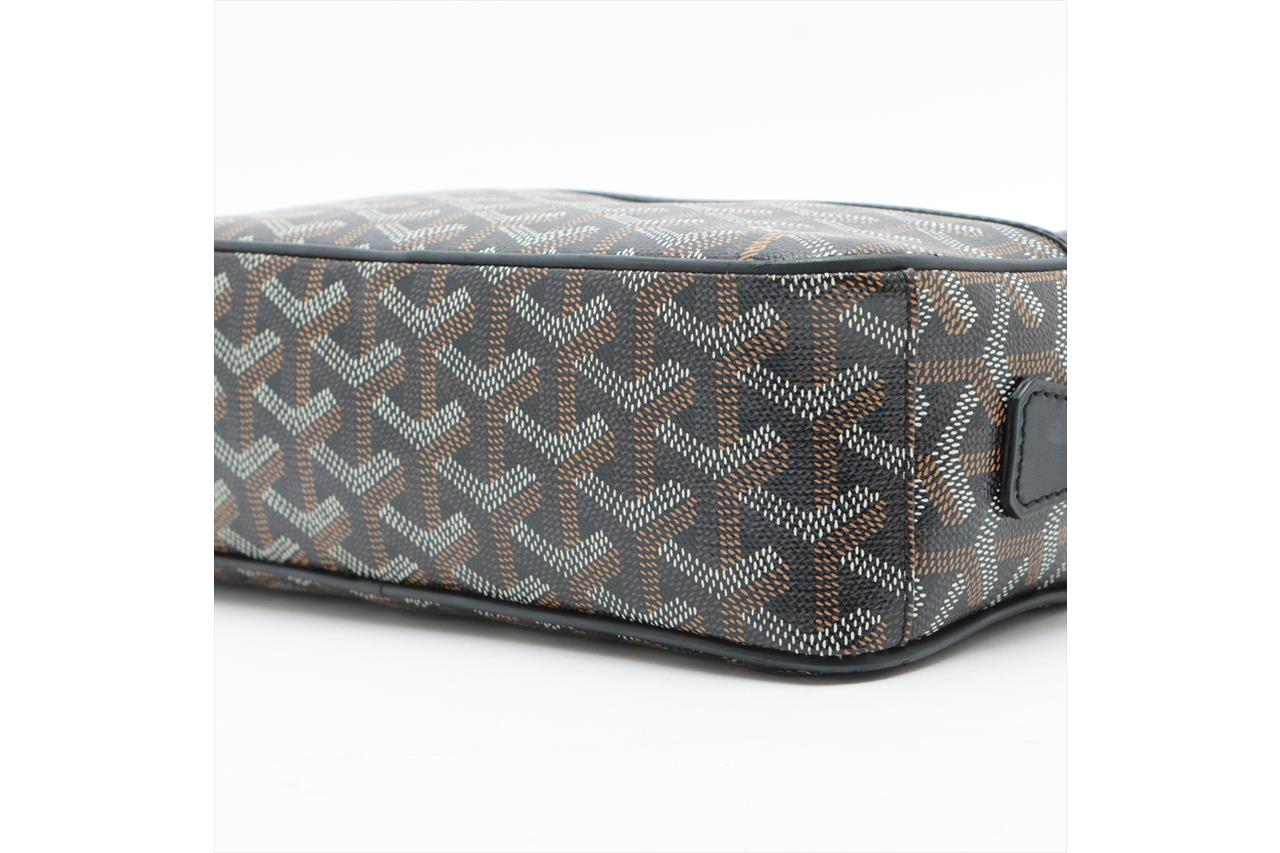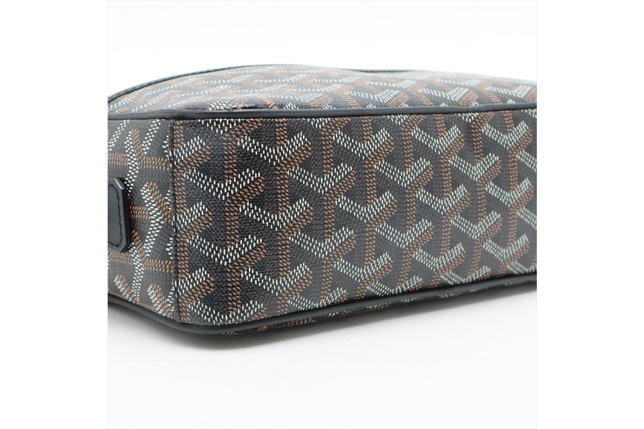 Goyard Cap-Vert PM Bag. Featuring Goyardine Canvas & Black Cervon Calfskin exterior, one flat back pocket, silver-tone hardware, and yellow fabric lining. Approximate dimensions: 23cm (L) x 13cm (H) x 7cm (D), and 48cm adjustable shoulder strap drop. Accompanied by Goyard dust bag. With Entrupy Certificate of Authenticity. (Pre-owned)