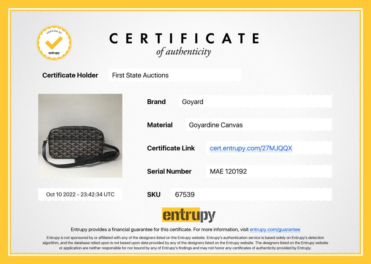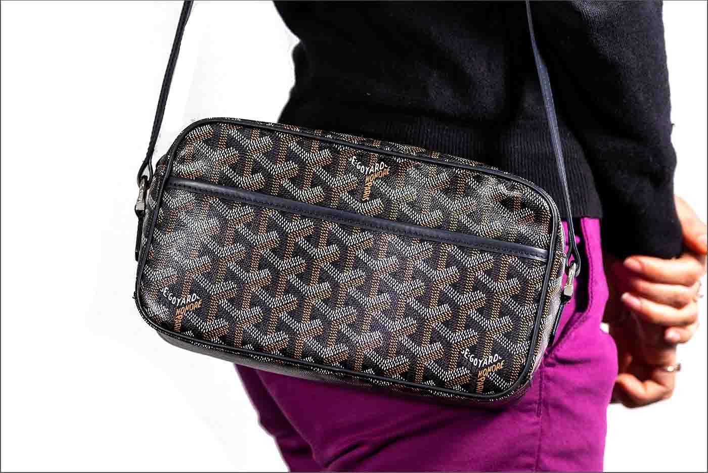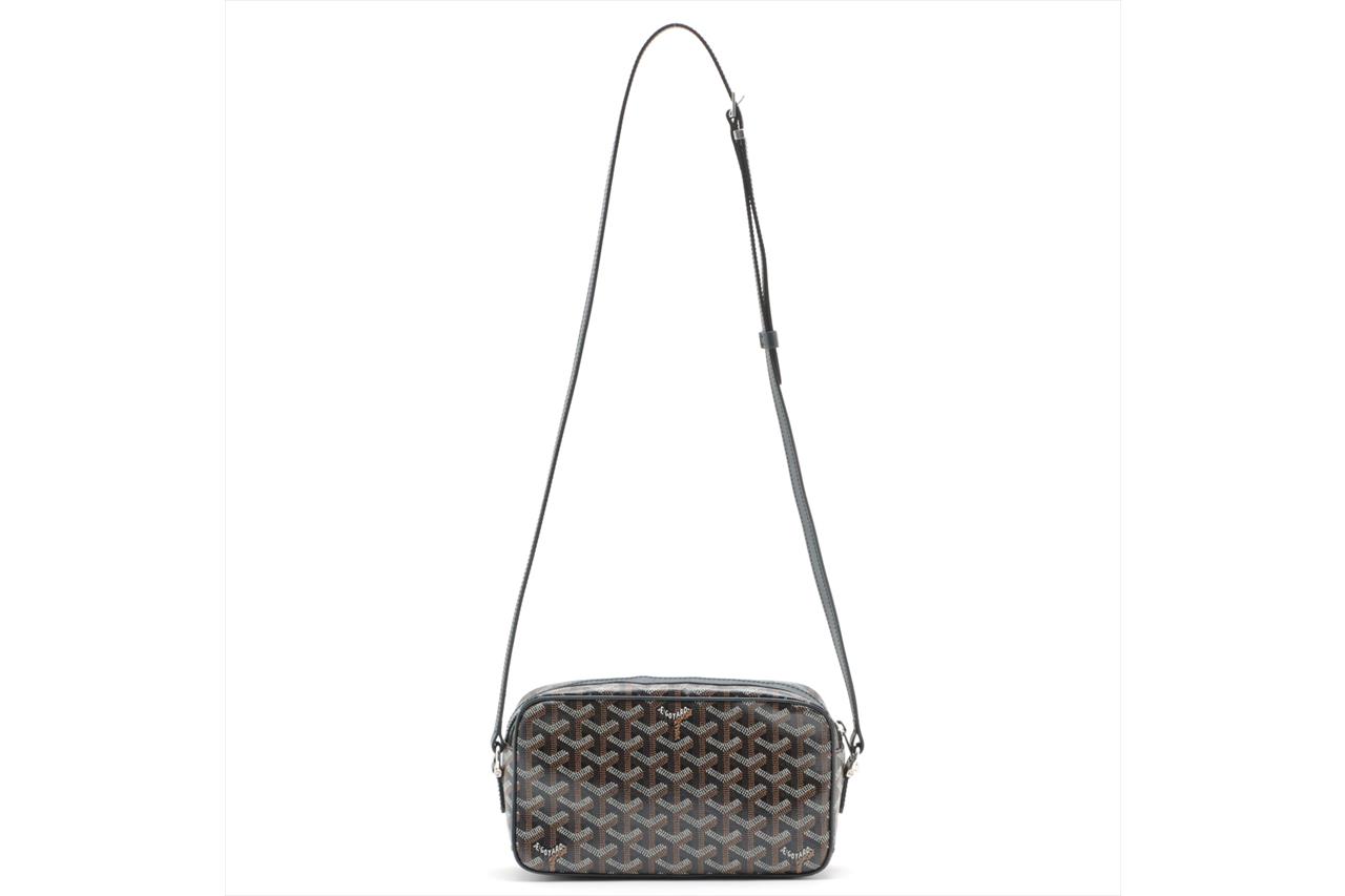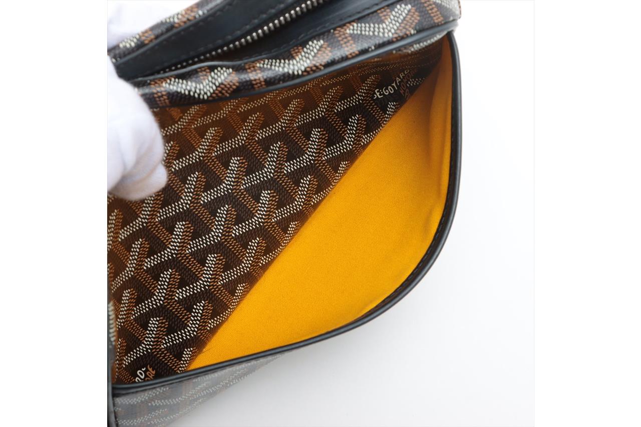 Goyard Cap-Vert PM Bag. Featuring Goyardine Canvas & Black Cervon Calfskin exterior, one flat back pocket, silver-tone hardware, and yellow fabric lining. Approximate dimensions: 23cm (L) x 13cm (H) x 7cm (D), and 48cm adjustable shoulder strap drop. Accompanied by Goyard dust bag. With Entrupy Certificate of Authenticity. (Pre-owned)