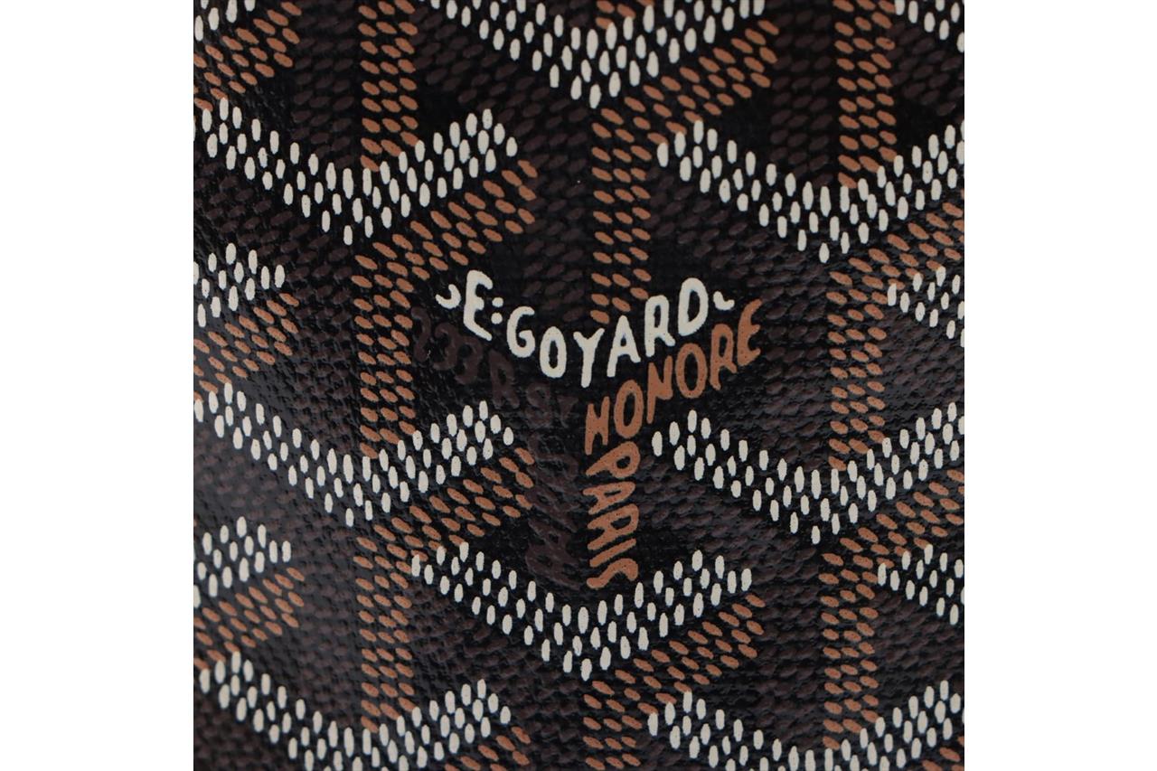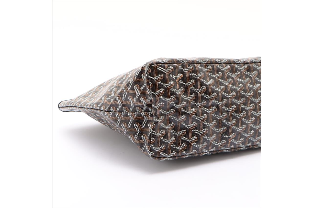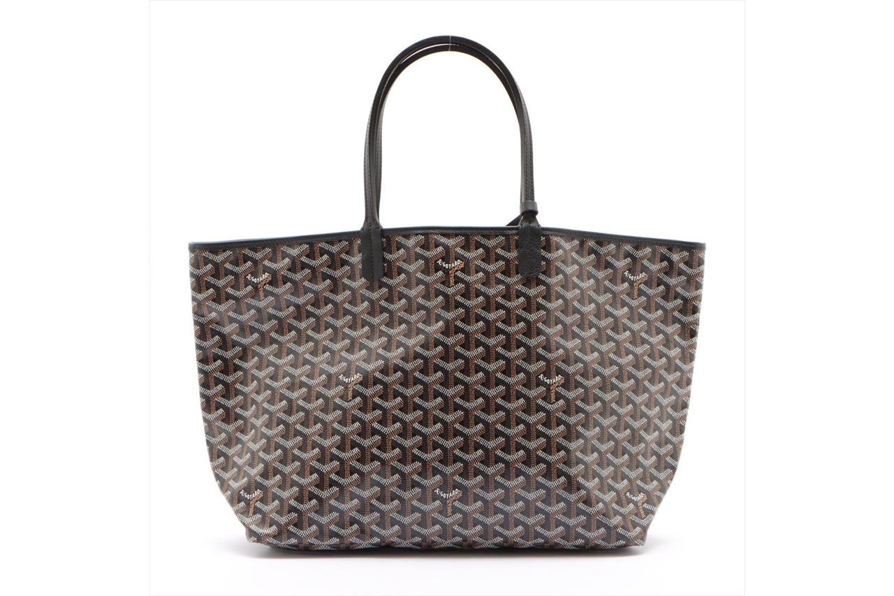 Goyard St. Louis Tote Monogram Chevron PM. Featuring the iconic Chevron monogrammed print coated black canvas with leather trim and black double flat leather handles. Approximate dimensions: 33cm (L) x 26cm (H) x 15cm (D). Accompanied by Goyard detachable pochette and dust bag. With Entrupy Certificate of Authenticity. (As New)