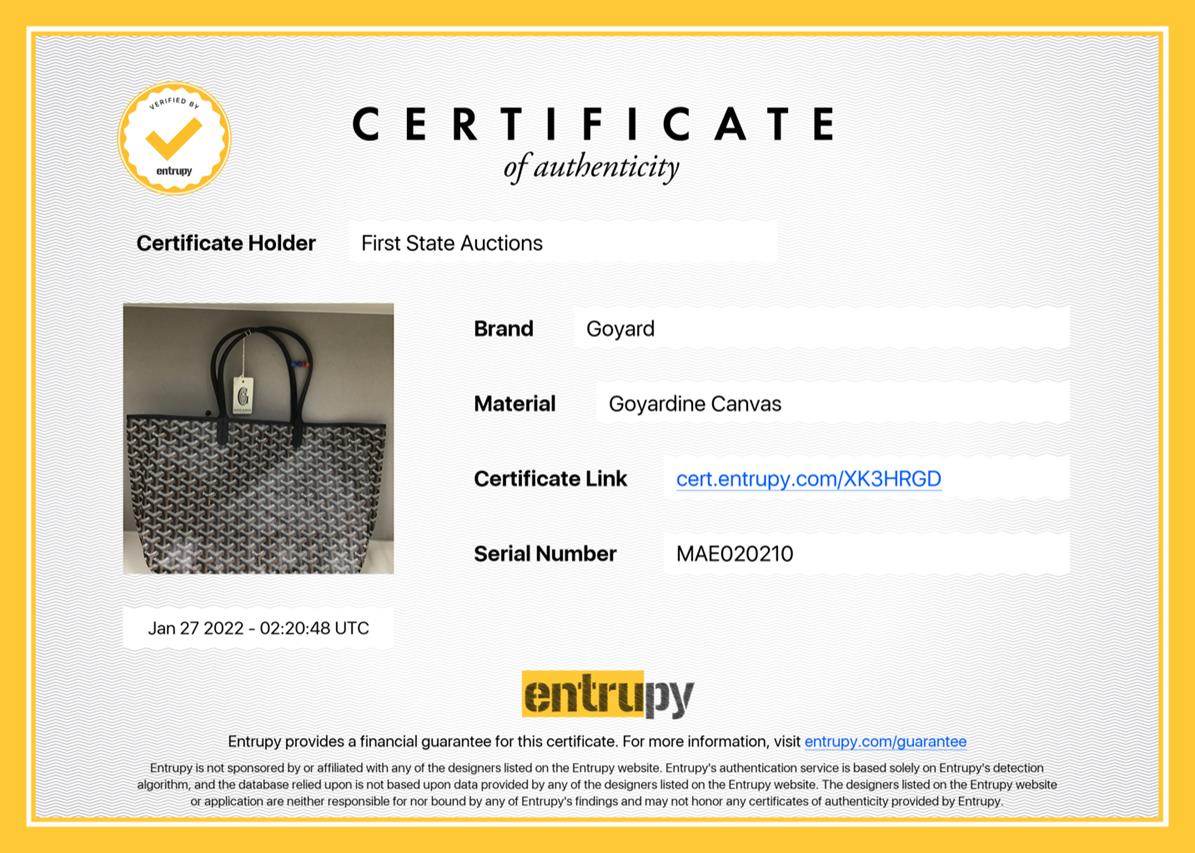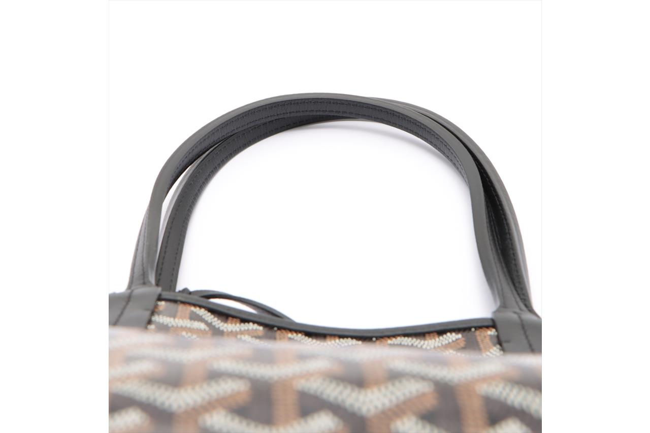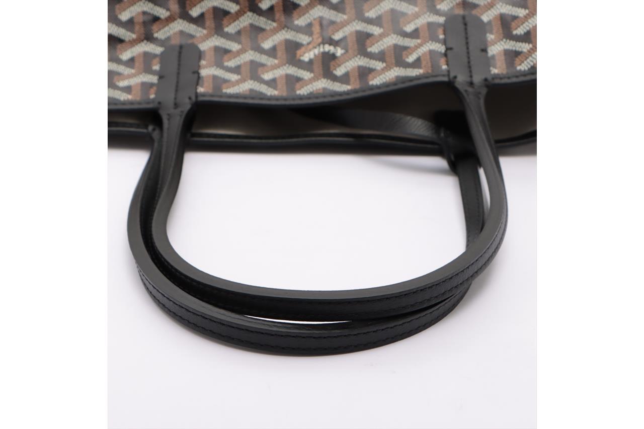 Goyard St. Louis Tote Monogram Chevron PM. Featuring the iconic Chevron monogrammed print coated black canvas with leather trim and black double flat leather handles. Approximate dimensions: 33cm (L) x 26cm (H) x 15cm (D). Accompanied by Goyard detachable pochette and dust bag. With Entrupy Certificate of Authenticity. (As New)